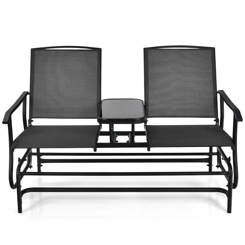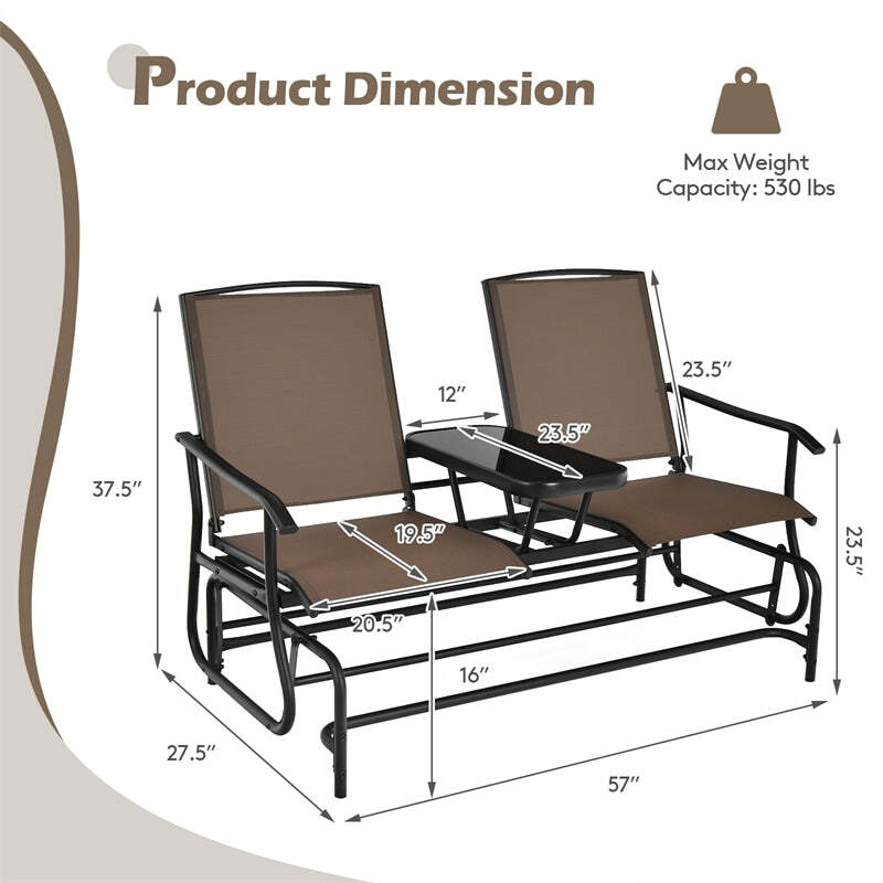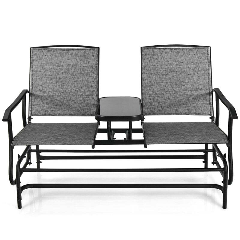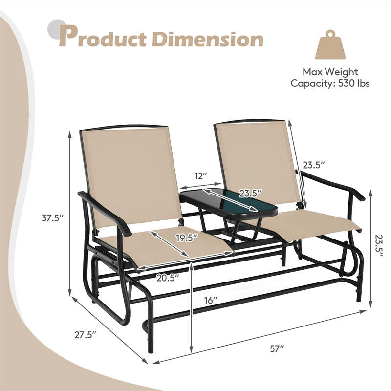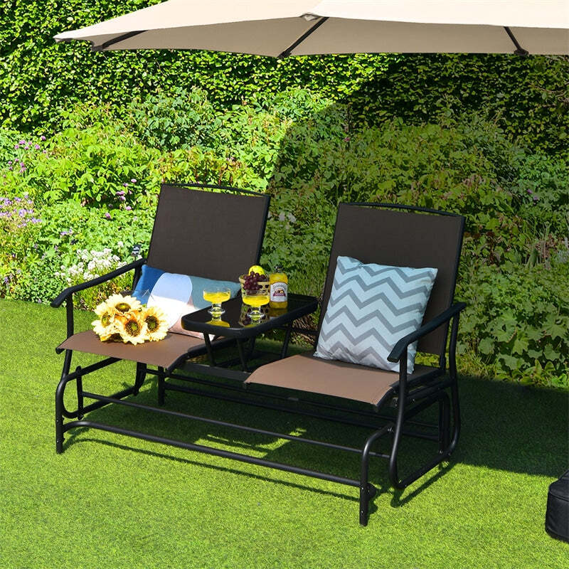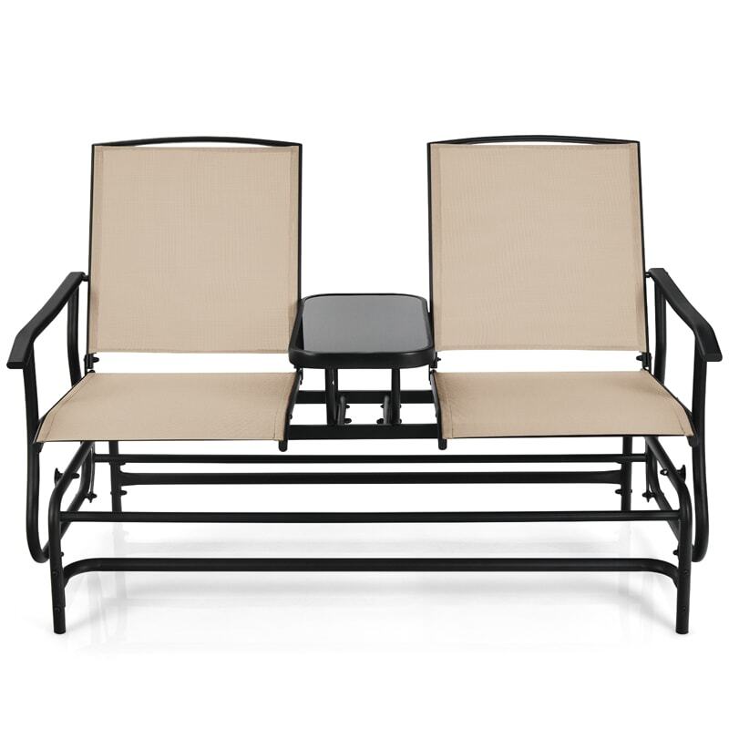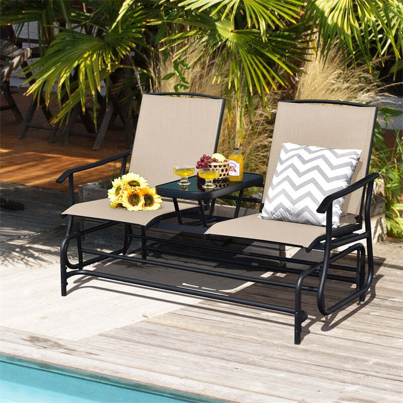 Outdoor 2-Person Rocking Loveseat Patio Bench Glider Chair with Center Tempered Glass Table