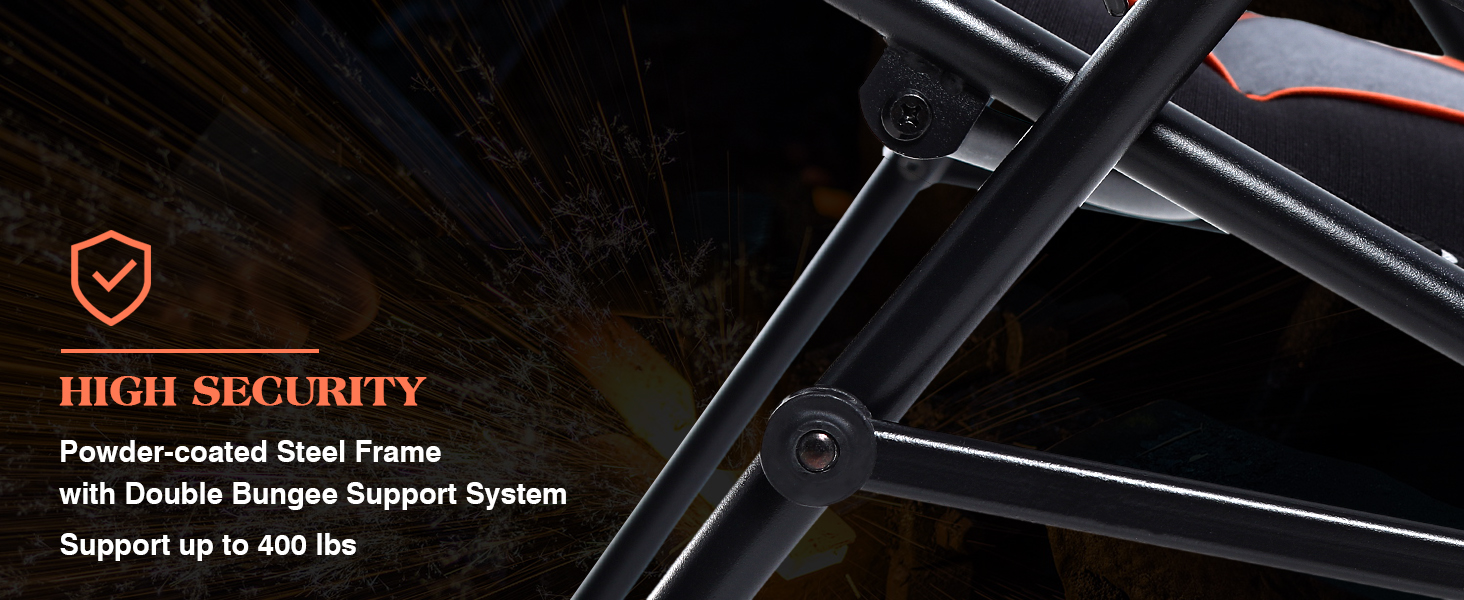 - Zero Gravity Reclining Chairs: The Length of extra long chair when fully reclined is large enough for big and tall people 6'2". Strong double bungee rope and stainless steel tube frame are durable for using a long time. The maximum loading capacity is 400lbs