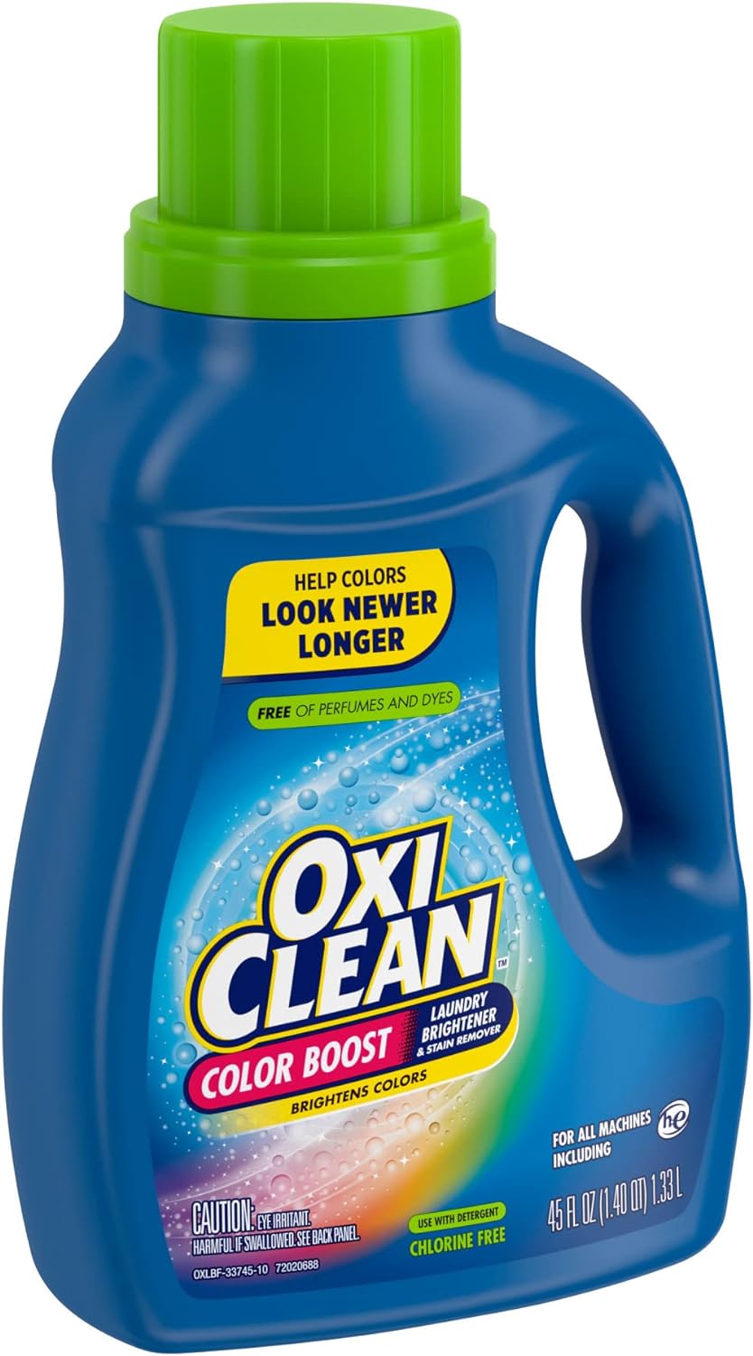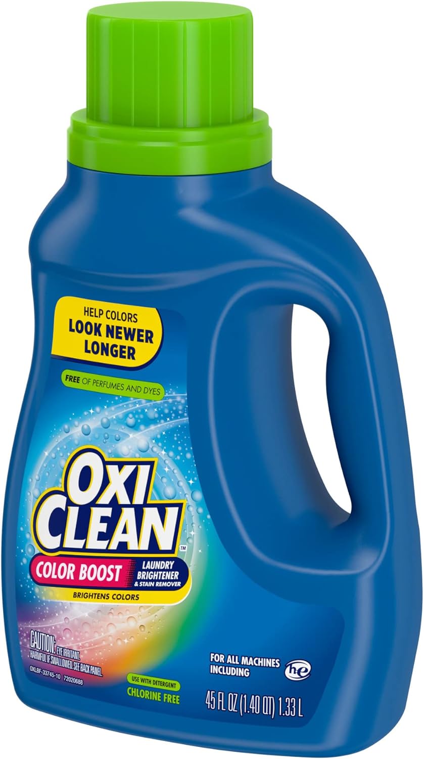 - One 45 oz bottle of OxiClean Color Boost Free Liquid Laundry Brightener and Stain Remover