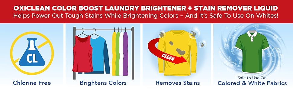 - Add OxiClean Color Boost with every load to give your clothes brightener and stain remover power