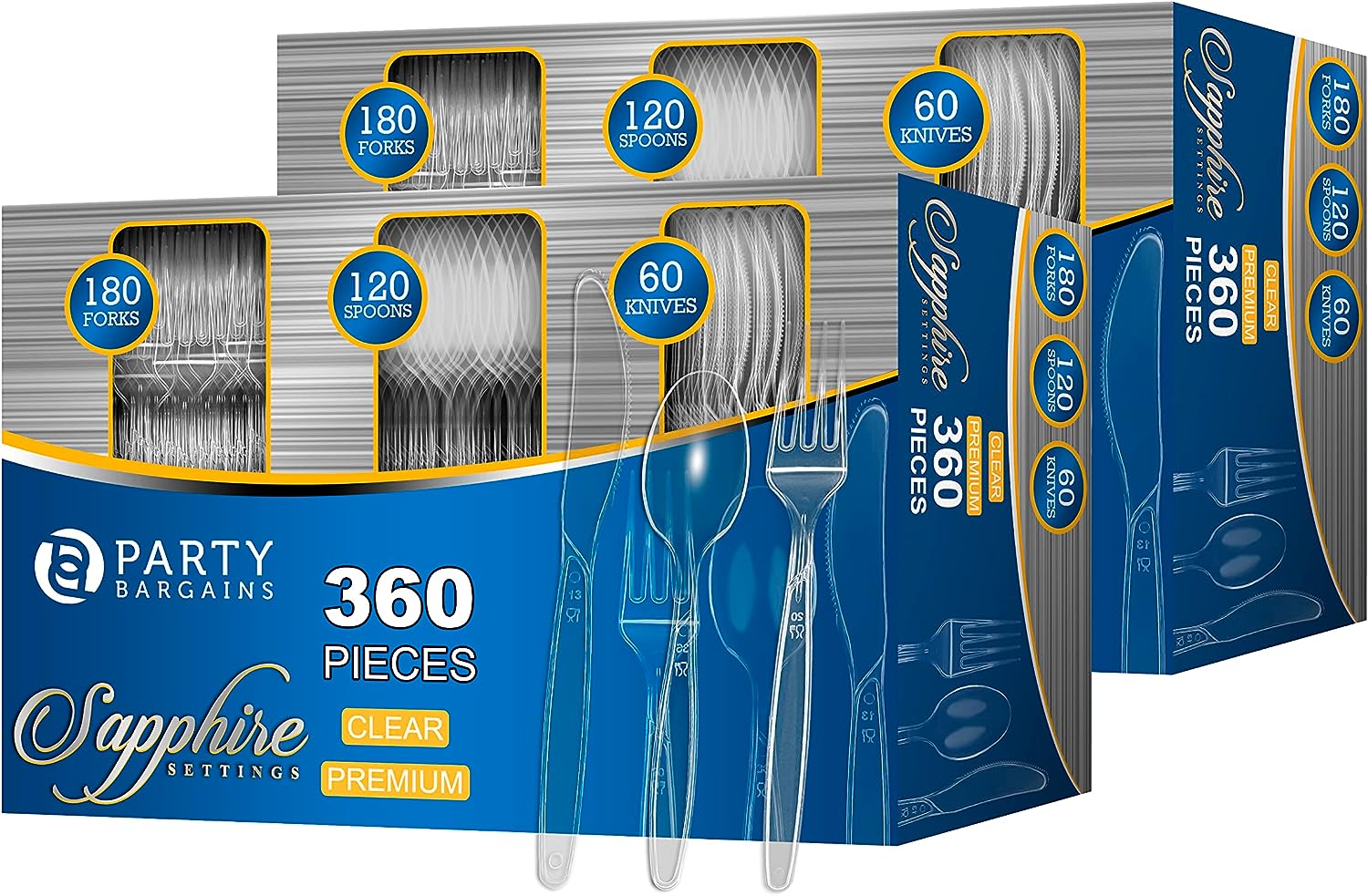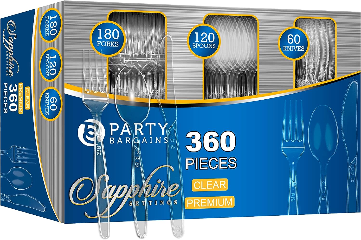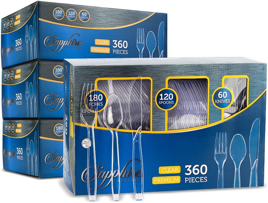 - ✅DURABLE: Heavy duty plasticware. Knives slice without breaking, strong forks spear food, spoons for hot or cold liquids.