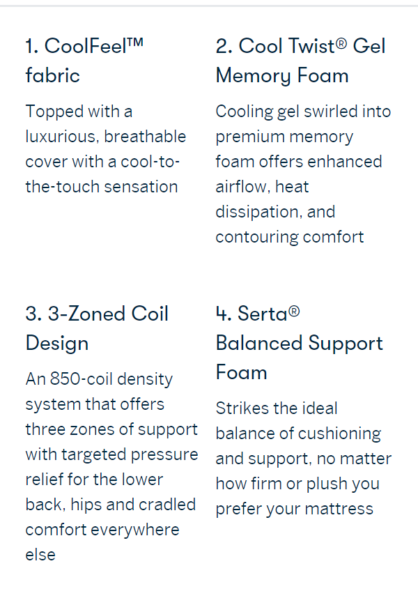 - 850-coil density system provides contouring, cradling support that minimizes motion transfer, plus an extra-deep foam rail helps reduce edge roll-off and extends the sleep surface
