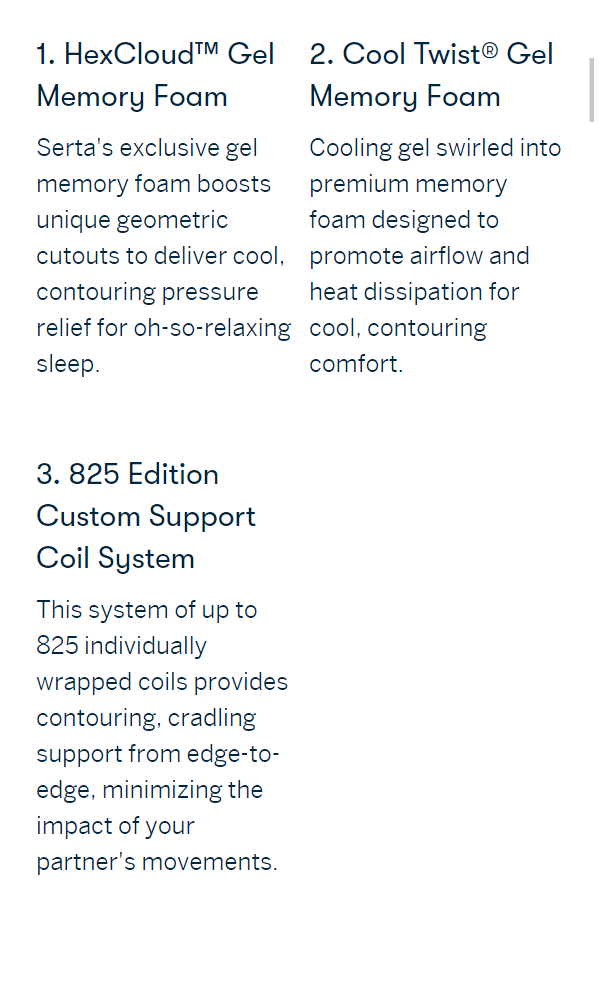 - Provides contouring, cradling support with up to 825 individually wrapped coils and features an extra-deep foam rail to help reduce edge roll-off and extend the sleep surface
