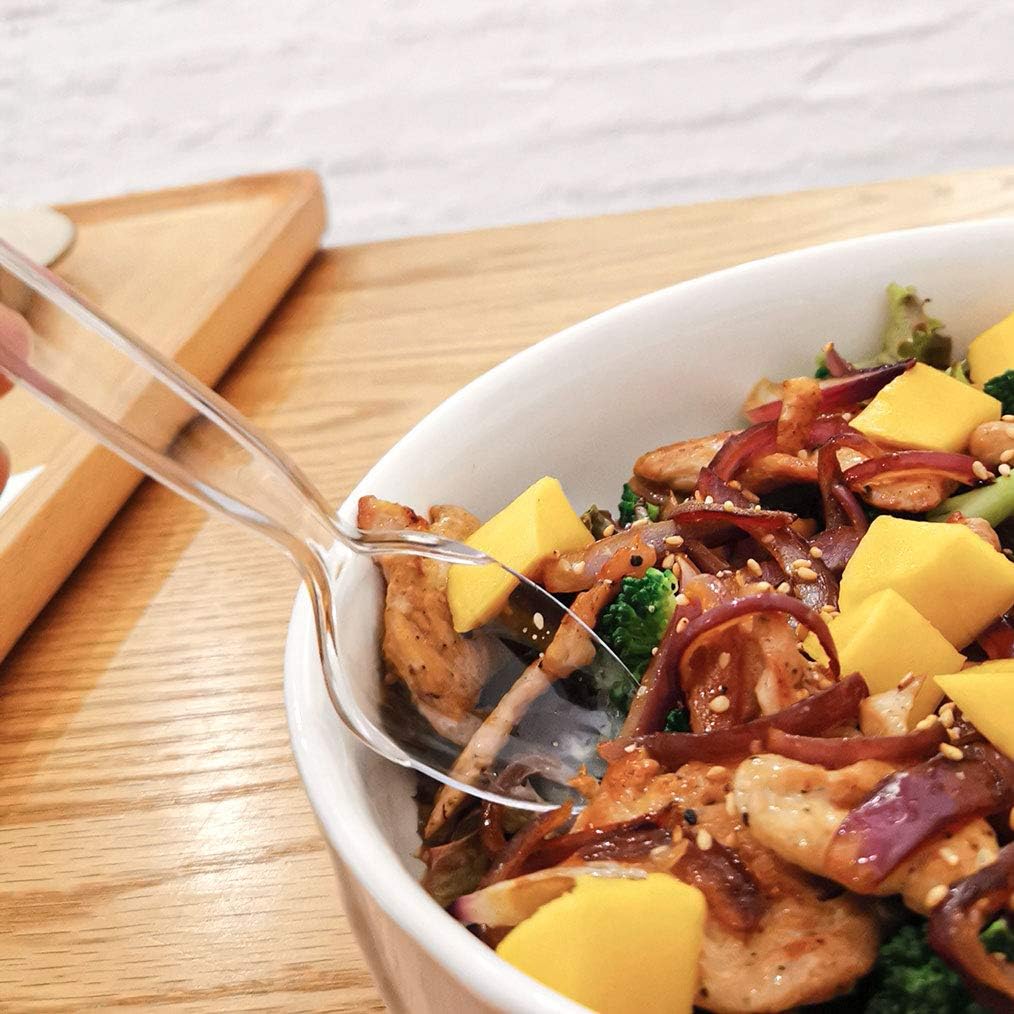 - HI-Q MATERIAL - Posate plastic spoons are made of heavyweight material with high strength and toughness, which is more durable than ordinary plastics. And it is colorless and tasteless, flexible and shiny, tough and hard to break.