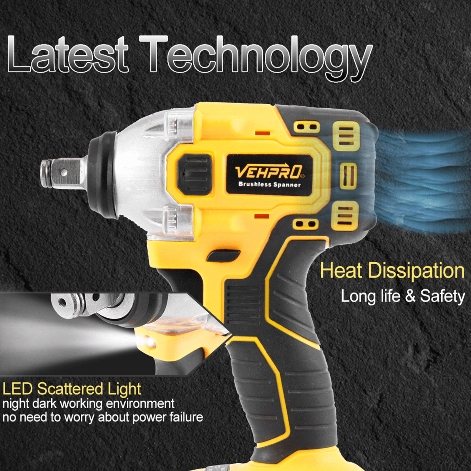 Power Impact Wrench 360NM Torque Cordless Brushless Kit