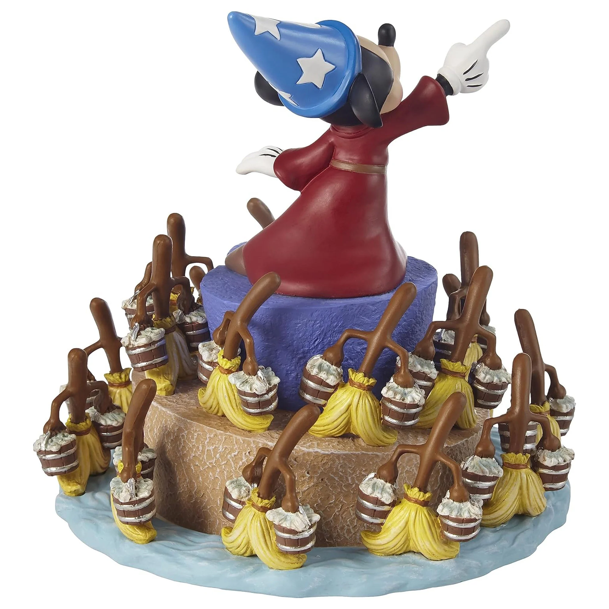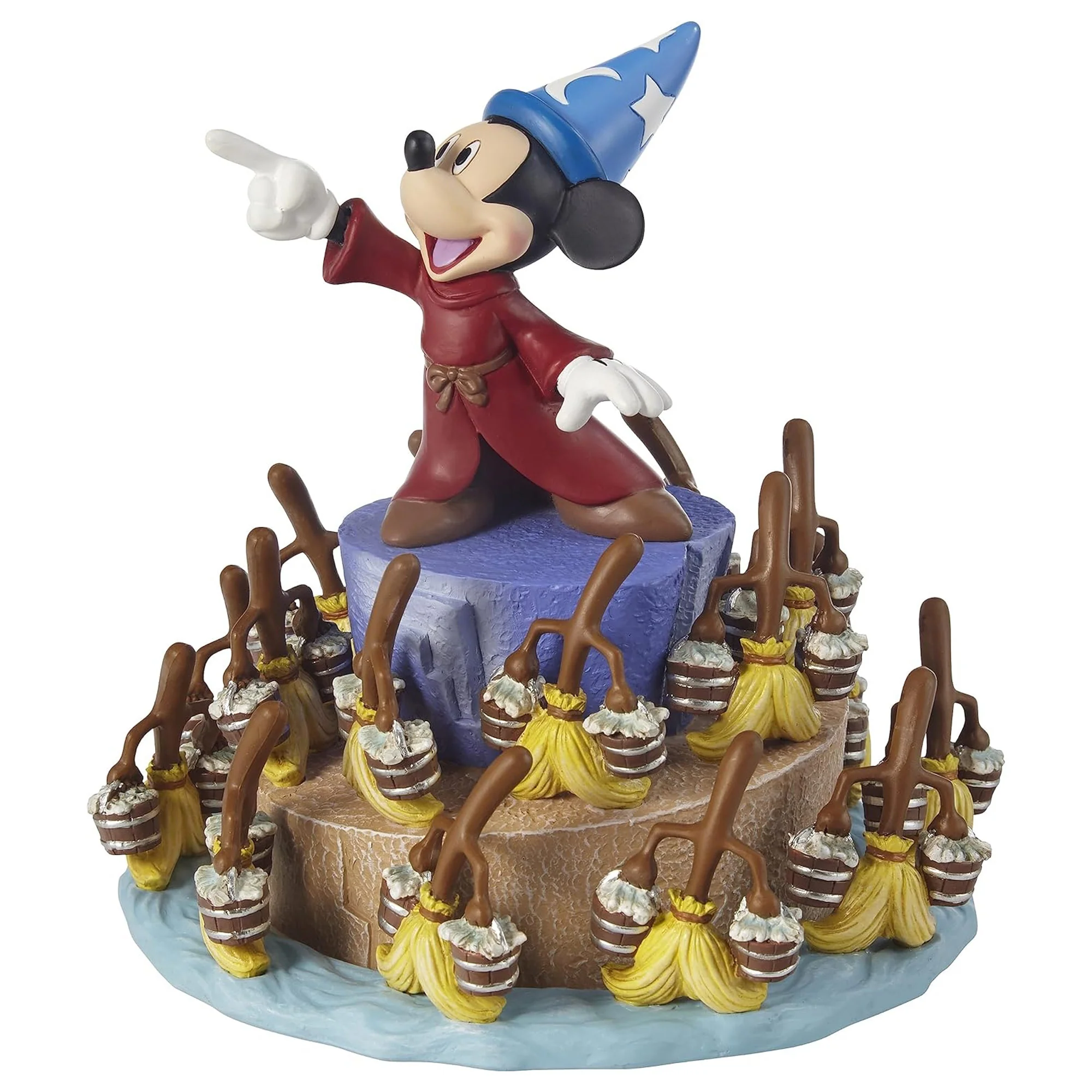 Conduct Magical Melodies with Mickey. Bring the wonder of Fantasia to life with the Precious Moments Disney Showcase Mickey Mouse Dream A Fantastic Dream Musical! This enchanting figurine features a wide-eyed Mickey Mouse, dressed as the Sorcerer's Apprentice, conducting a troupe of bewitched brooms that playfully rotate around him. As the music plays, relive the classic "Sorcerer's Apprentice" scene and bring a touch of Disney magic to your home.