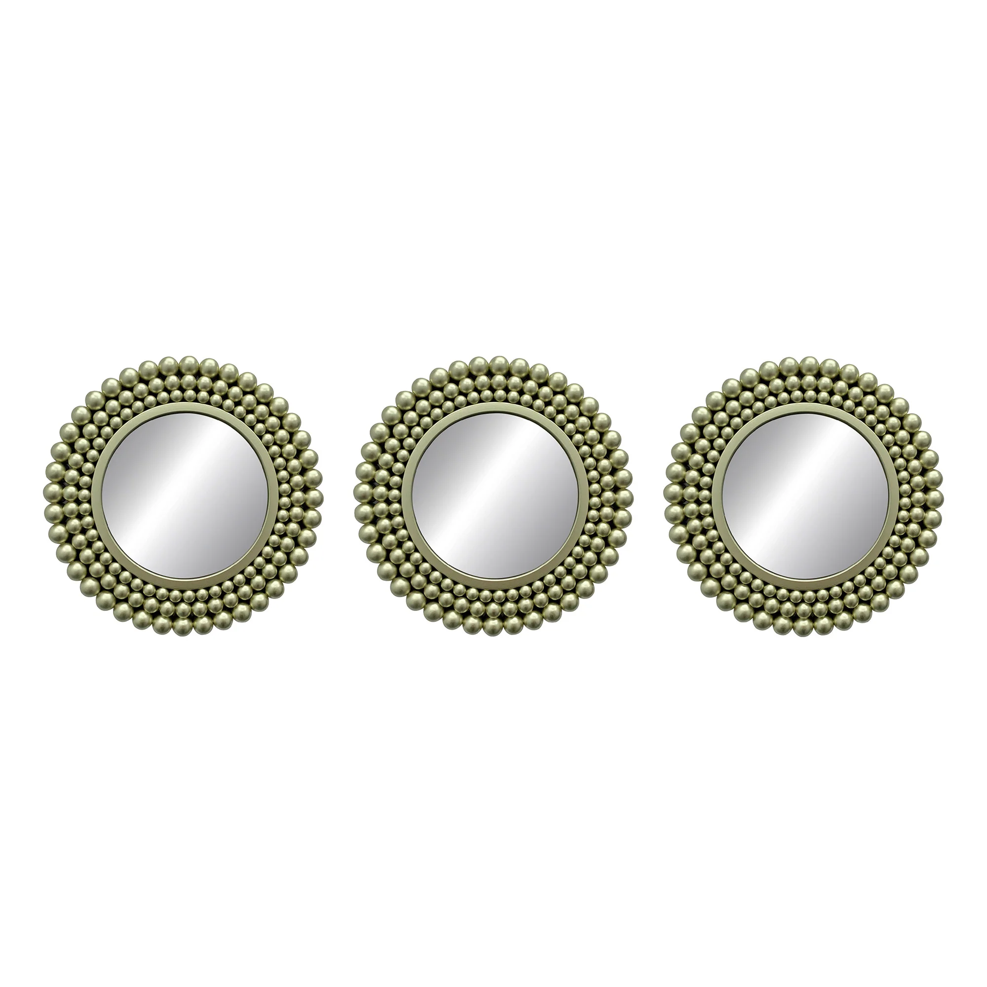 - Set includes 3 champagne-colored mirrors