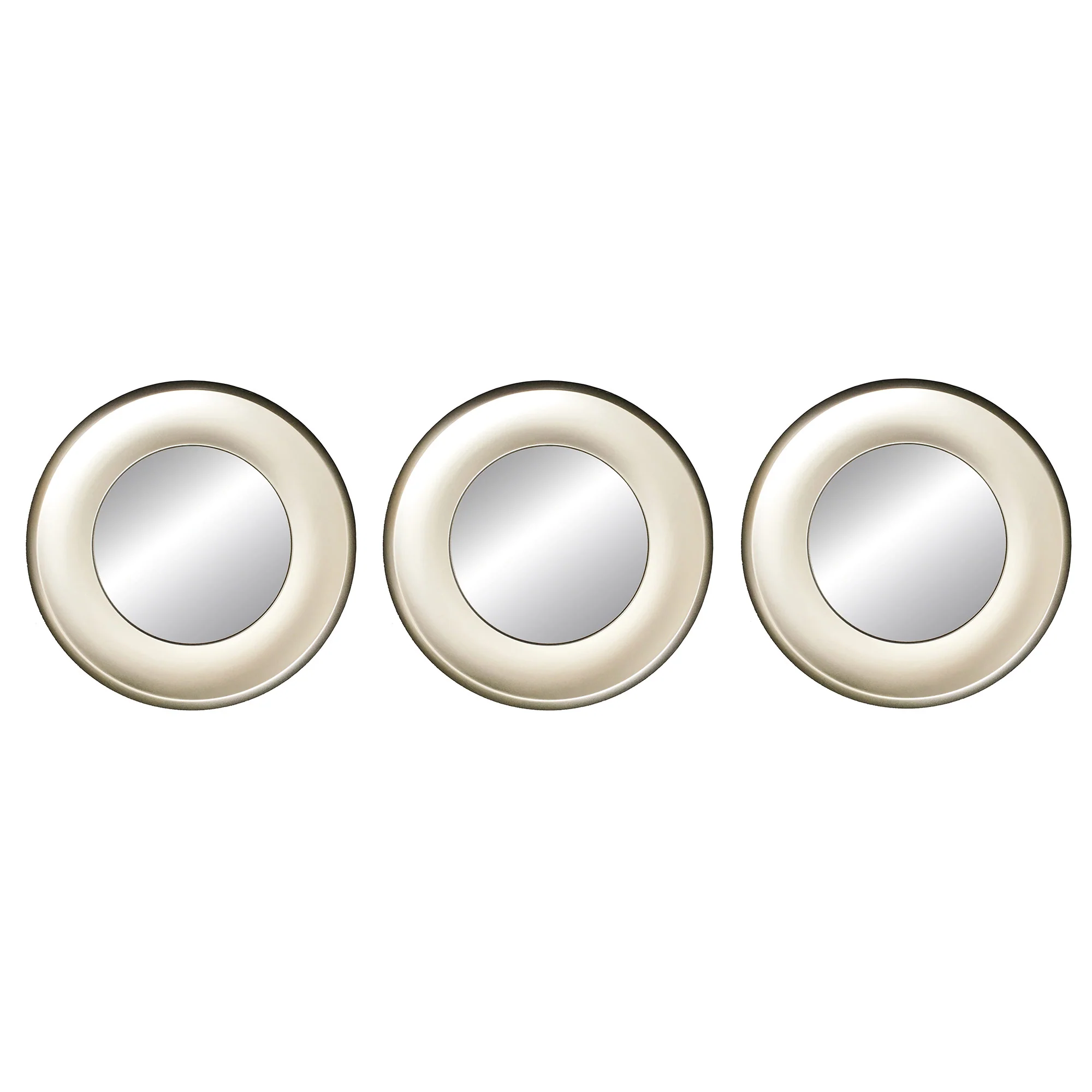 - Set includes: 3 Champagne-colored carved circle mirror wall decor pieces