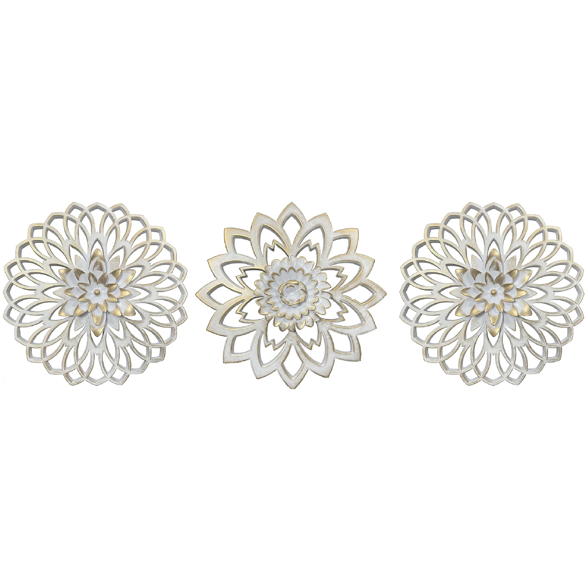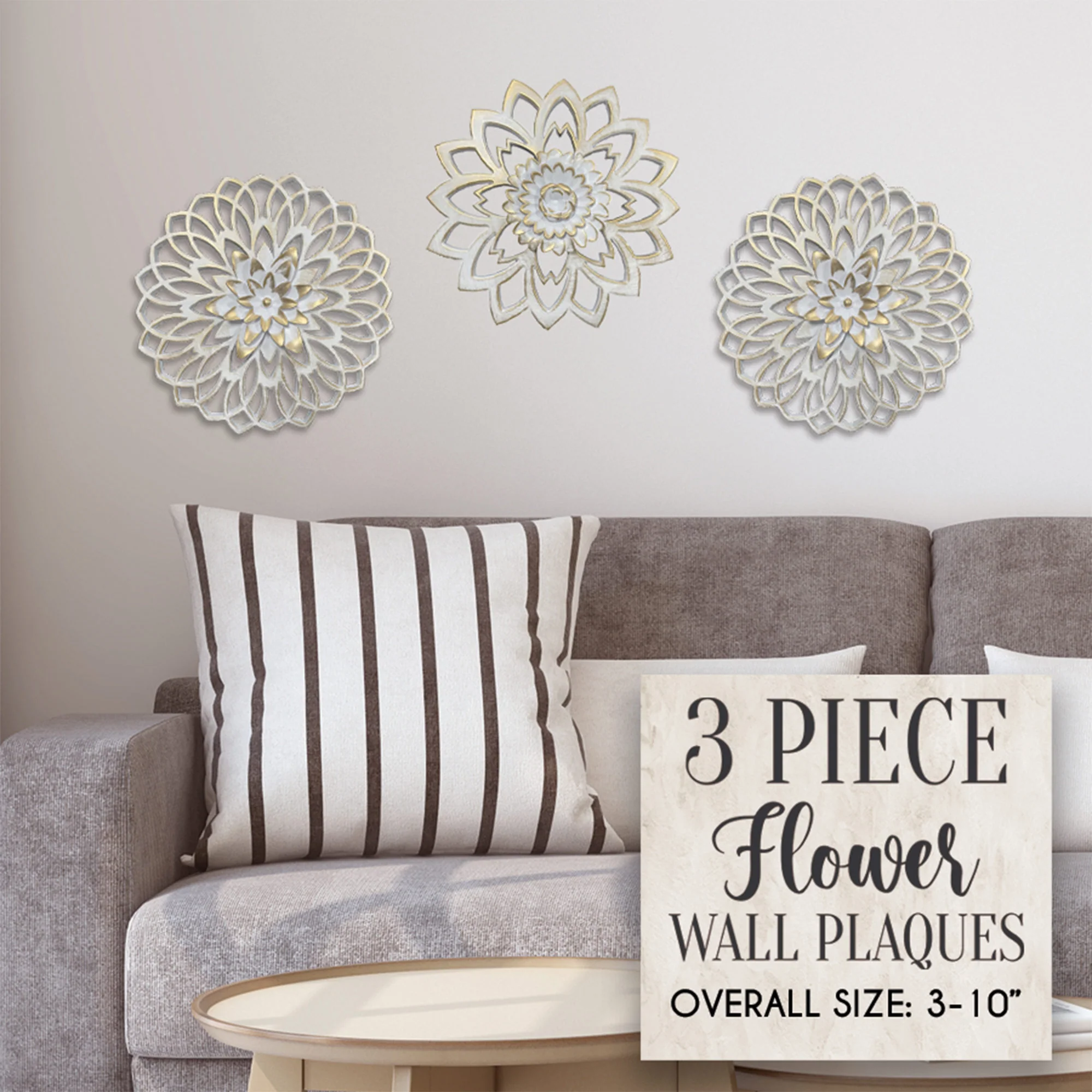 - Set includes: 3 White-colored floral plaque wall decor pieces
