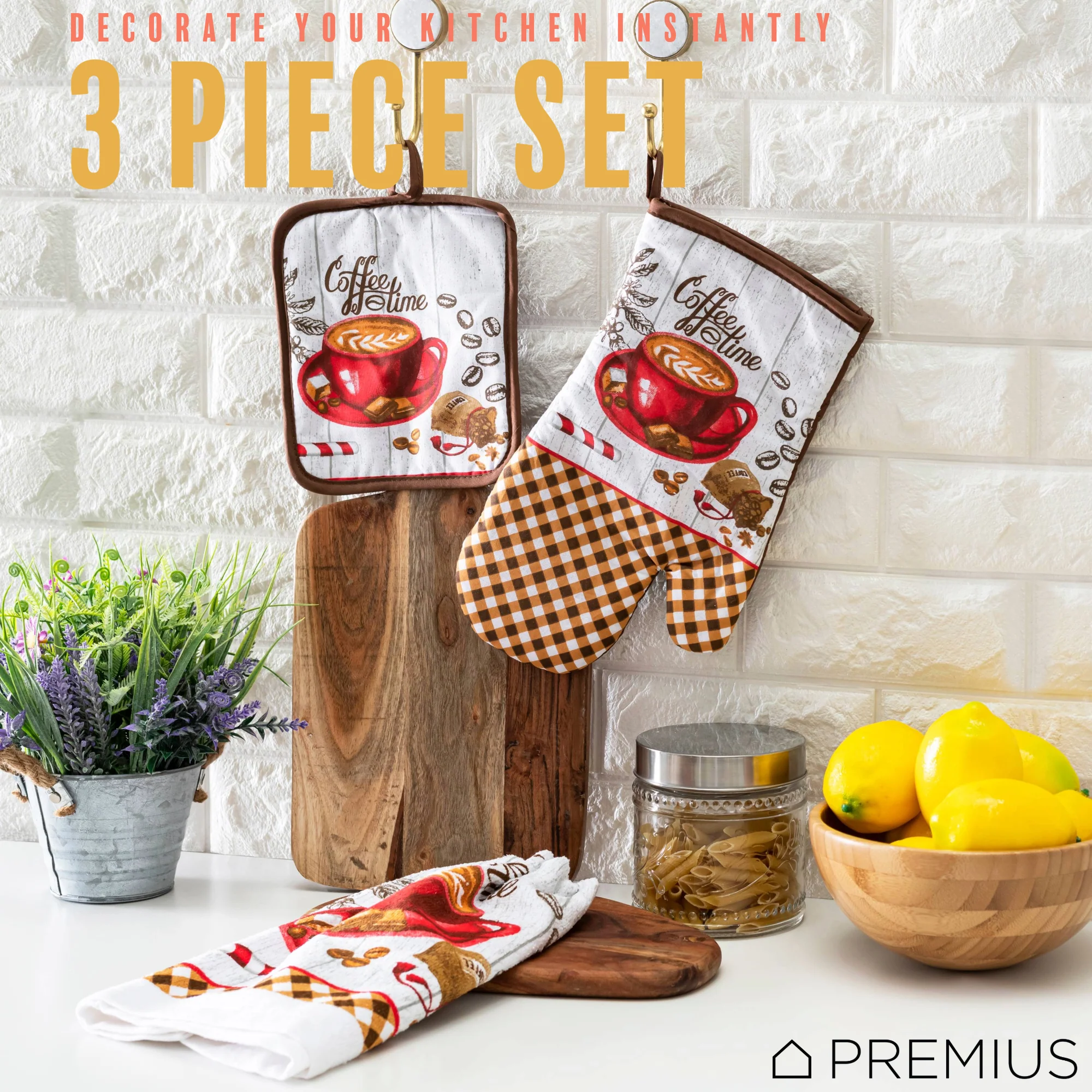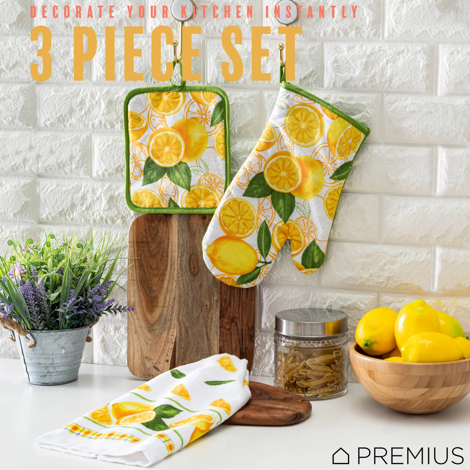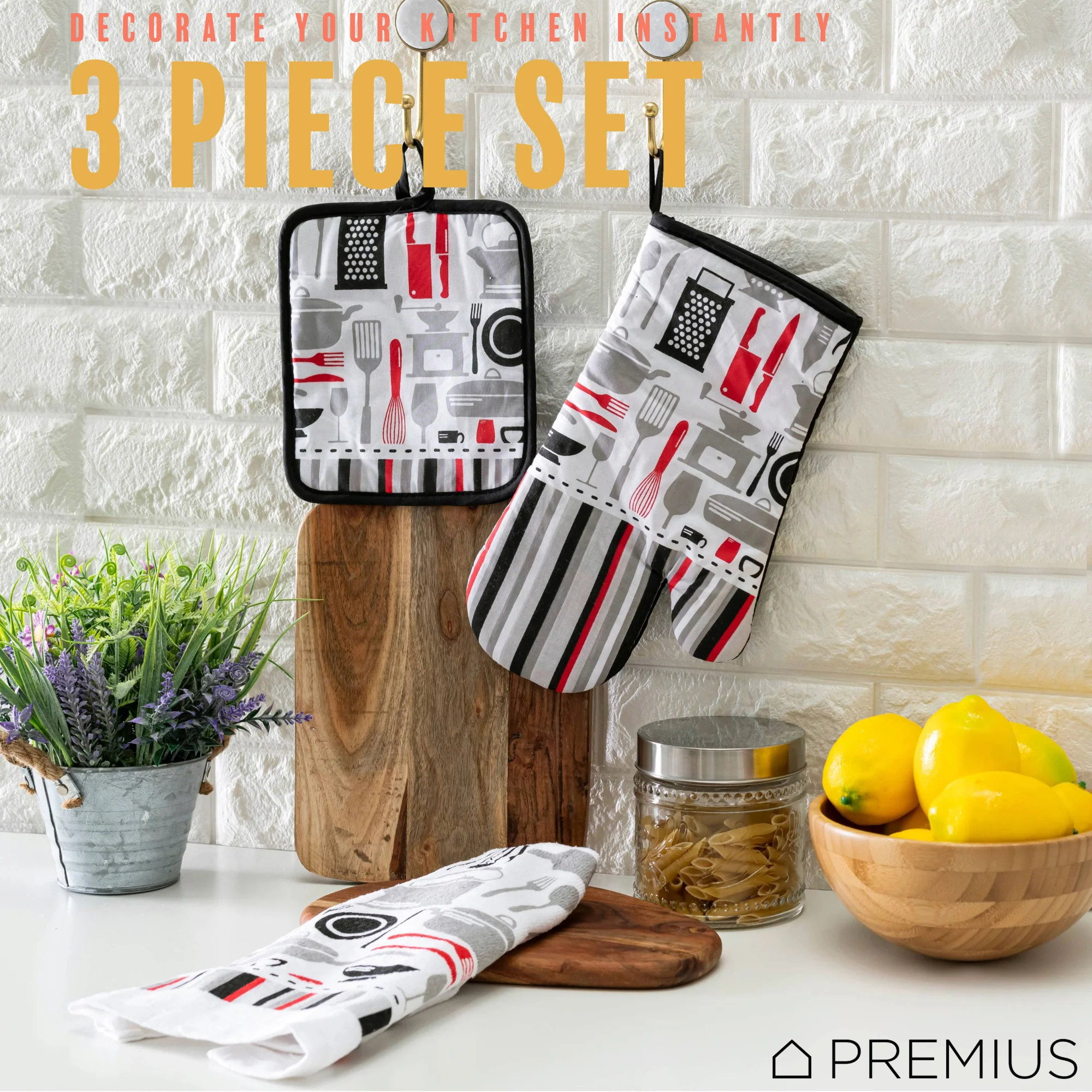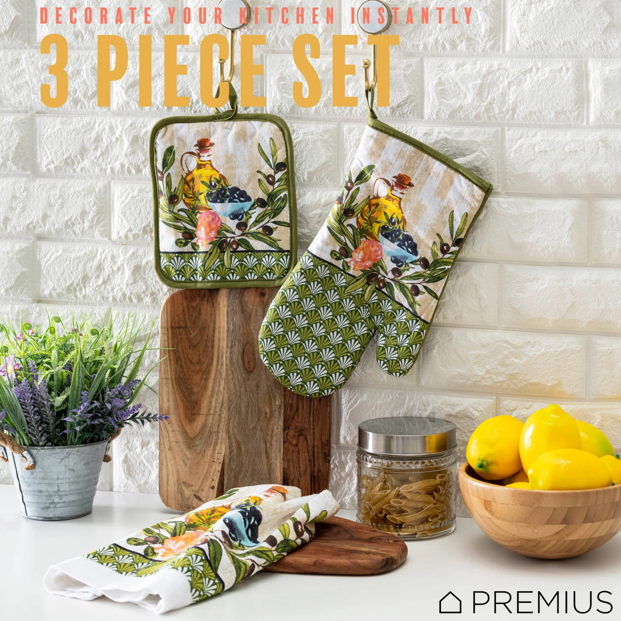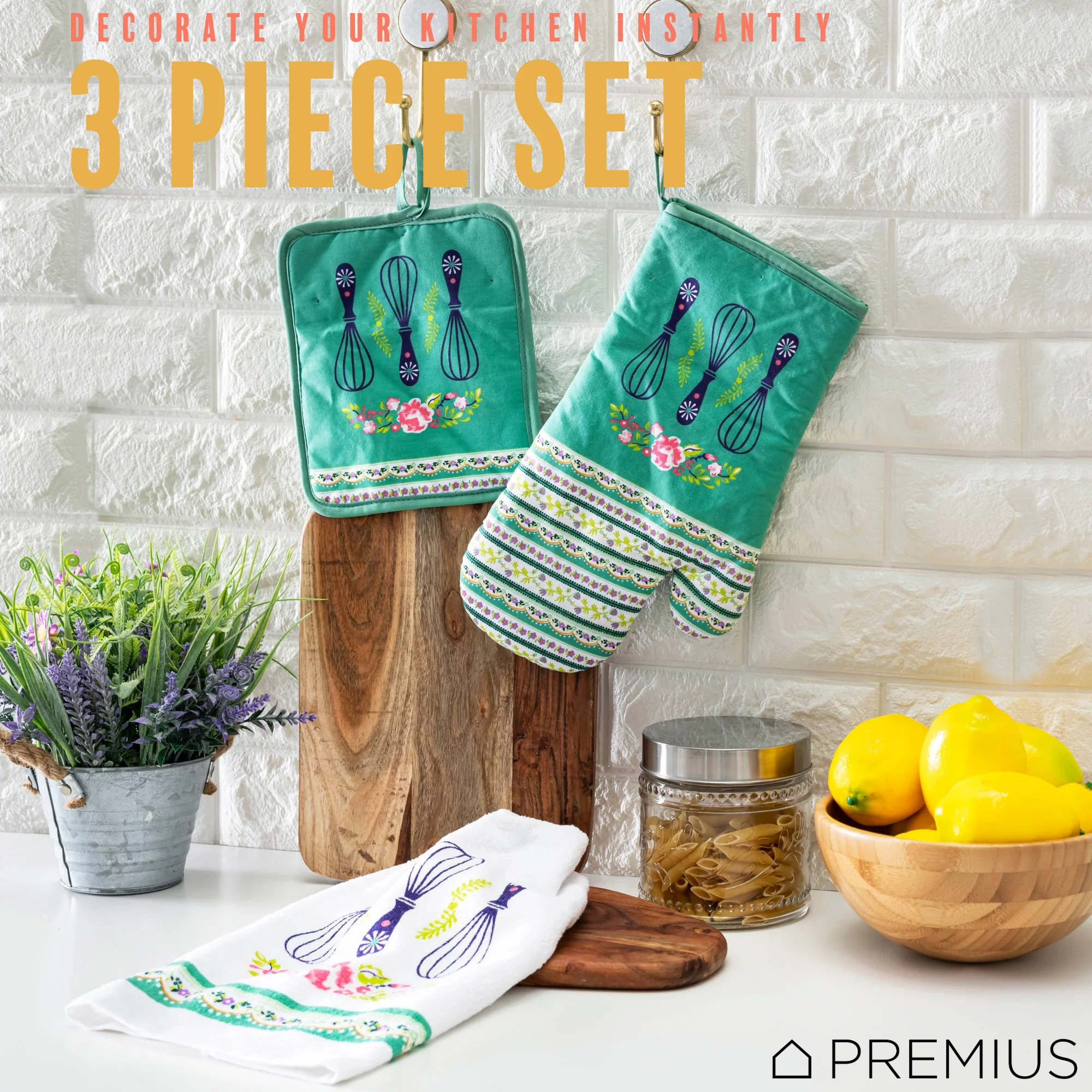 Spruce Up Your Kitchen with a PREMIUS 3-Piece Kitchen Linen Set!