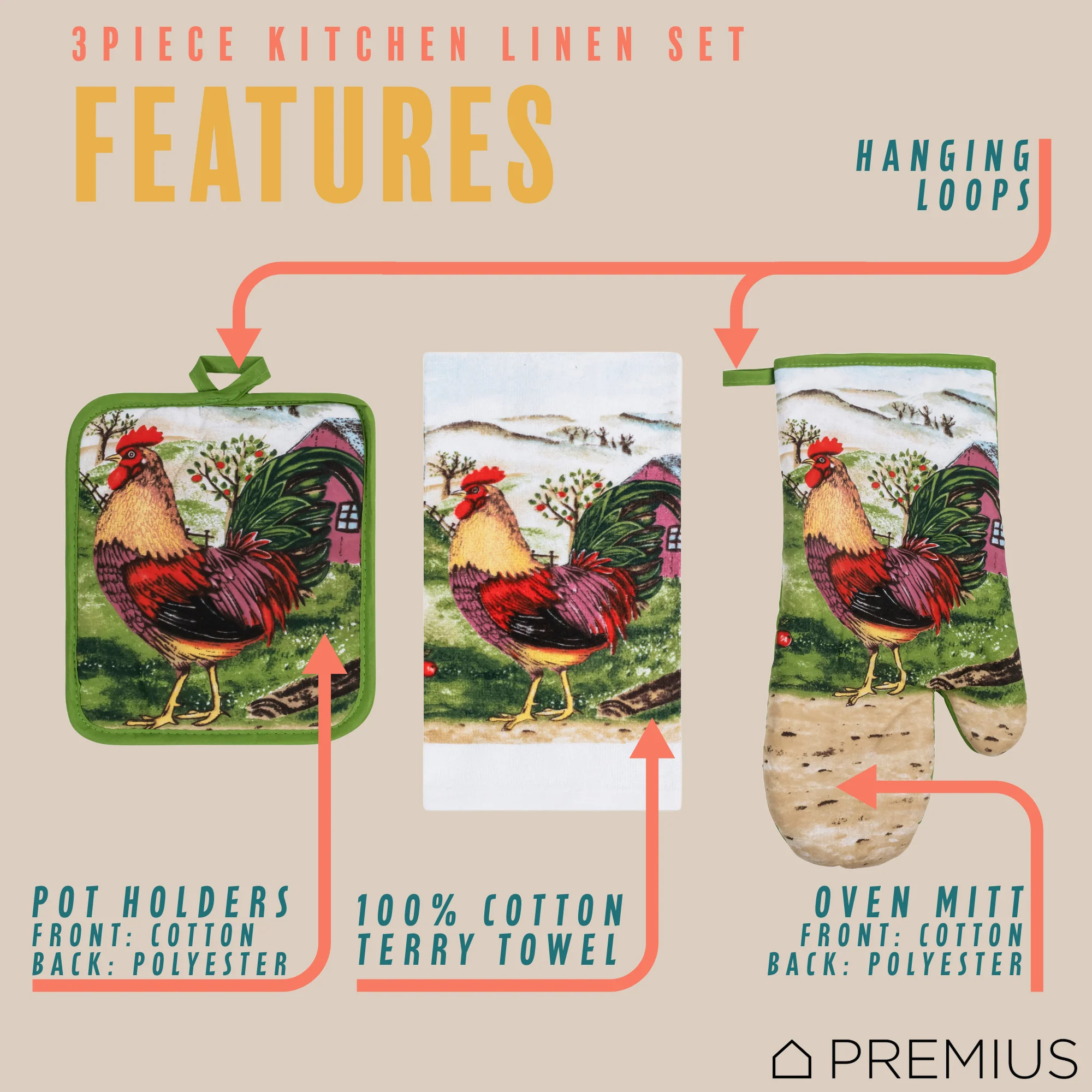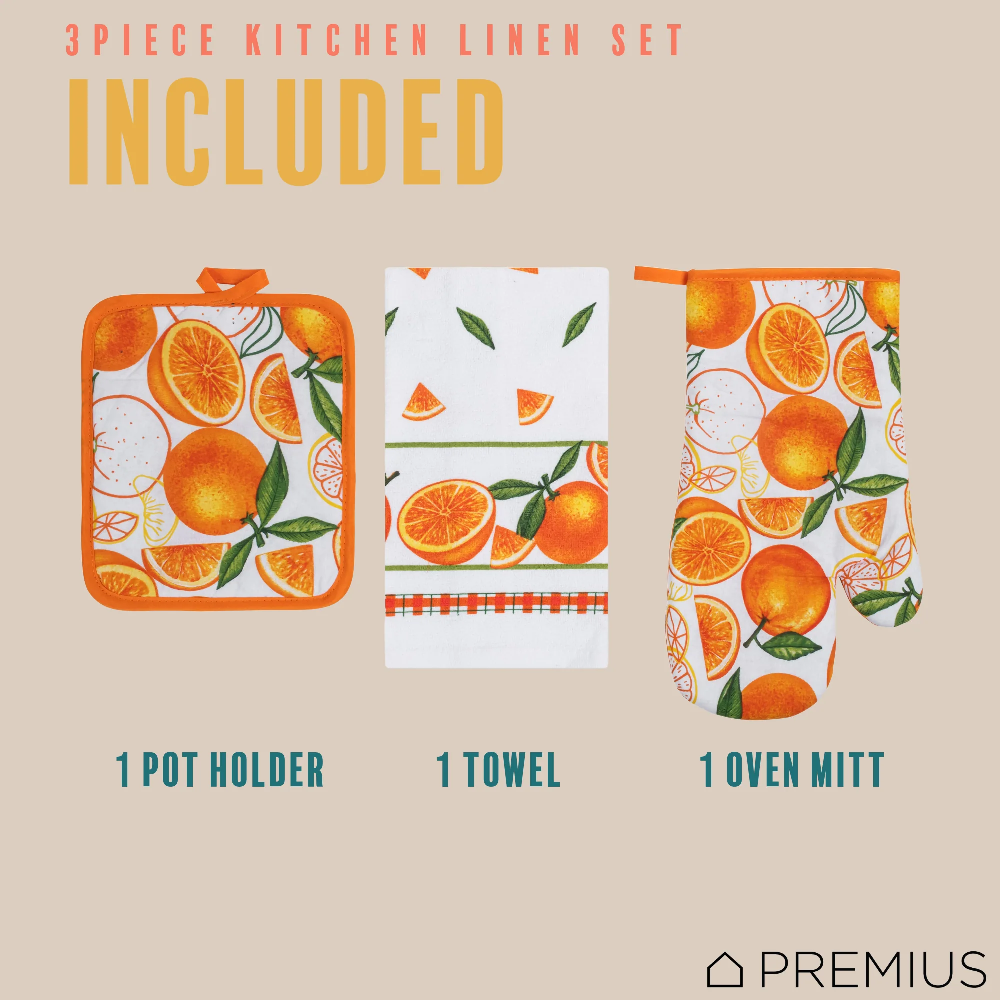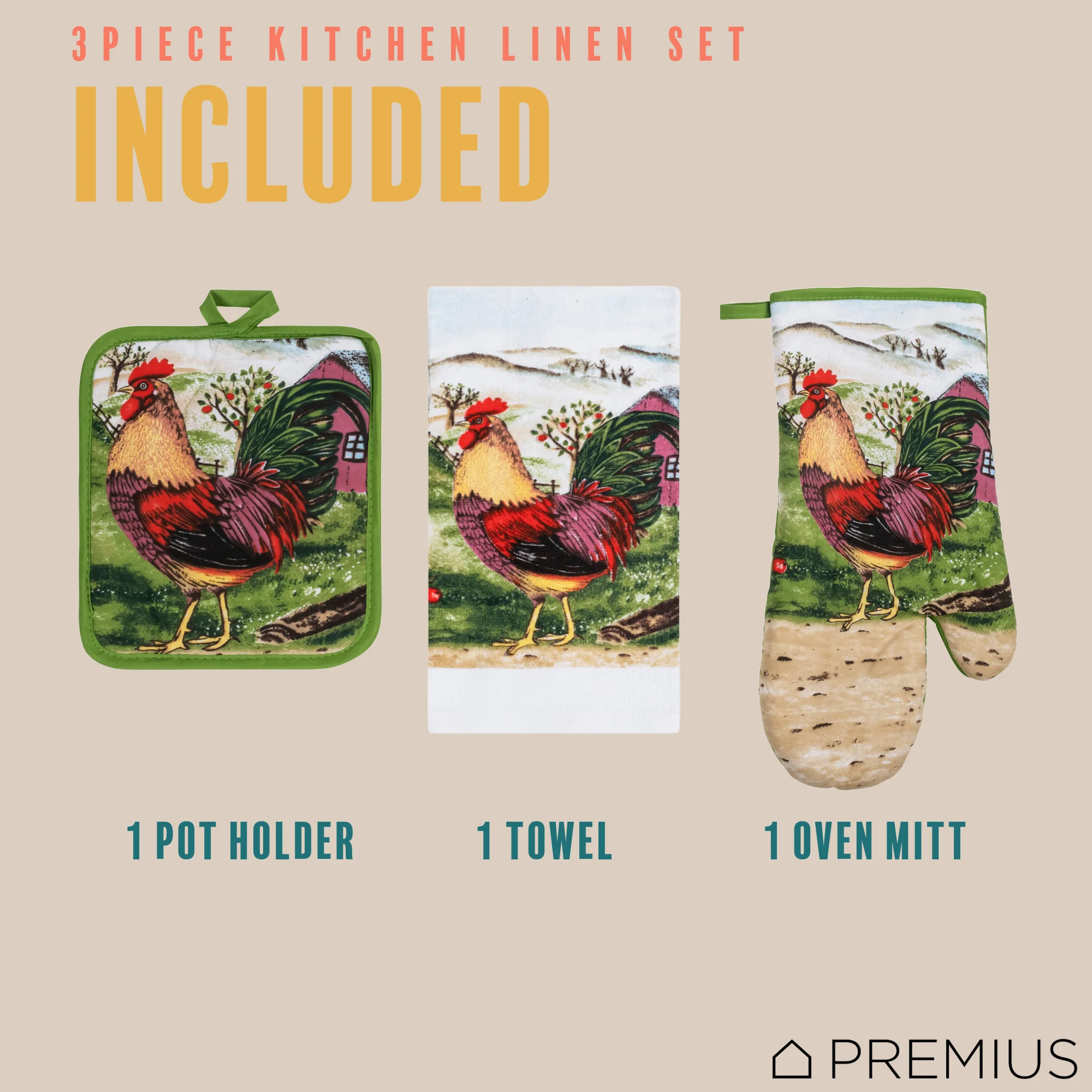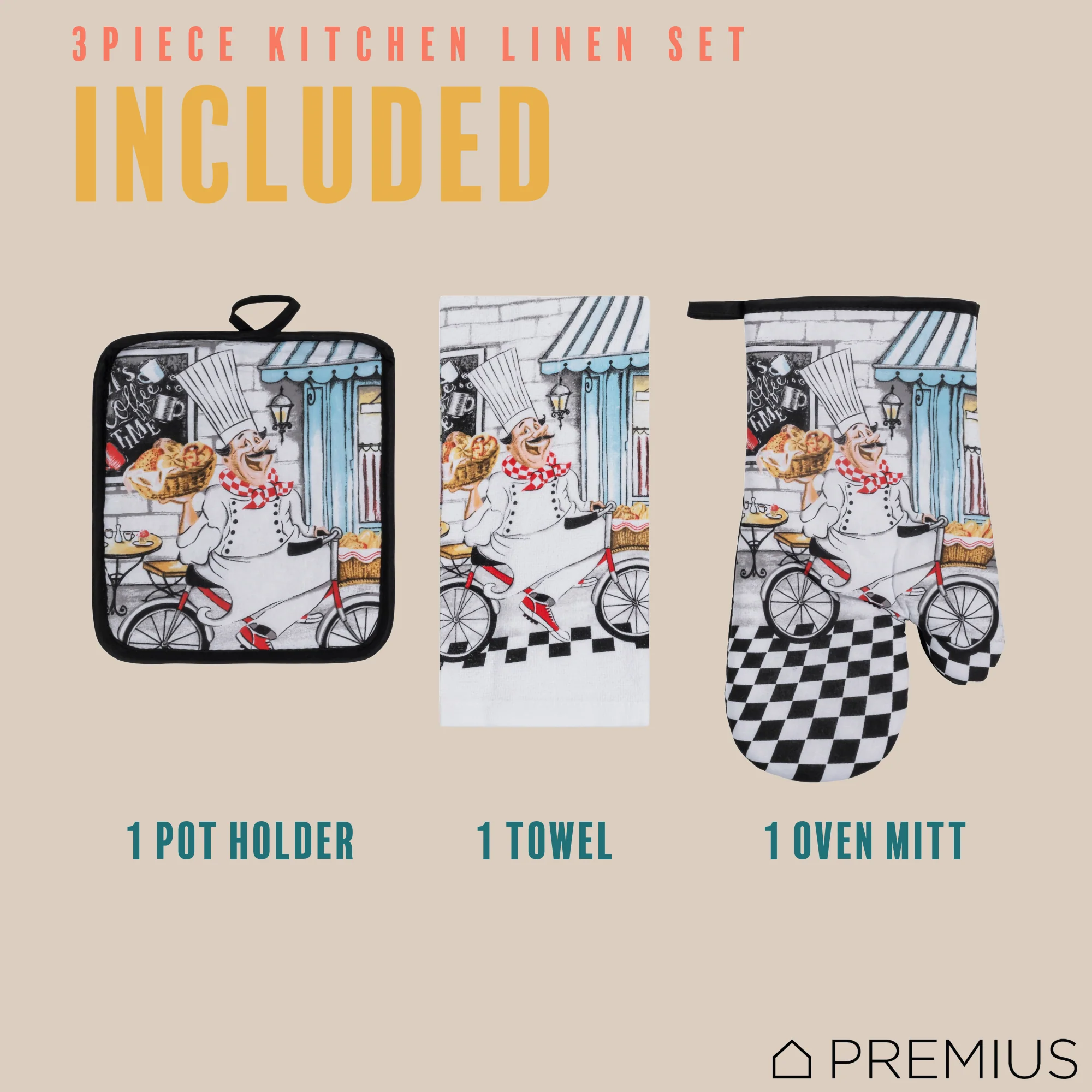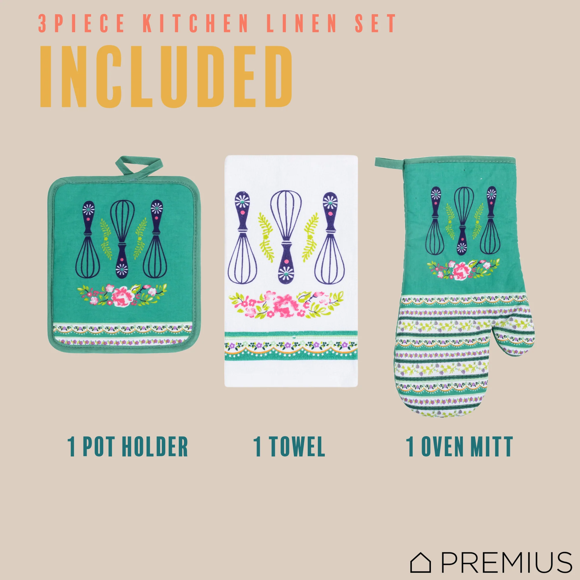 Spruce Up Your Kitchen with a PREMIUS 3-Piece Kitchen Linen Set!