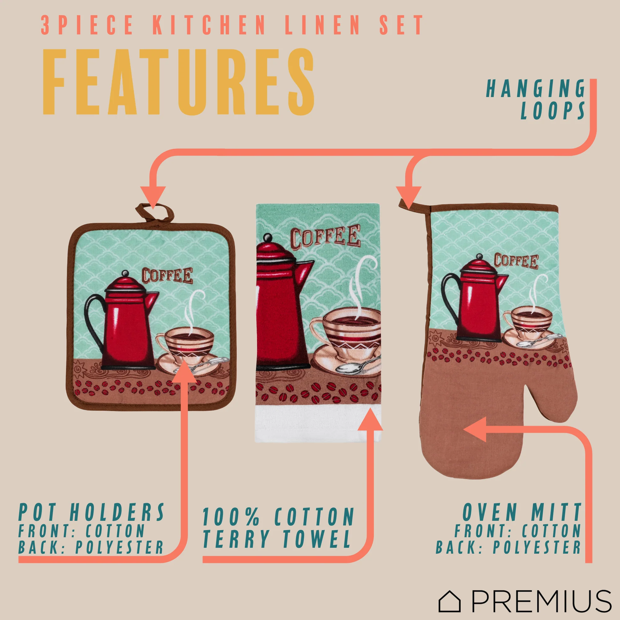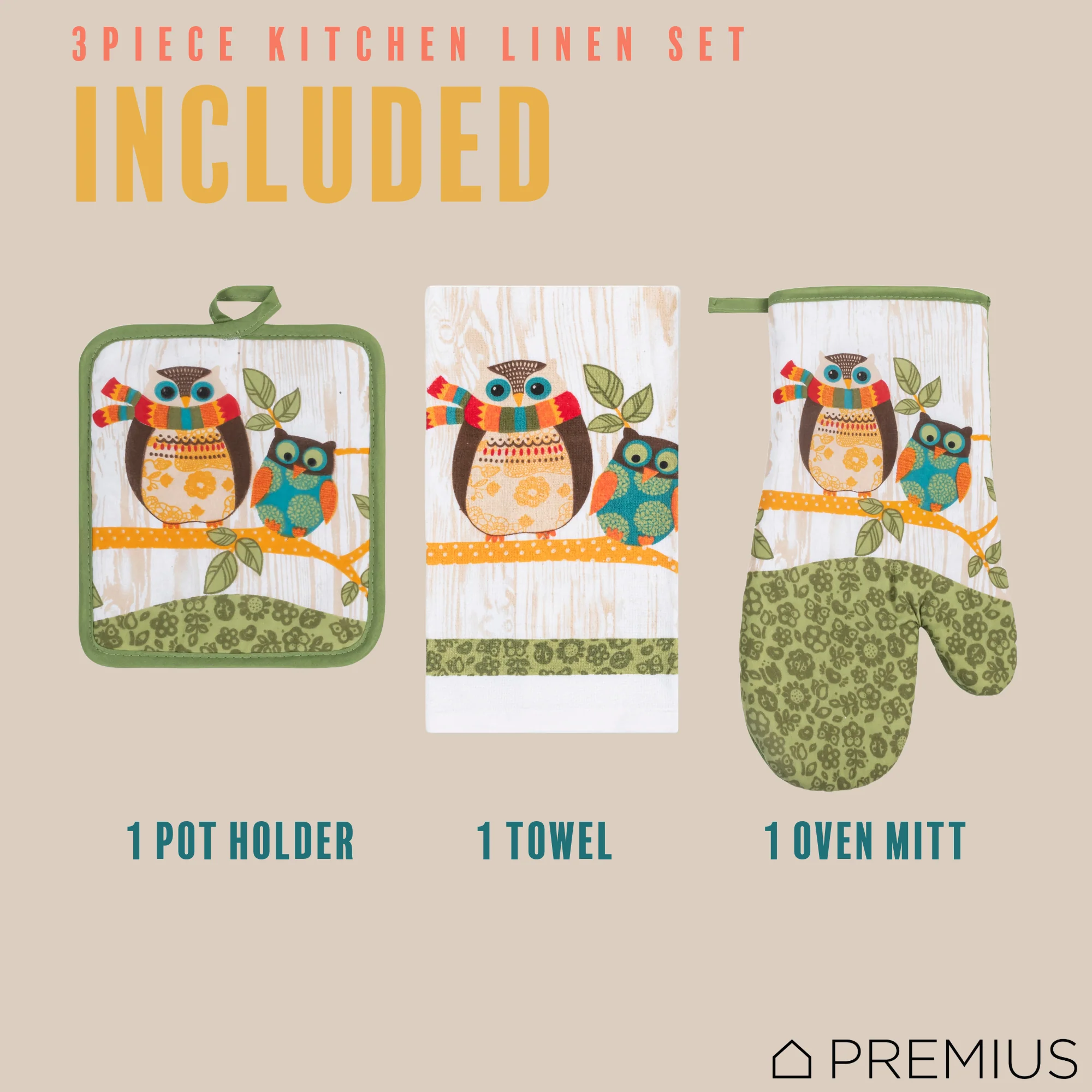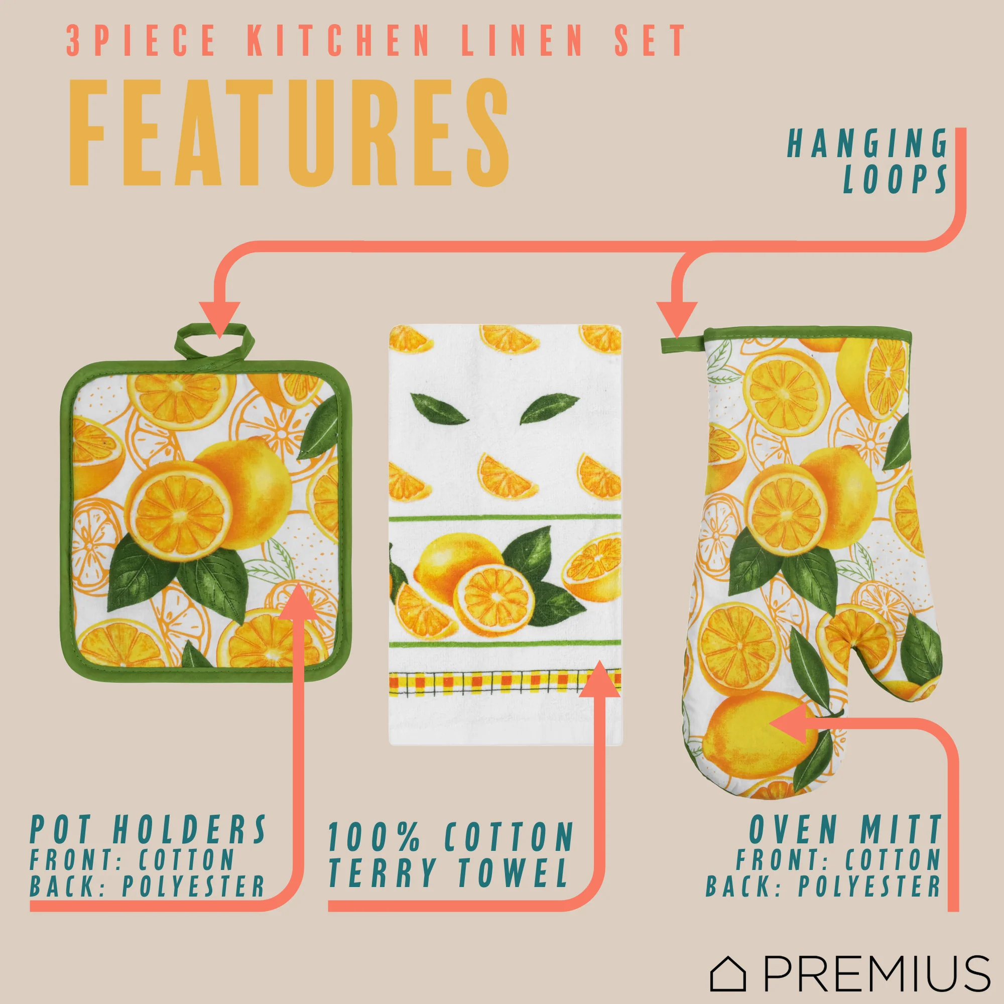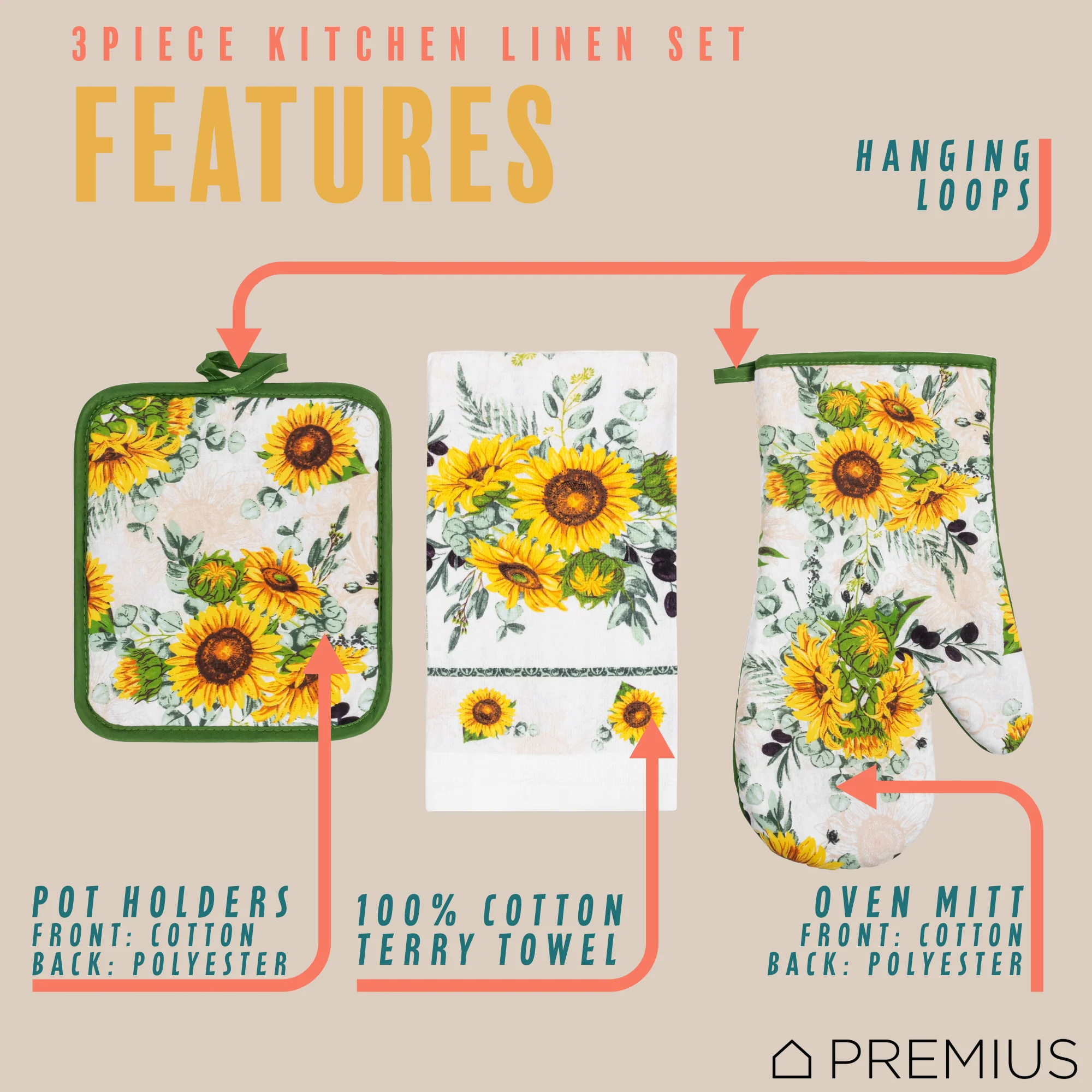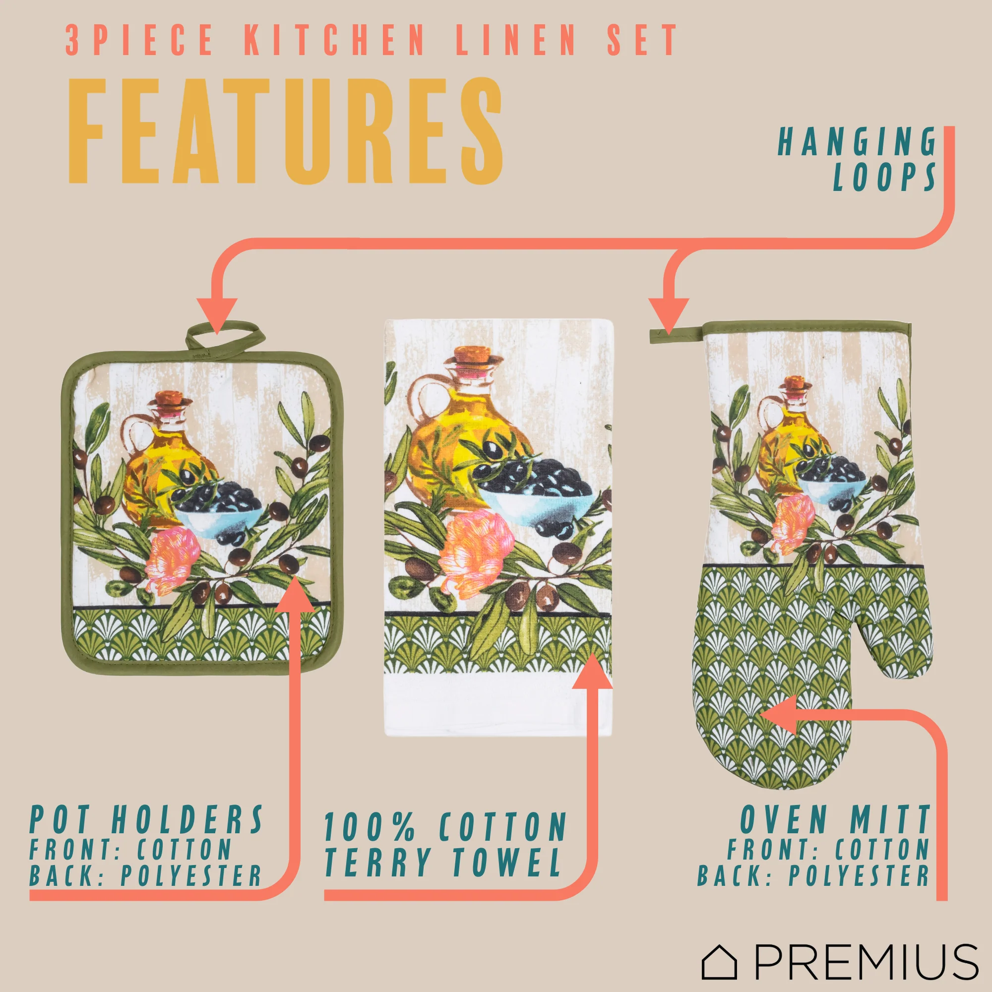 Spruce Up Your Kitchen with a PREMIUS 3-Piece Kitchen Linen Set!