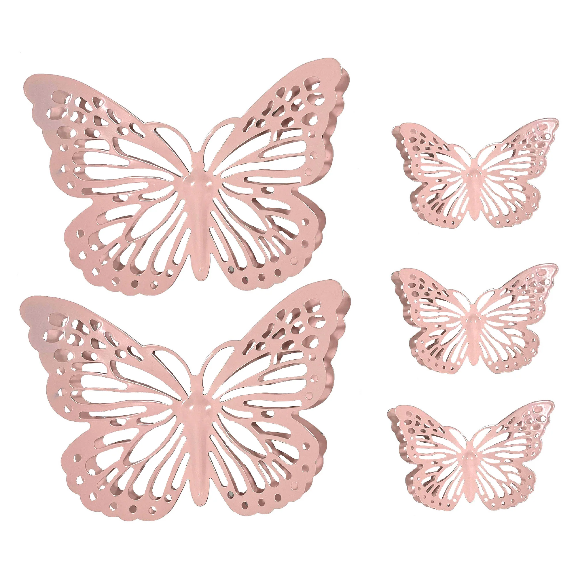 - Set includes: 5 Pink-colored metal butterfly wall decor pieces