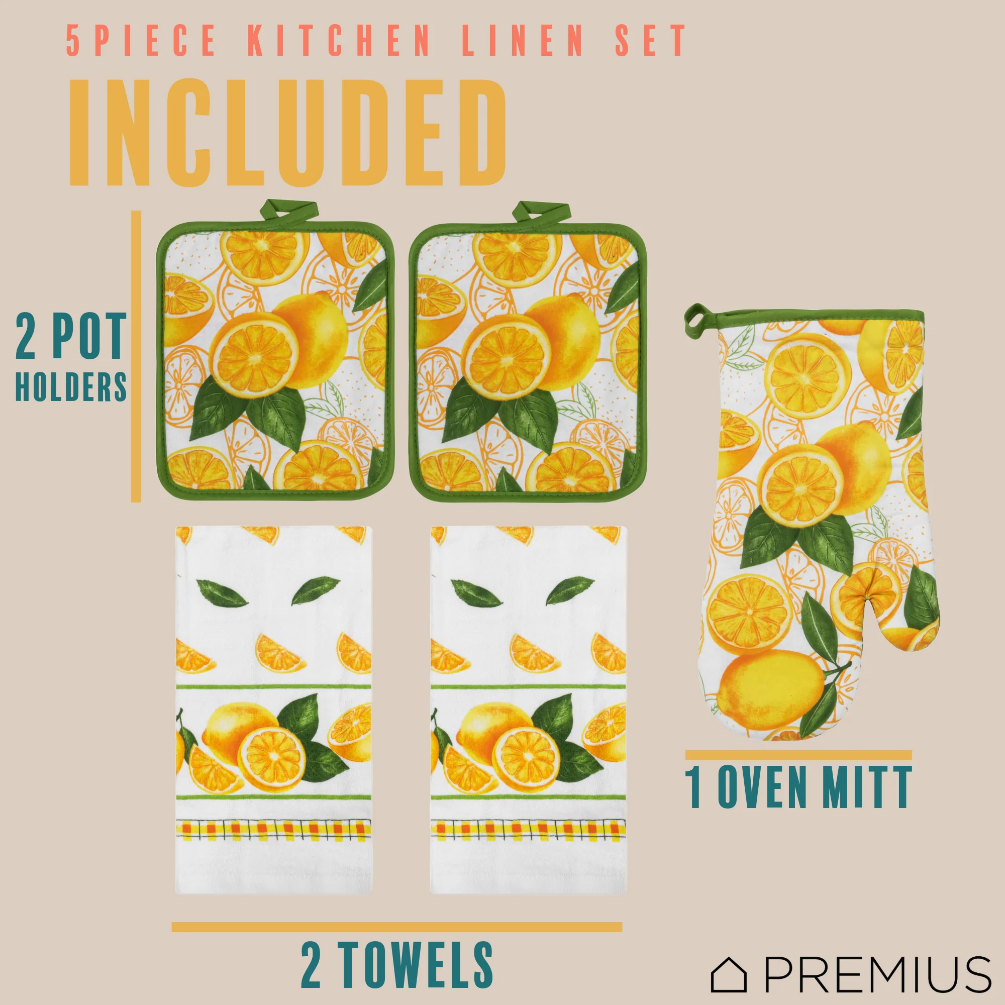 Spruce Up Your Kitchen with a PREMIUS 5-Piece Kitchen Linen Set!