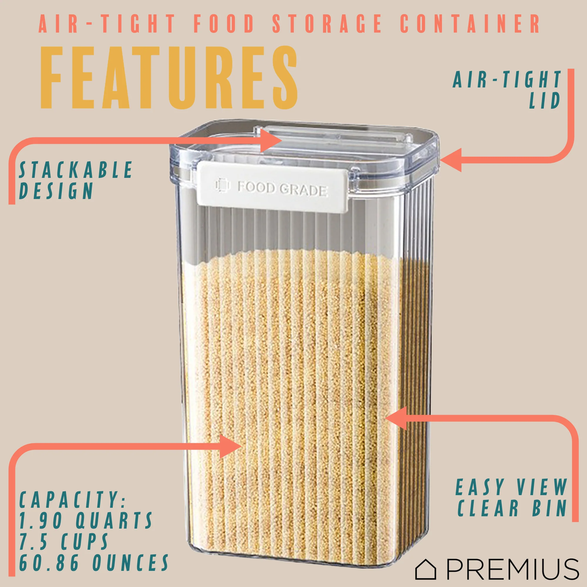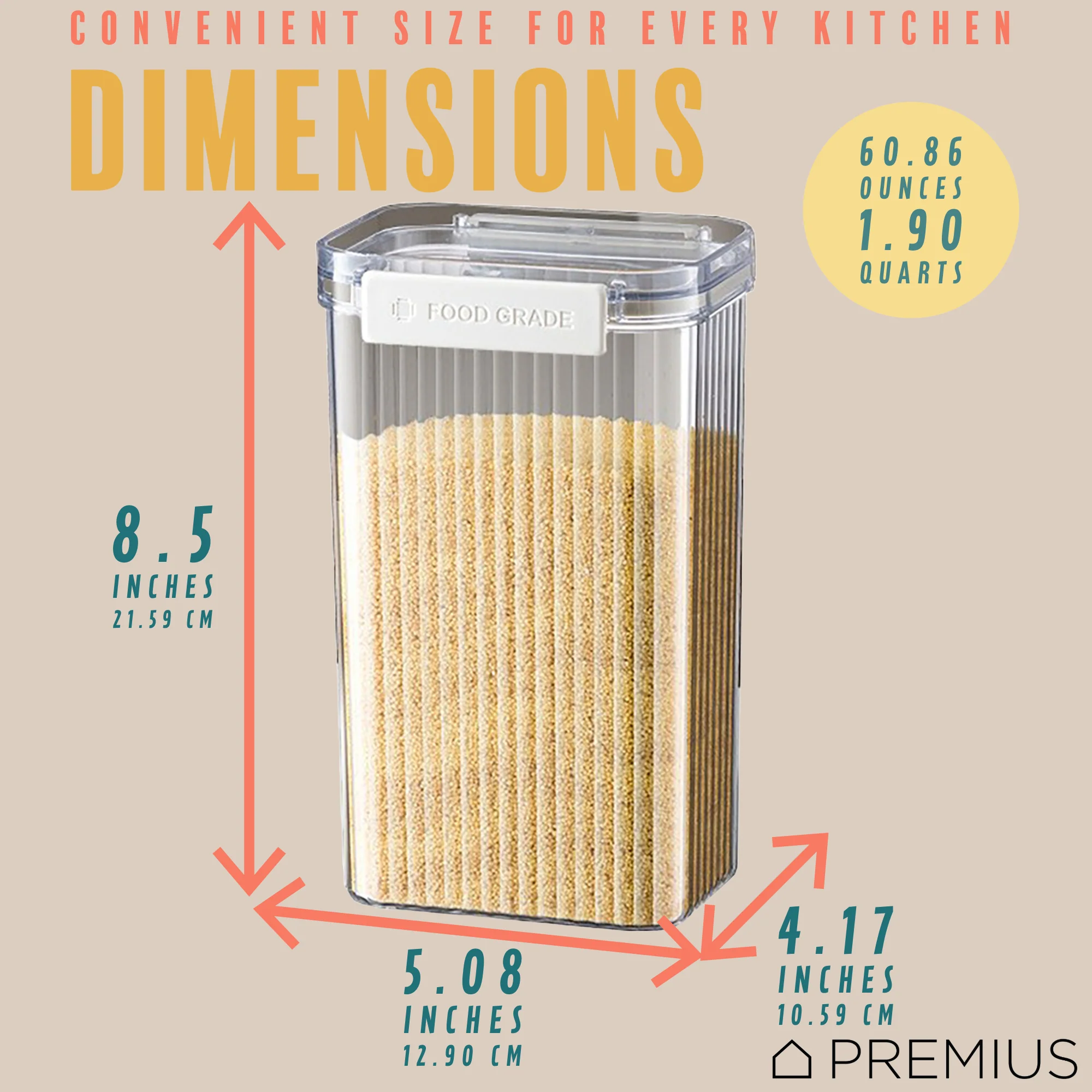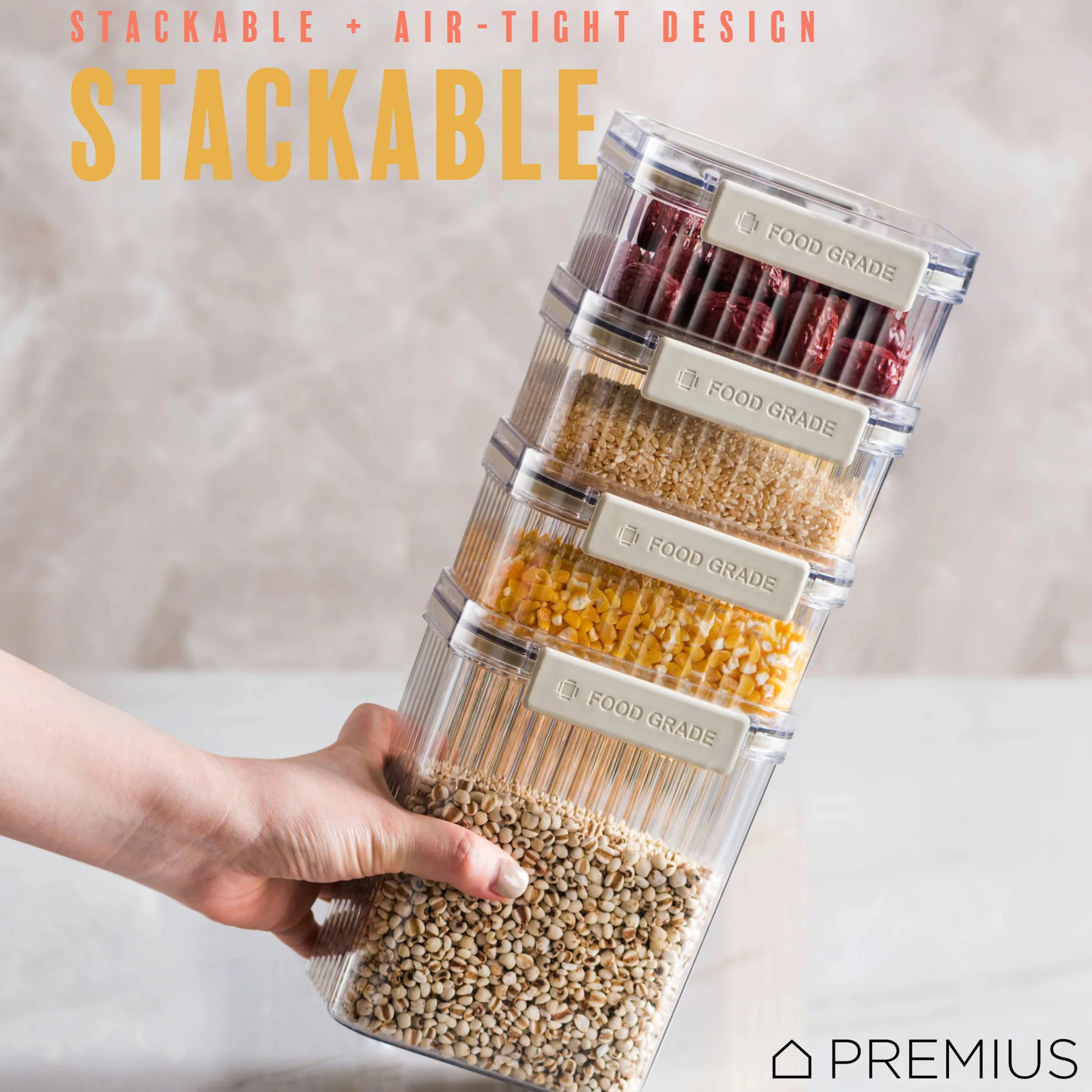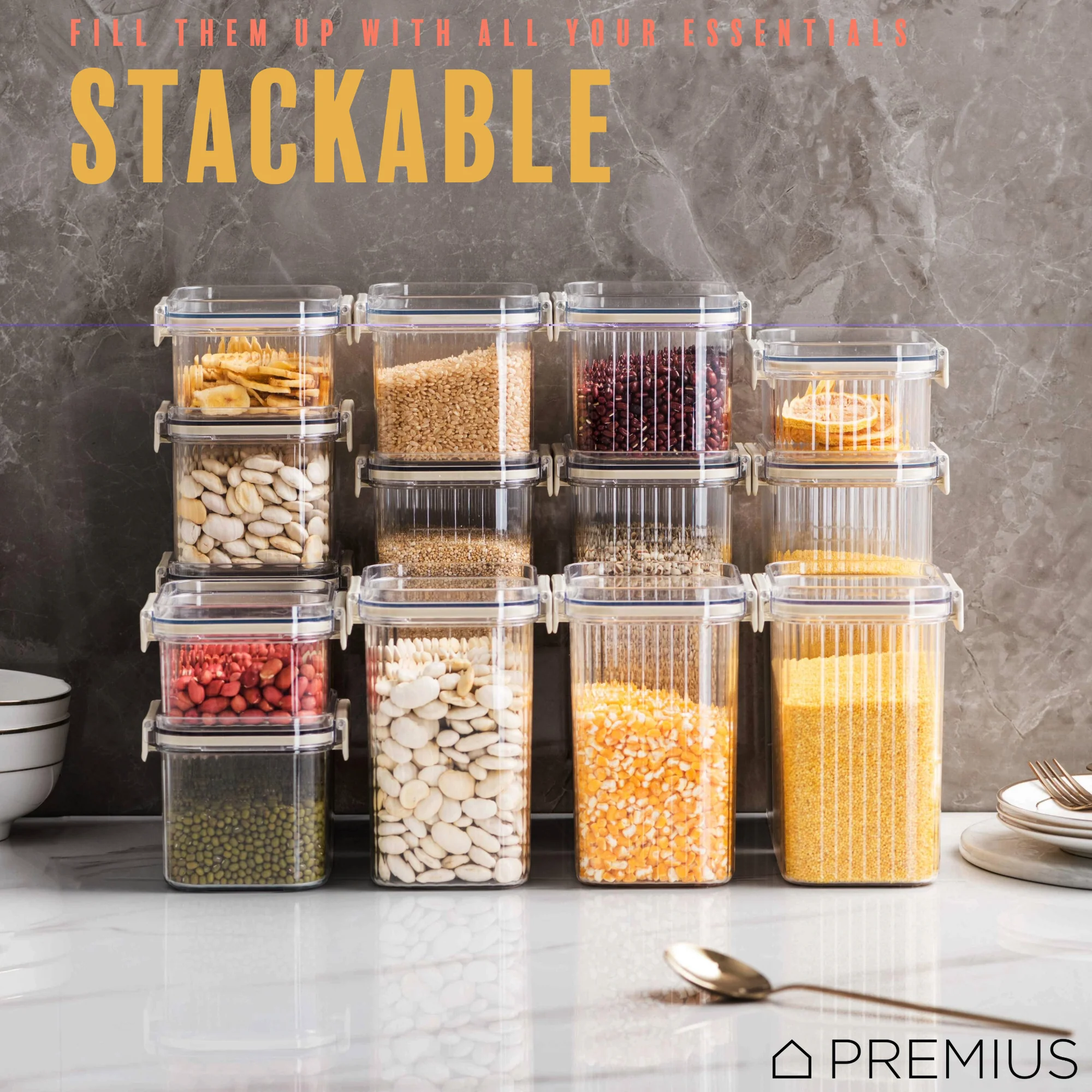 Conquer Your Pantry with the PREMIUS Food Storage Containers! Say goodbye to messy cabinets and overflowing bags with the PREMIUM Plastic Food Storage Containers. These versatile containers come in four sizes, perfect for storing everything from coffee grounds to cereal to pasta.