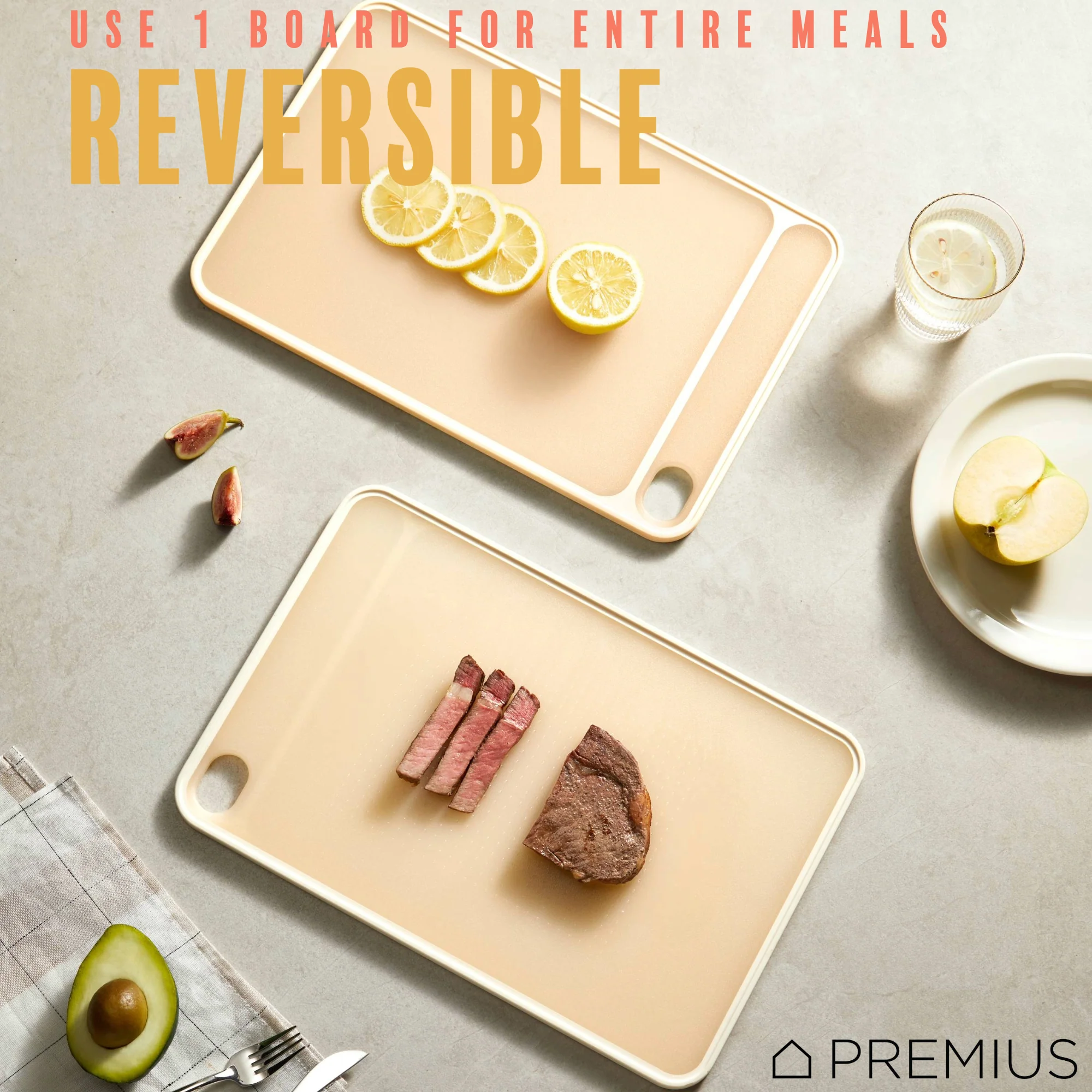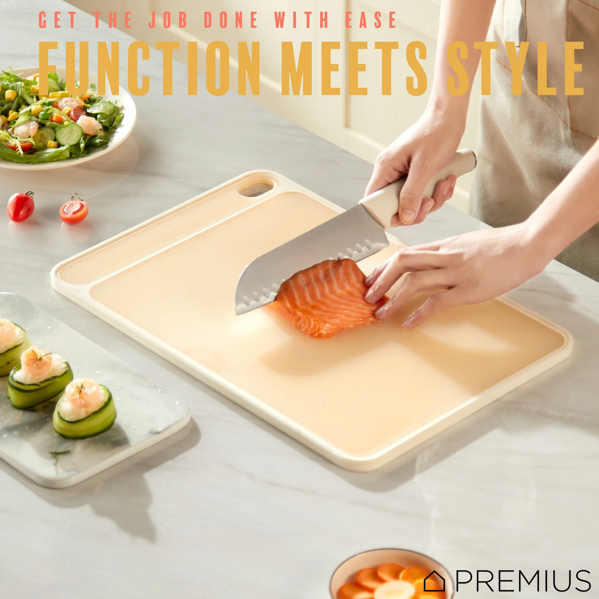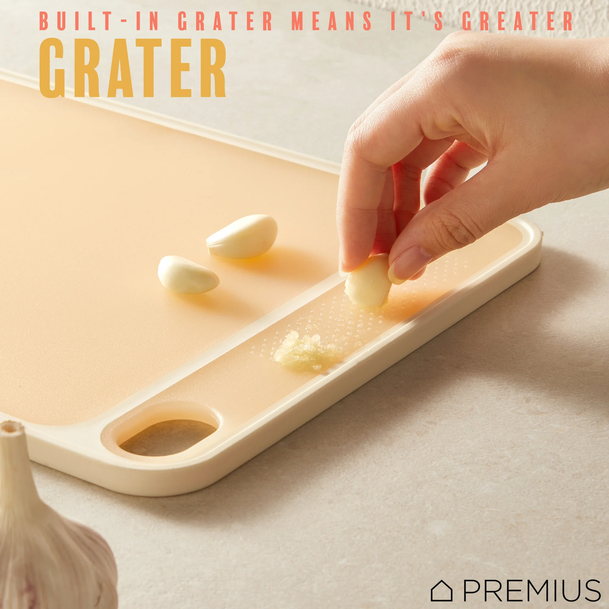 The Reversible Cutting Board: Conquer Chopping with a Single board! Tired of overflowing drawers and dull knives? Tame the kitchen chaos with the Reversible Cutting Board by PREMIUS, your all-in-one chopping, prepping, and grating superhero!