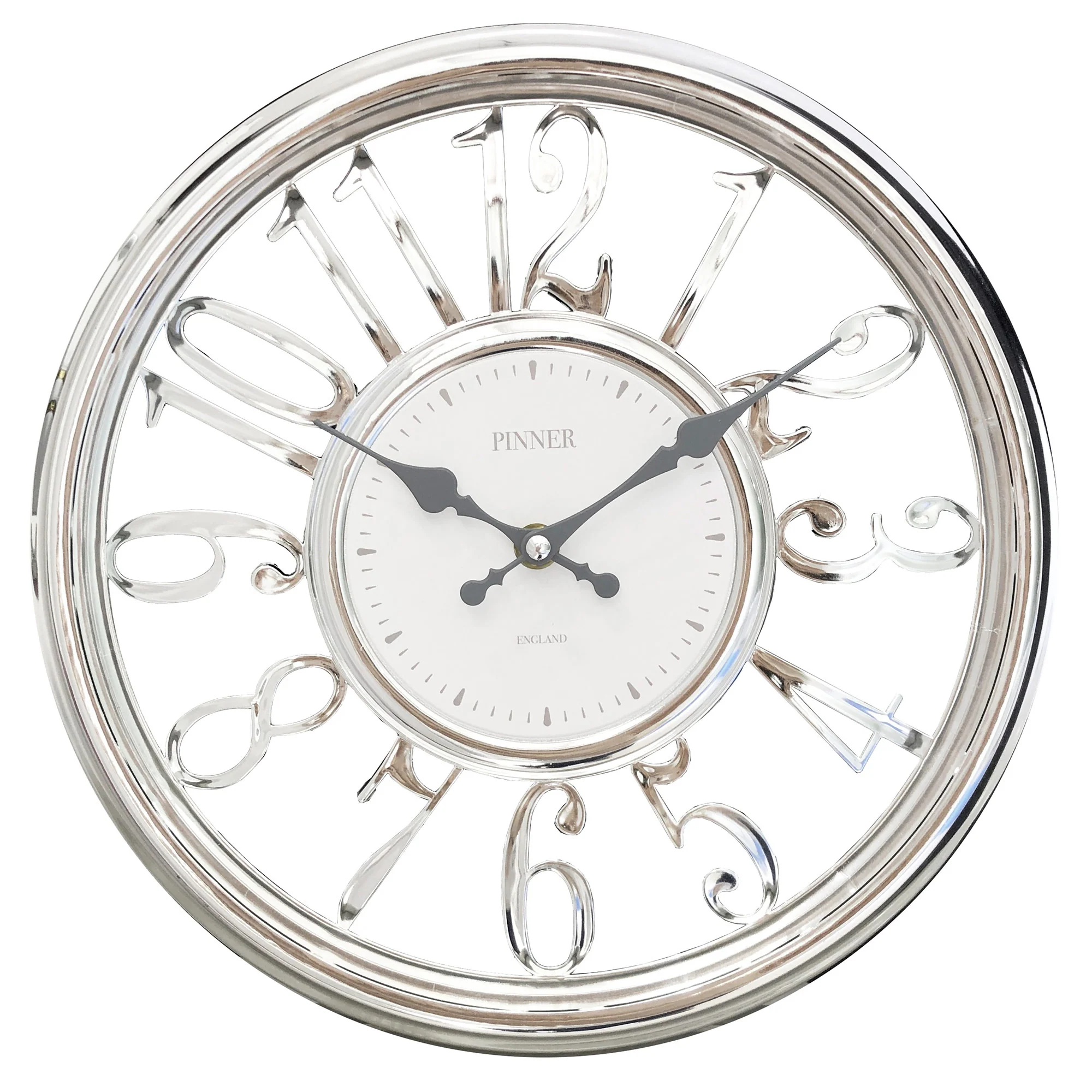 PREMIUS Round Electroplated Analog Wall Clock, Silver, 12 Inches