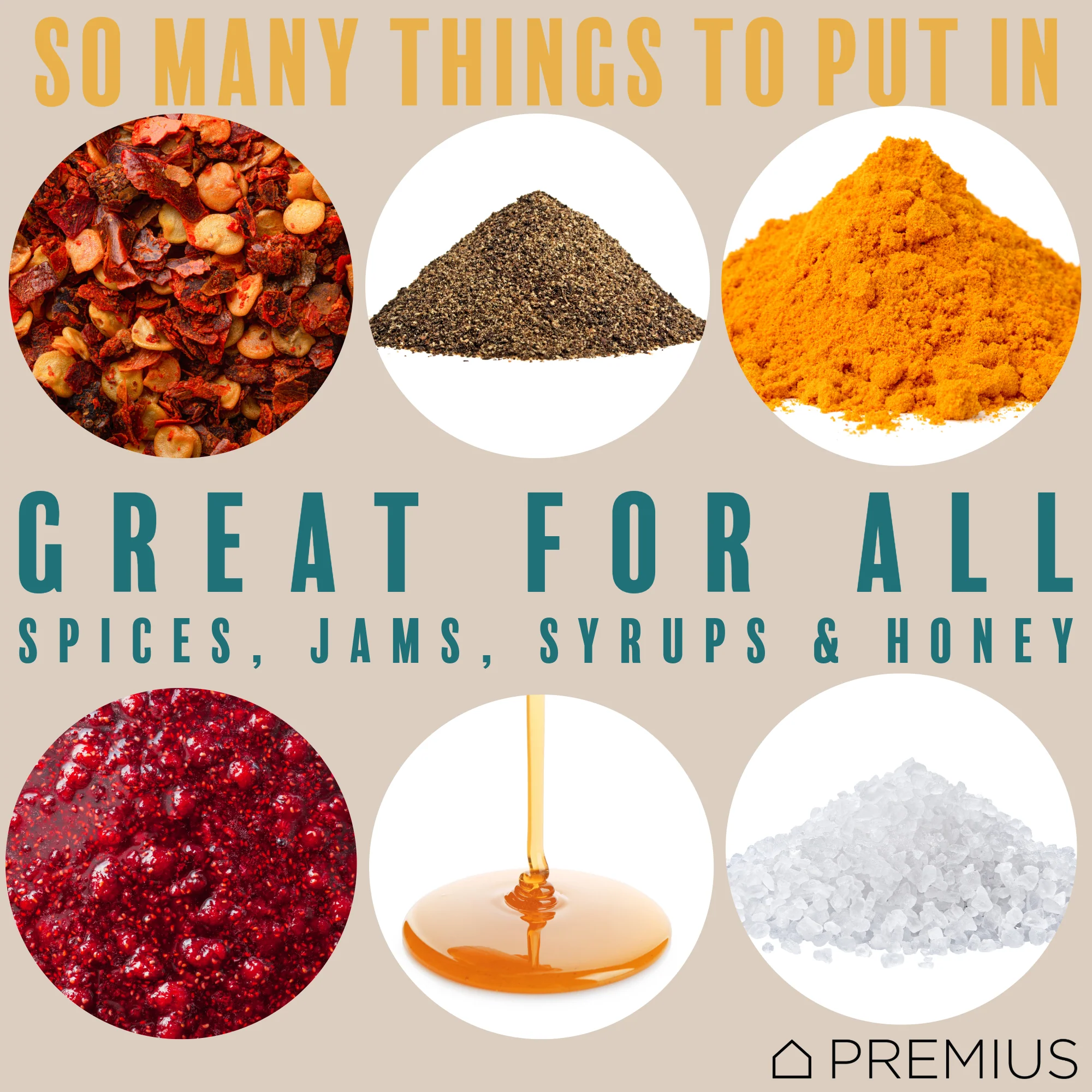 - All-in-One Convenience: Say goodbye to rummaging for spoons! This jar features a built-in spoon that adjusts to different depths, eliminating clutter and keeping things mess-free. No more hunting for the right utensil; the perfect serving spoon is always at hand.