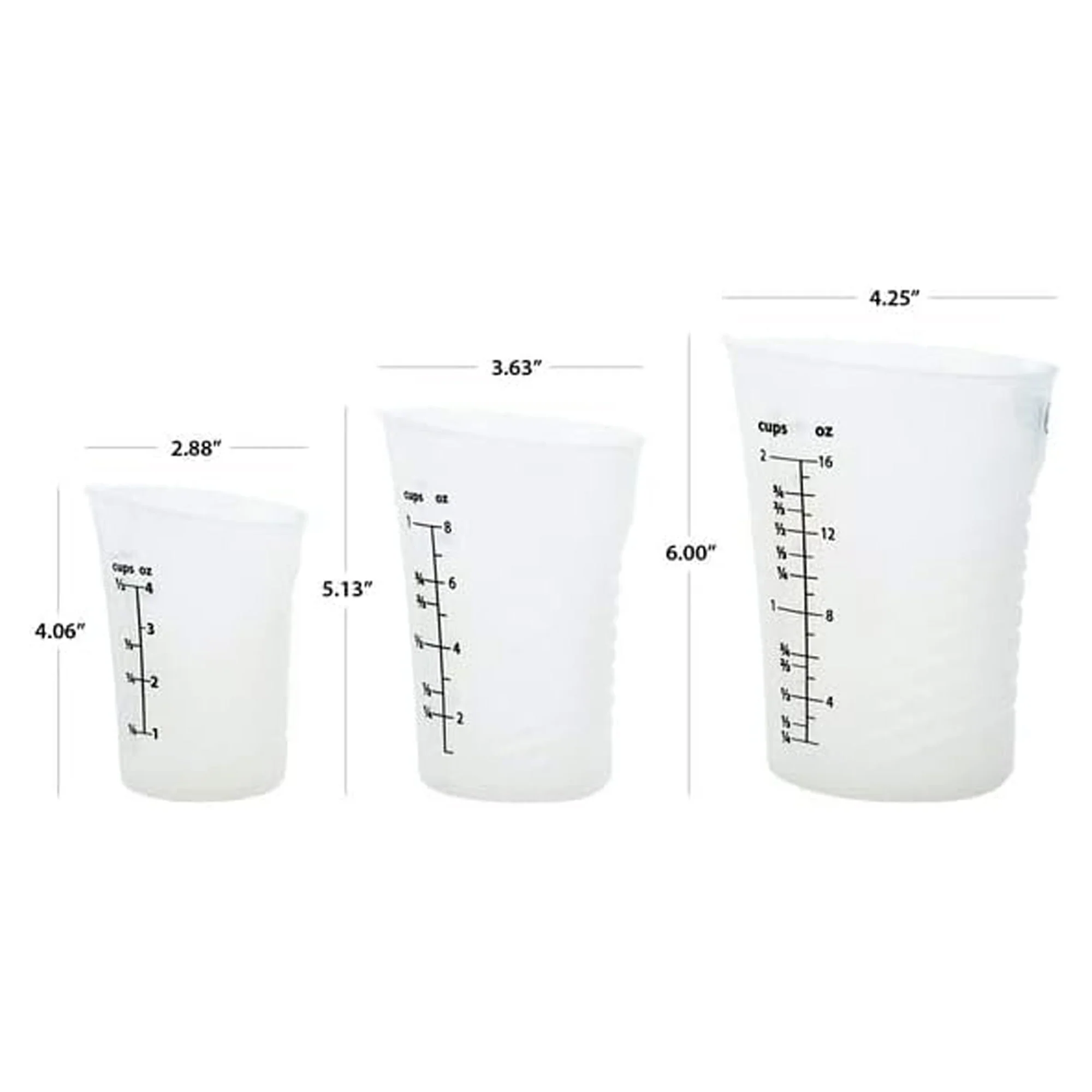 - 3-piece set includes 2-cup, 1-cup, and ½-cup sizes