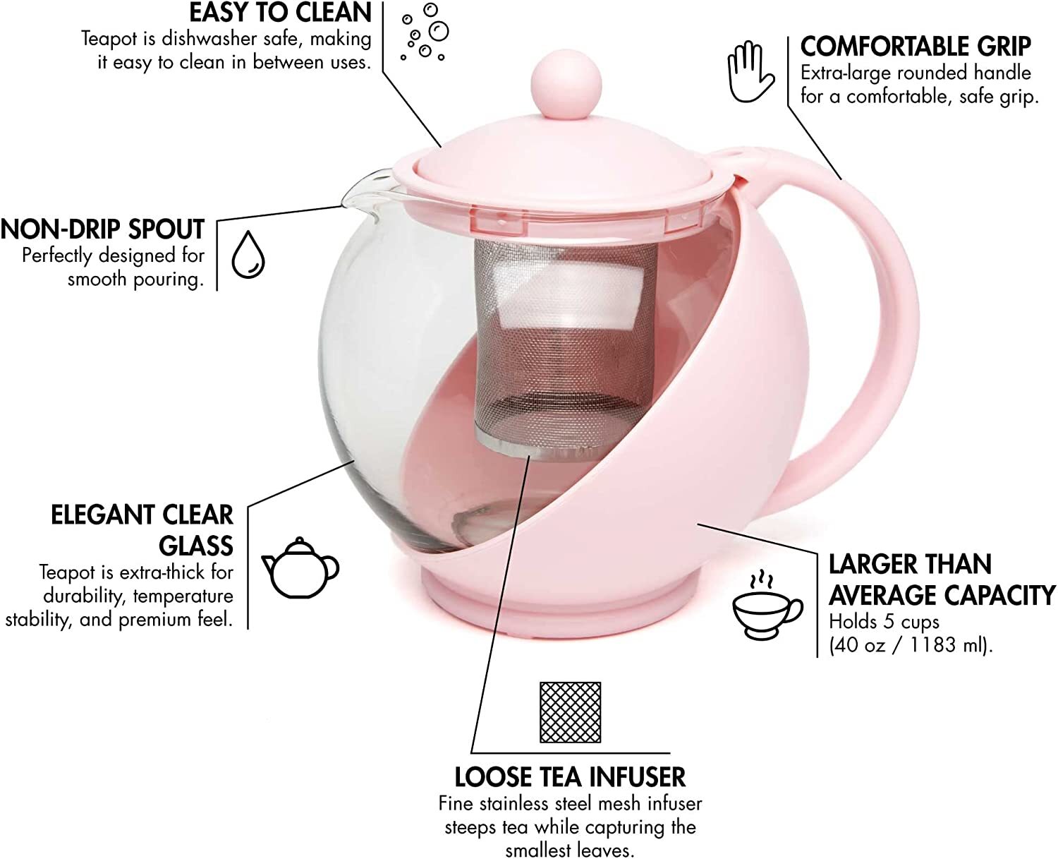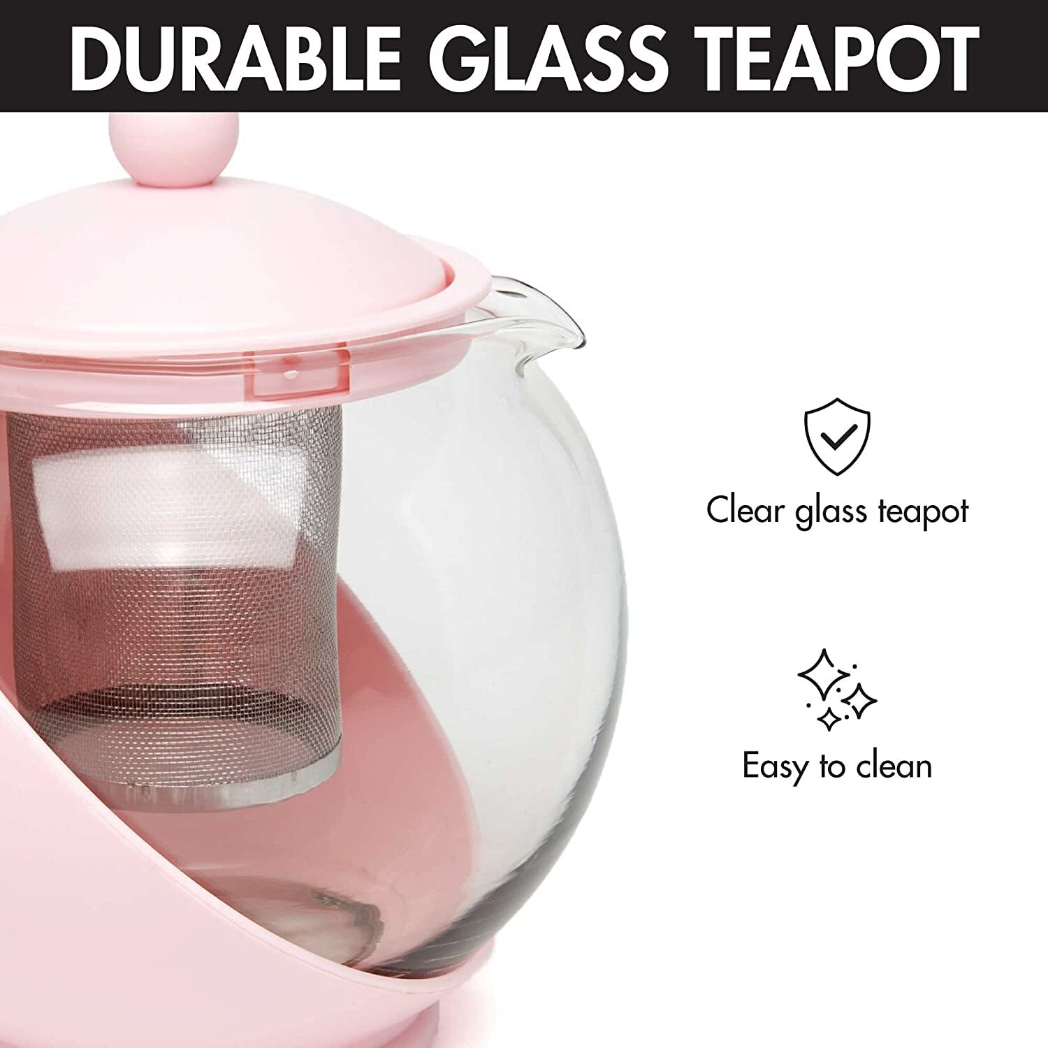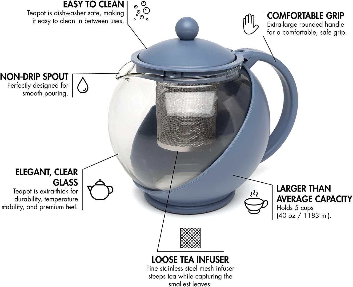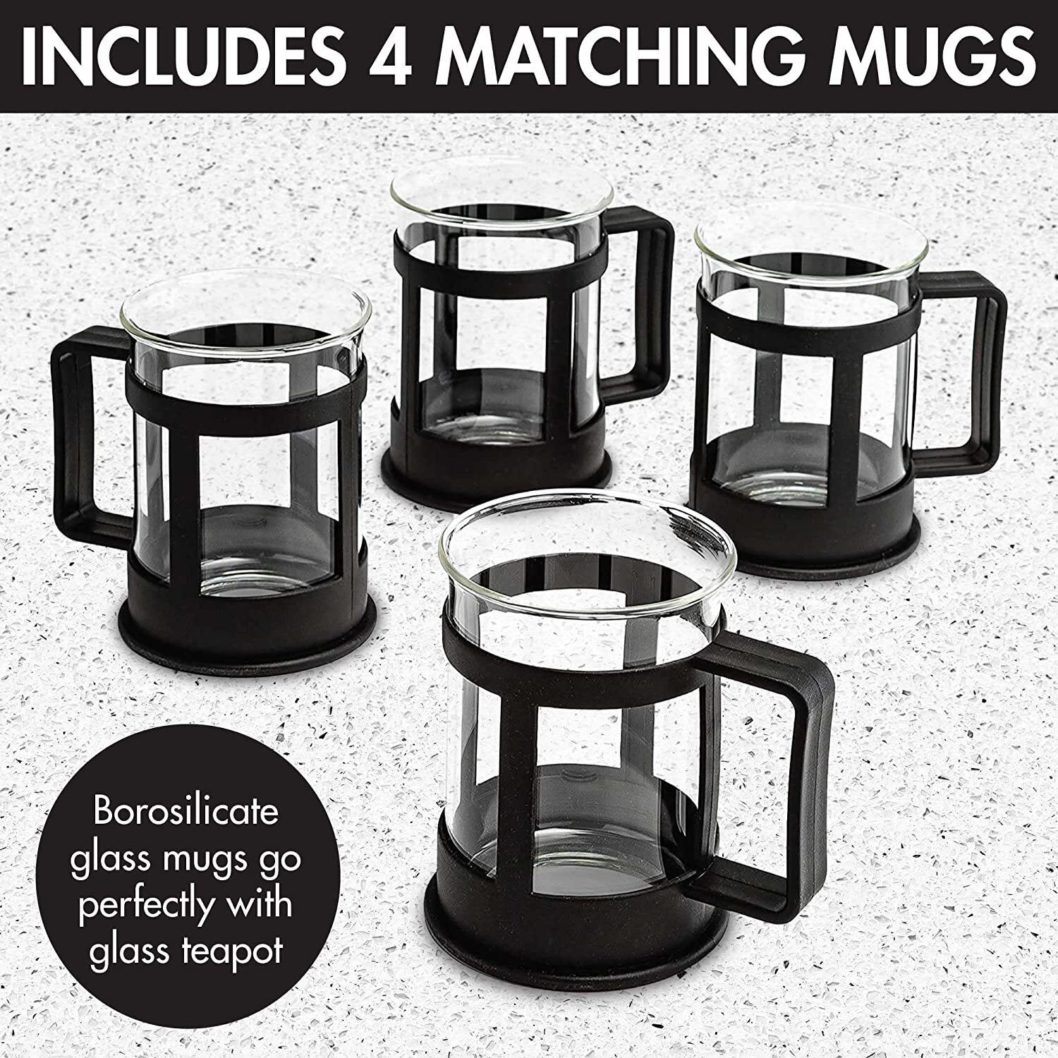 Primula Half Moon Teapot Set with 4 Tea Cups, Removable Stainless Steel Filter and Infuser, Glass Tea Maker, Filter, Dishwasher Safe, 40-Ounce, Tea Gift Set, Tea Set for Service of 4 Adults