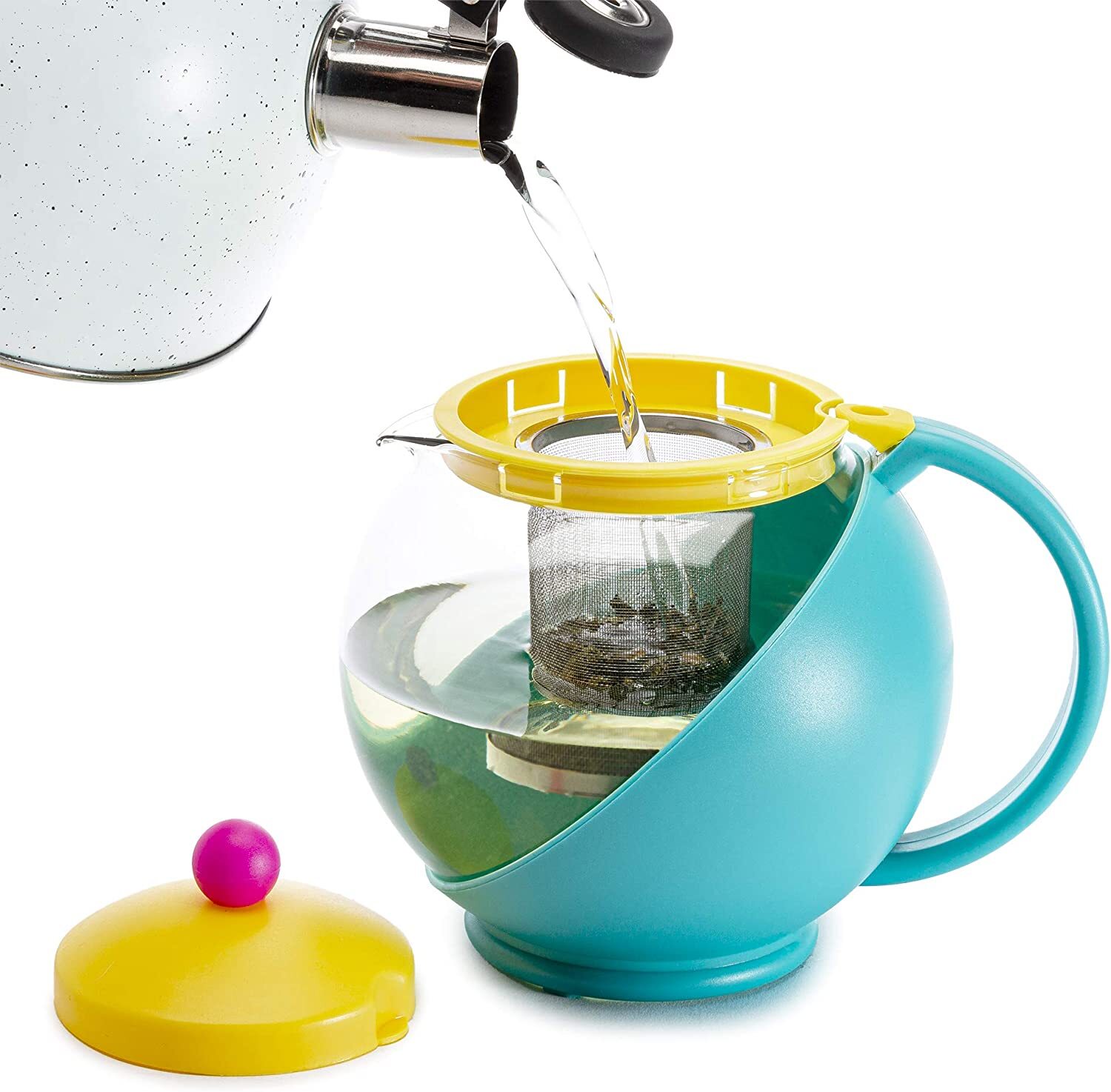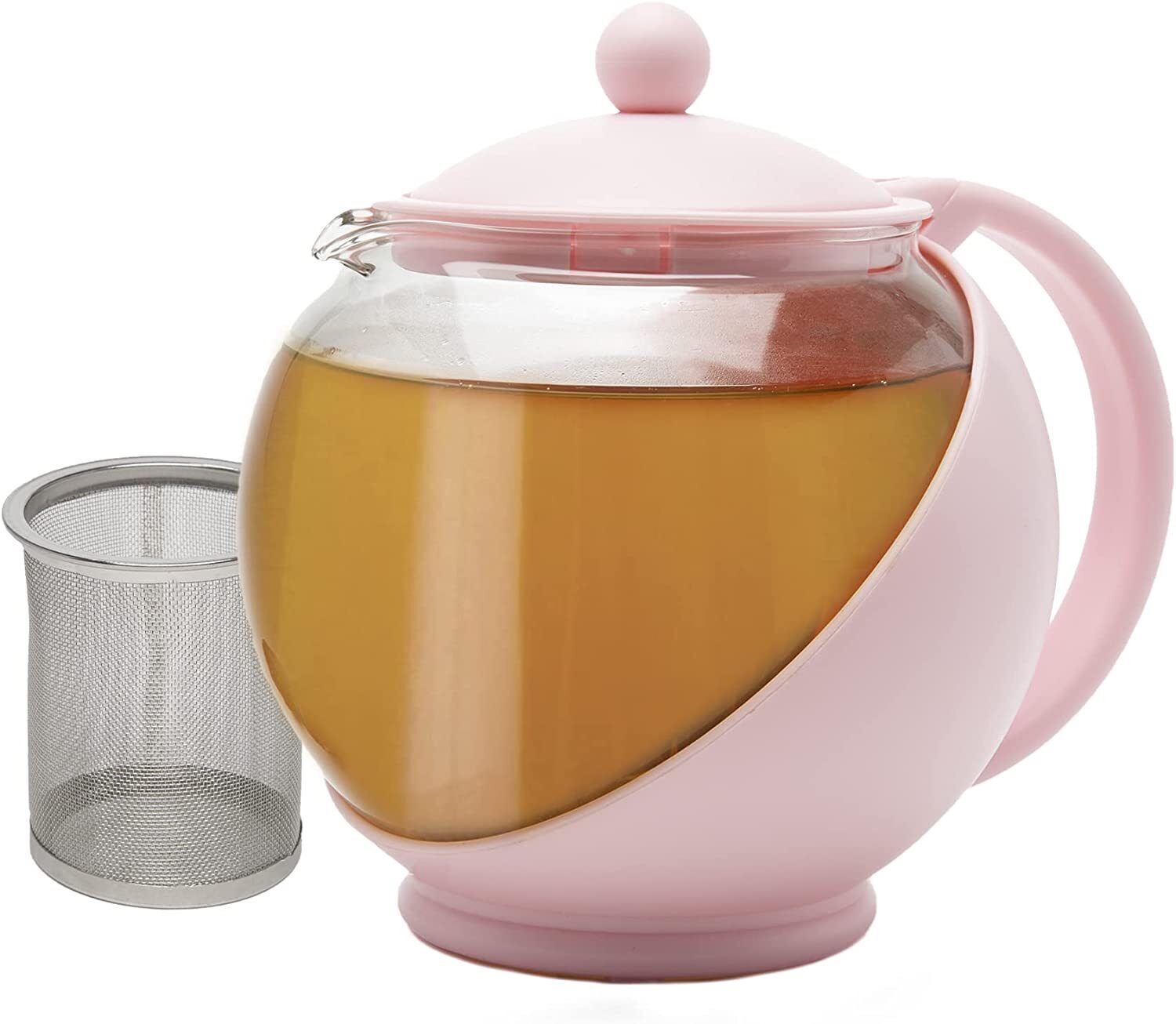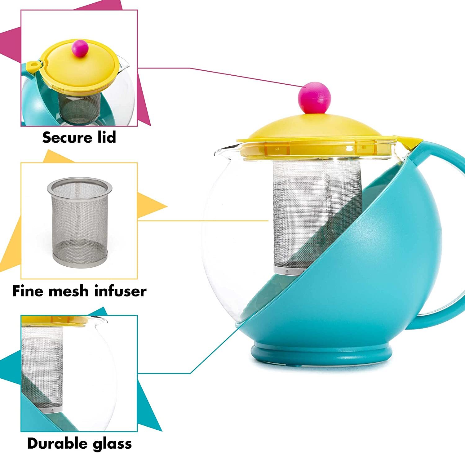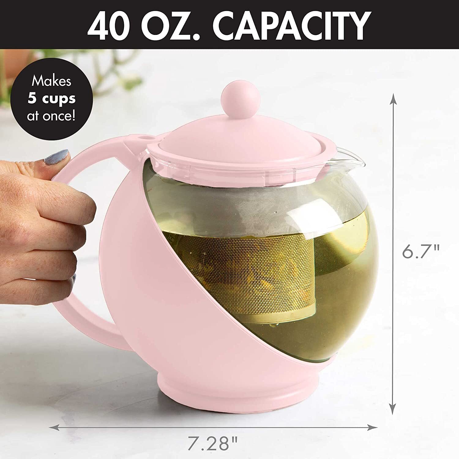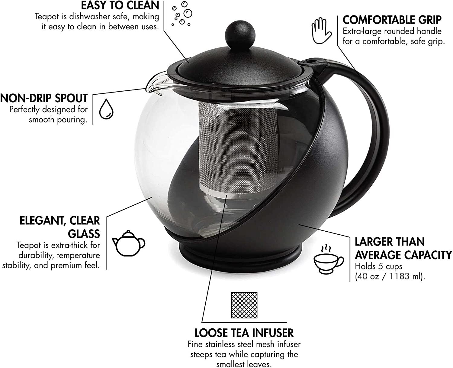 Primula Half Moon Teapot Set with 4 Tea Cups, Removable Stainless Steel Filter and Infuser, Glass Tea Maker, Filter, Dishwasher Safe, 40-Ounce, Tea Gift Set, Tea Set for Service of 4 Adults