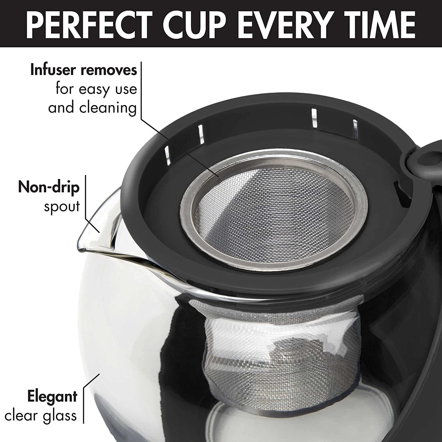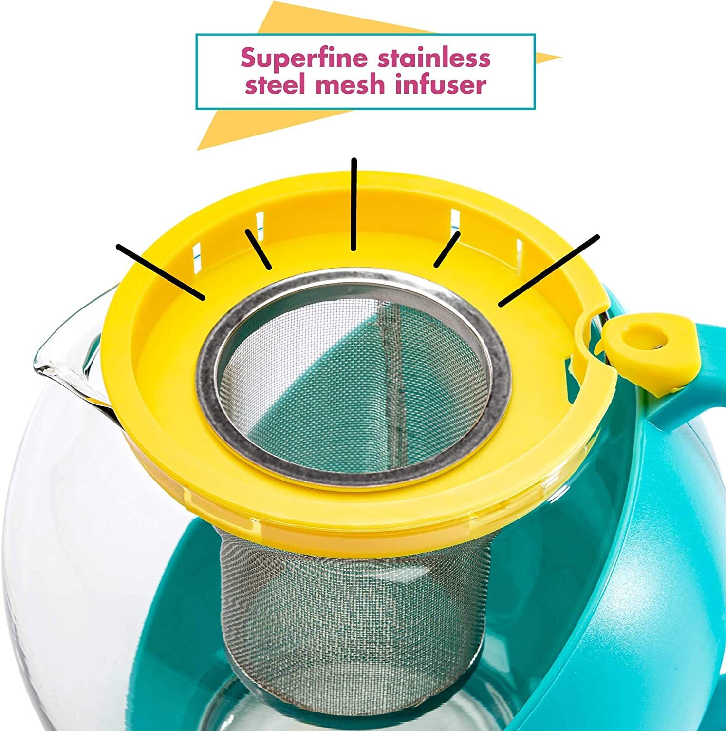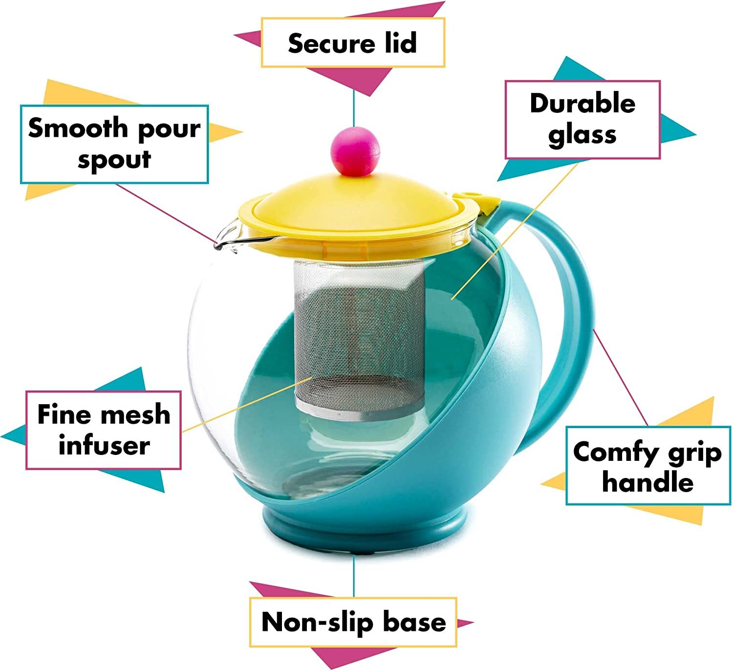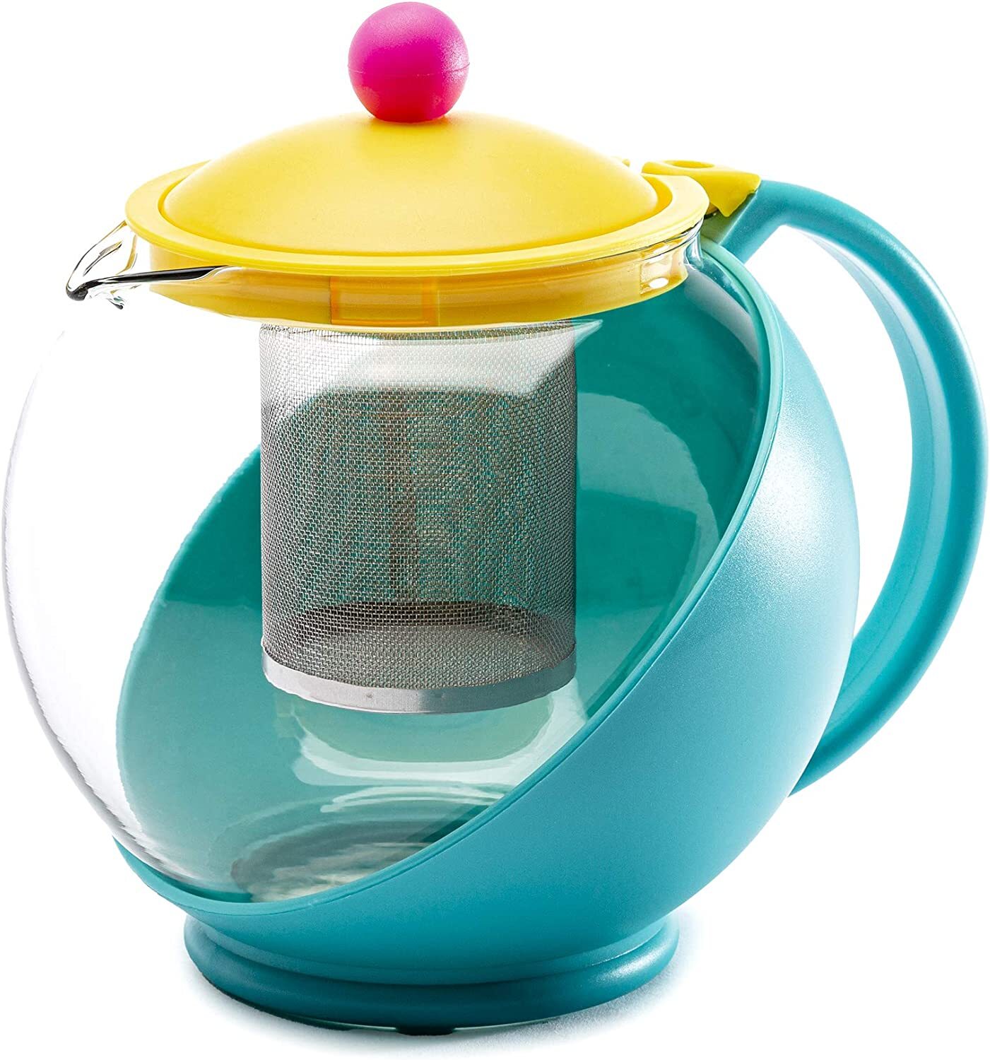 Primula Half Moon Teapot Set with 4 Tea Cups, Removable Stainless Steel Filter and Infuser, Glass Tea Maker, Filter, Dishwasher Safe, 40-Ounce, Tea Gift Set, Tea Set for Service of 4 Adults