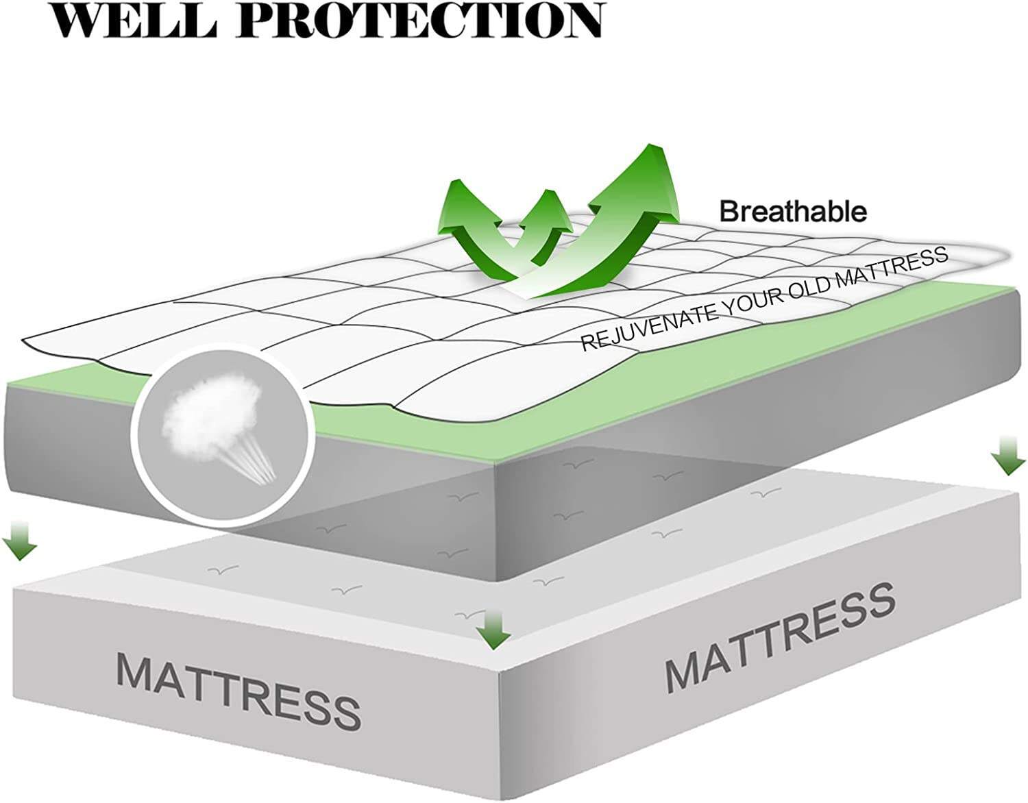• Soft: With 30oz down alternative fillings,this pad will add great softness to your firm mattress.