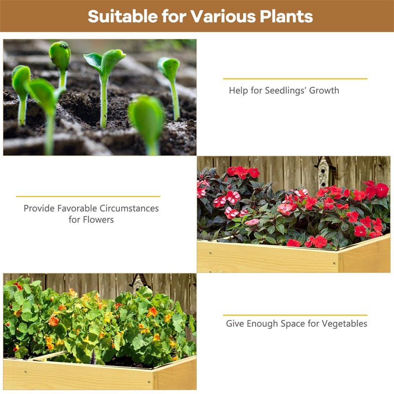 - Easy to Install: The wooden flower vegetable planter bed has quite a simple structure. And just by following the instruction manuals, not difficult at all to assemble it. Everything you need comes in the package including the hardware parts.