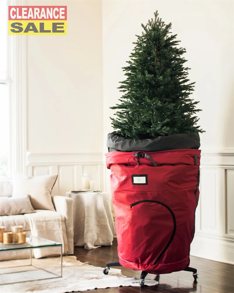 Easily transport and store your Christmas tree season after season. Crafted from durable materials, this bag comes in three sizes and features a rolling stand to simplify the storage process. Just remove all decorations from your tree, detach and place the top tree section in a special compartment, and pull up the collapsible bag up over the tree.