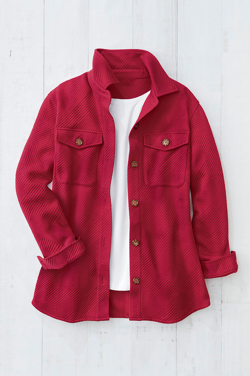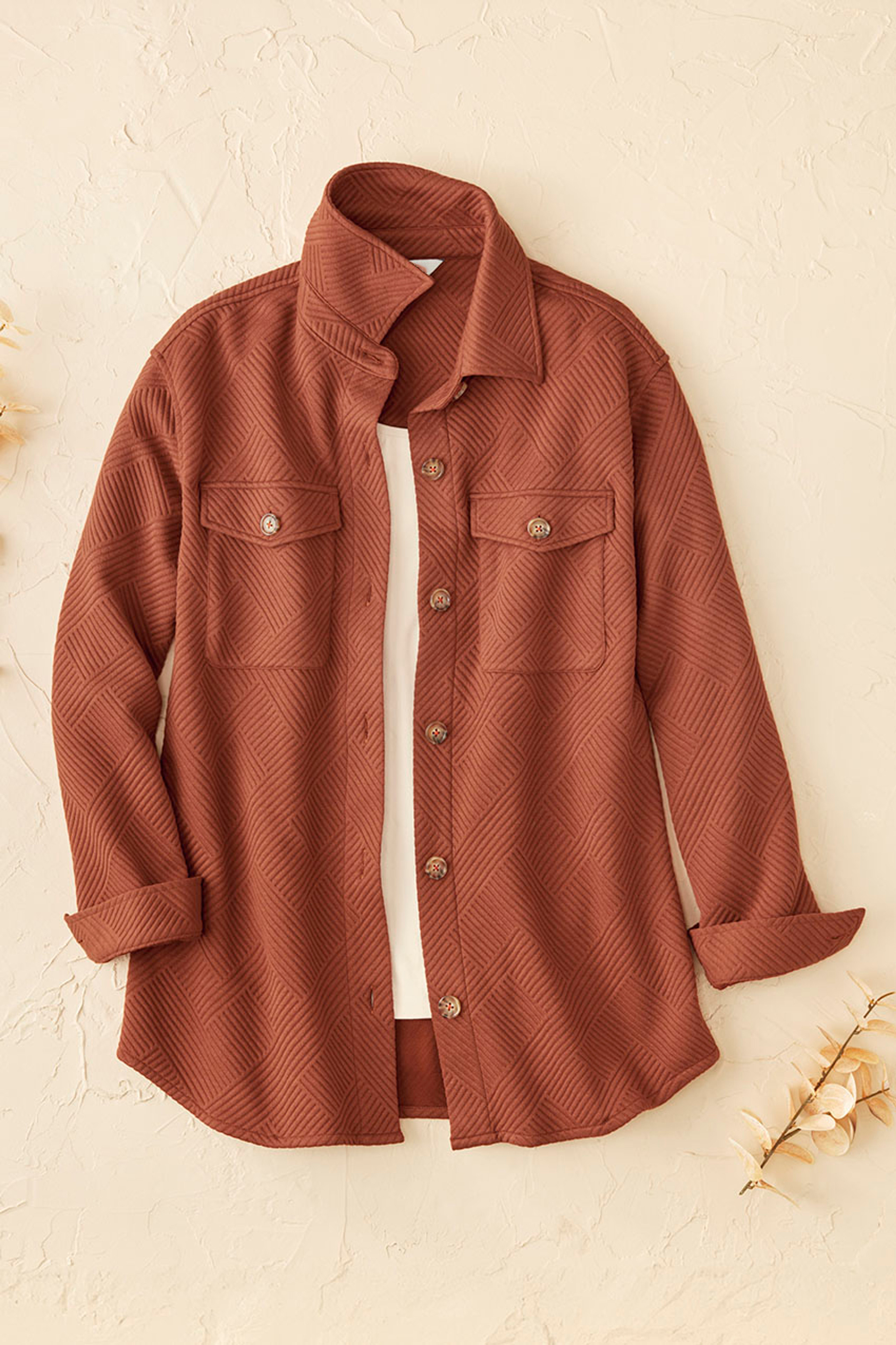 This crossover style makes an impression with chevron-patterned texturing and a soft, drapey feel. Lighter weight makes it perfect for casual layering.