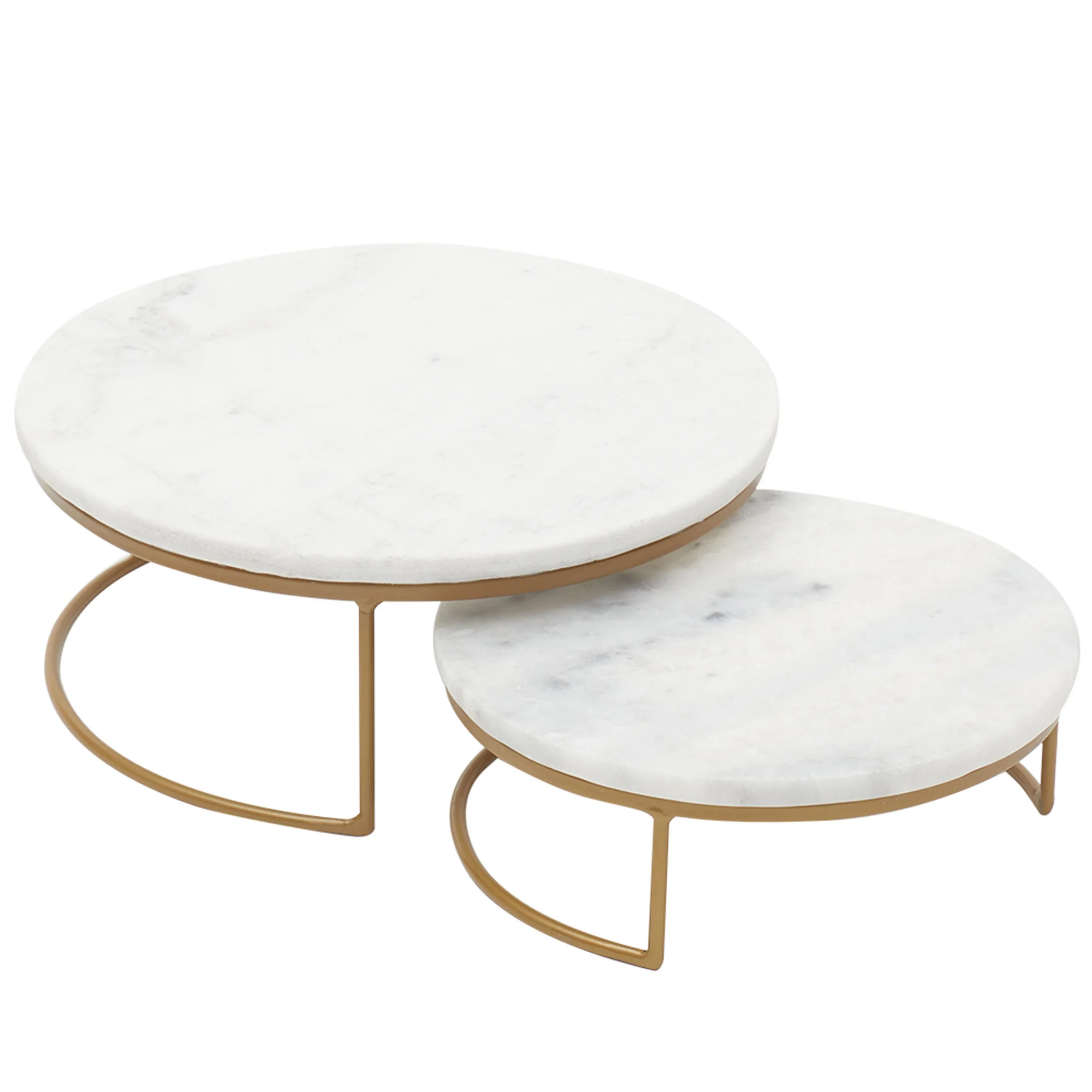 Elevate your culinary presentations with the Sophia Grace 2 Pieces Marble Table Riser Set in White-Gold. Perfect for showcasing appetizers, fruits, or decorative items, these elegant table risers add a touch of sophistication to any table setting or décor arrangement. Crafted from luxurious marble and featuring gold-tone metal legs, they exude timeless charm and versatility.