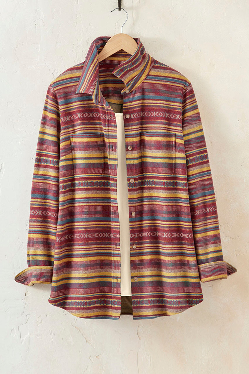 Our soft-brushed tunic, in a colorful array of stripes and spirited motifs. Perfect on cool days for a touch of warmth – or works great as an anytime layer. Super stretch gives it exceptional comfort and ease of movement. Patch chest pockets, pleated back yoke, shirttail hem.