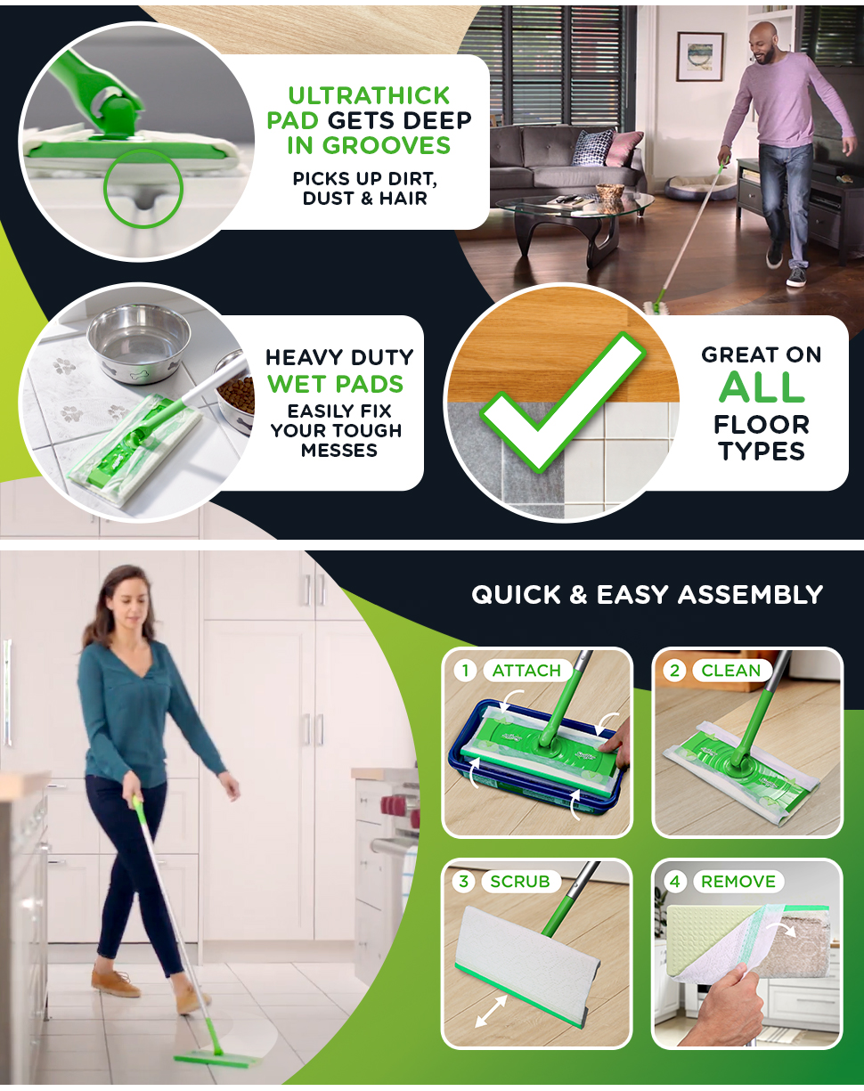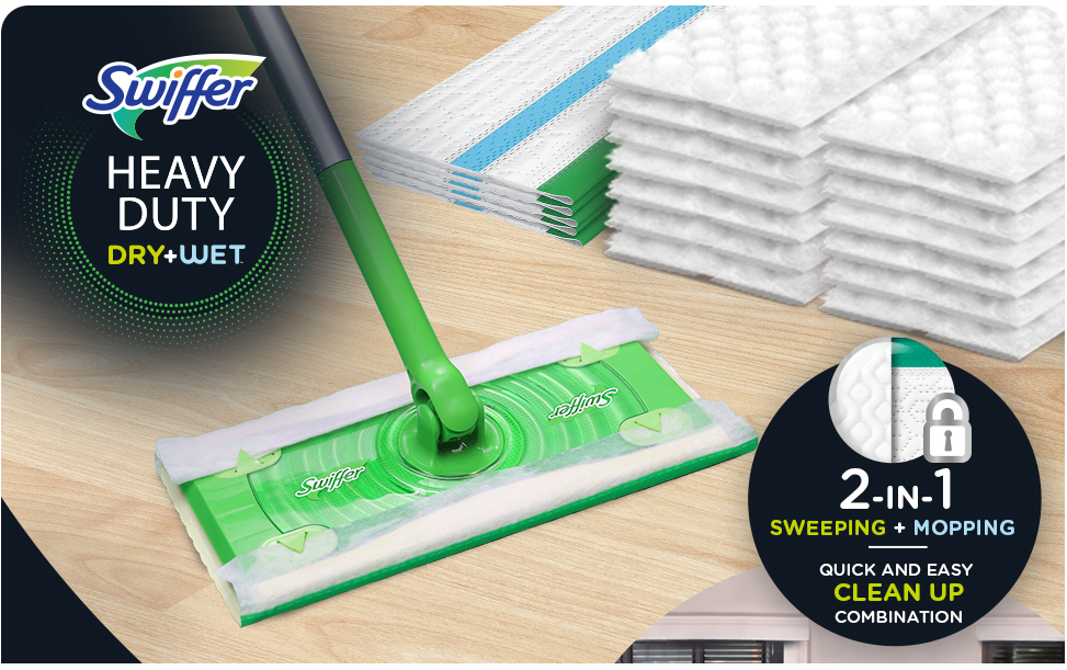 - Swiffer Heavy Duty Wet Mopping Cloths Trap + Lock 50% more dirt* allowing you to quickly and easily clean all your hard floor surfaces. *vs. Swiffer wet mopping pad
