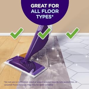 - Safe on all floor types, so you can use it on tile, hardwood, and vinyl flooring* *do not use on unfinished, oiled or waxed wooden boards, non-sealed tiles or carpeted floors because they may be water sensitive