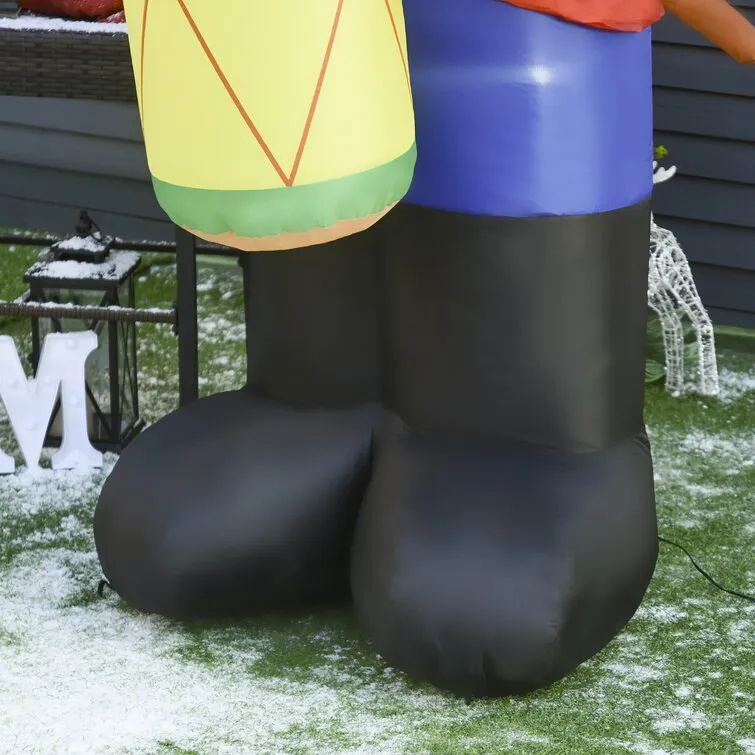 Create some perfect atmosphere with this 8ft tall inflatable walnut soldier. The walnut soldier wears a tall blue hat and red military uniform with a yellow drum hanging on his chest. The drumming posture with his joy face will absolutely light up the Christmas atmosphere. It can be used in daylight and night, indoor or outdoor, flashing LED light for adding different atmosphere at night. Creepy but cute inflatable from The Holiday Aisle?? wona??t let you down.