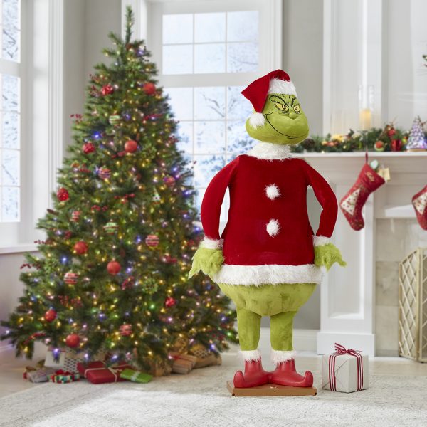 Standing over 5 1/2′ -tall, this is the animatronic Grinch that expresses discontentment of Christmas. When activated by the push of a button, the animated figure cycles through four phrases such as “Christmas? Bah humbug” and dances to the original 1966 version of You’re a Mean One, Mr. Grinch. As he speaks and “sings”, the Grinch turns his head and sways his hips from side to side. He has an integrated three-watt speaker and an adjustable volume. AC plug with 59″-long cord. 69″ H x 26 3/4″ W x 22 3/4″ D. (20 lbs.)