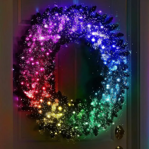 This is the 36″ diameter wreath that displays a brilliant fiber-optic holiday light show.