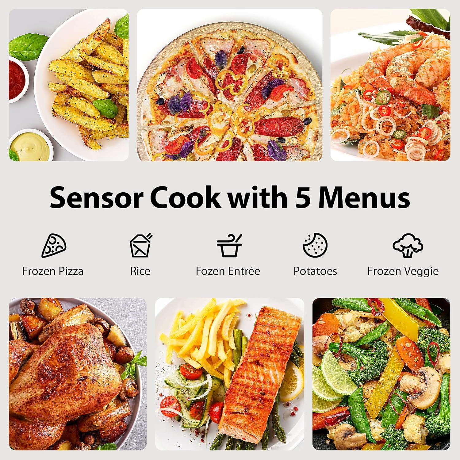 This small microwave oven features sensor function that takes the guesswork out from cooking. Built-in sensor constantly detects the humidity level of the food during cooking, then automatically adjusts time and temperature for optimal results.