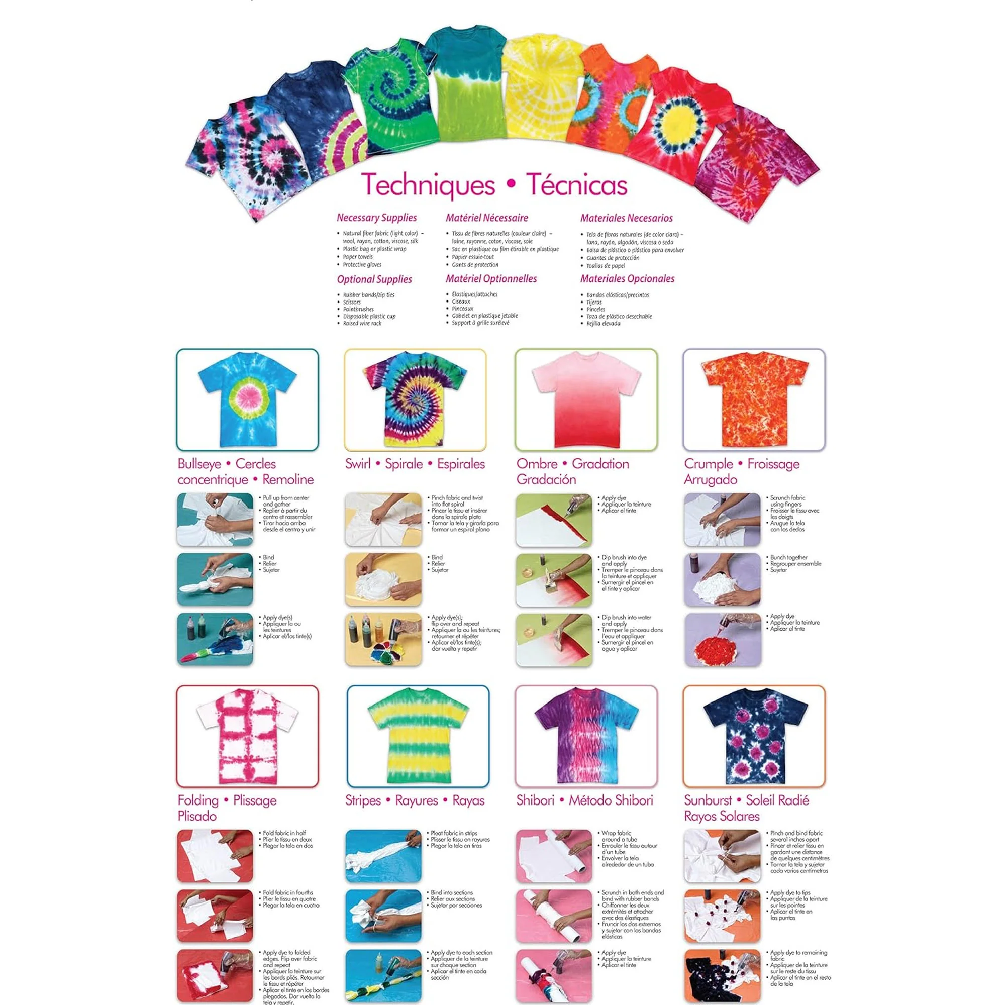 - Includes 12 one-step dyes, rubber bands, gloves, project tray, and inspiration guide
