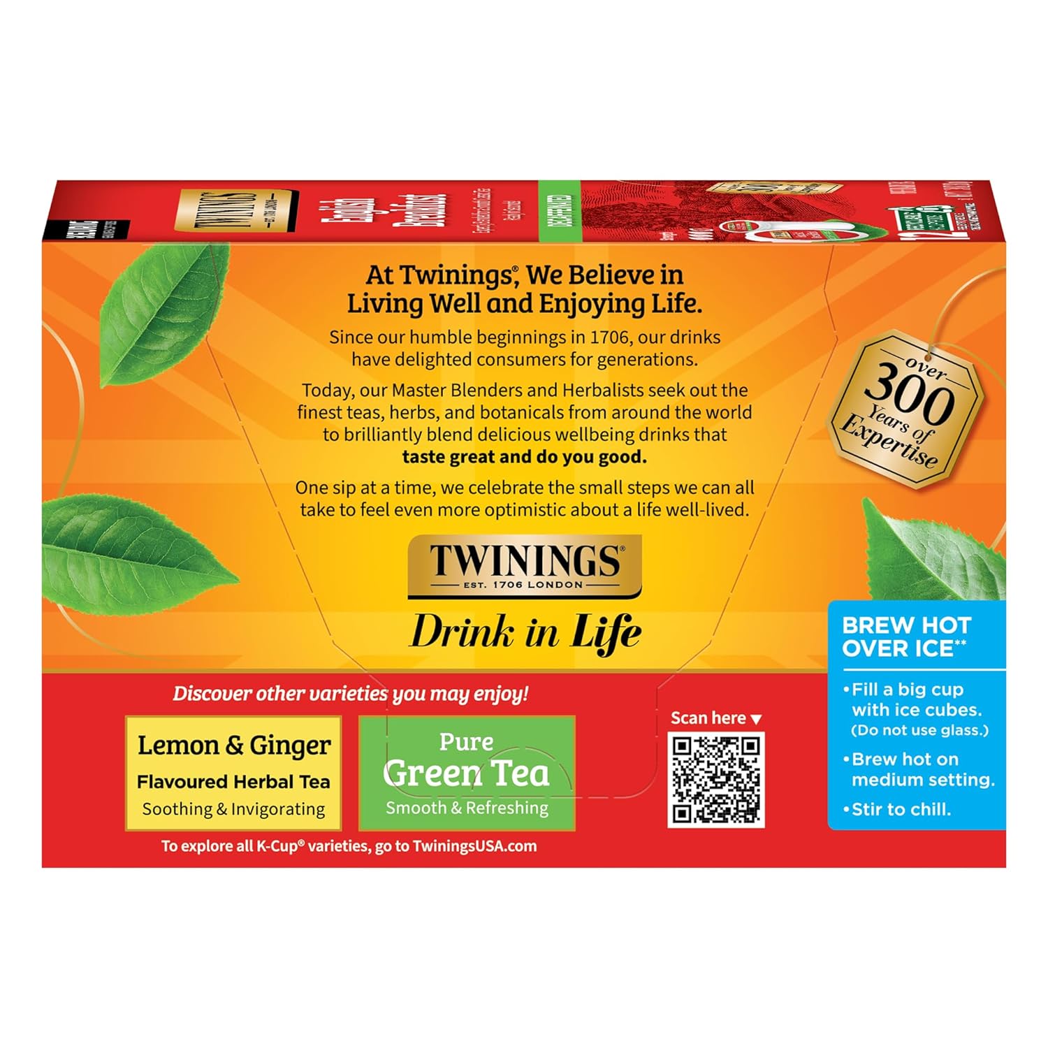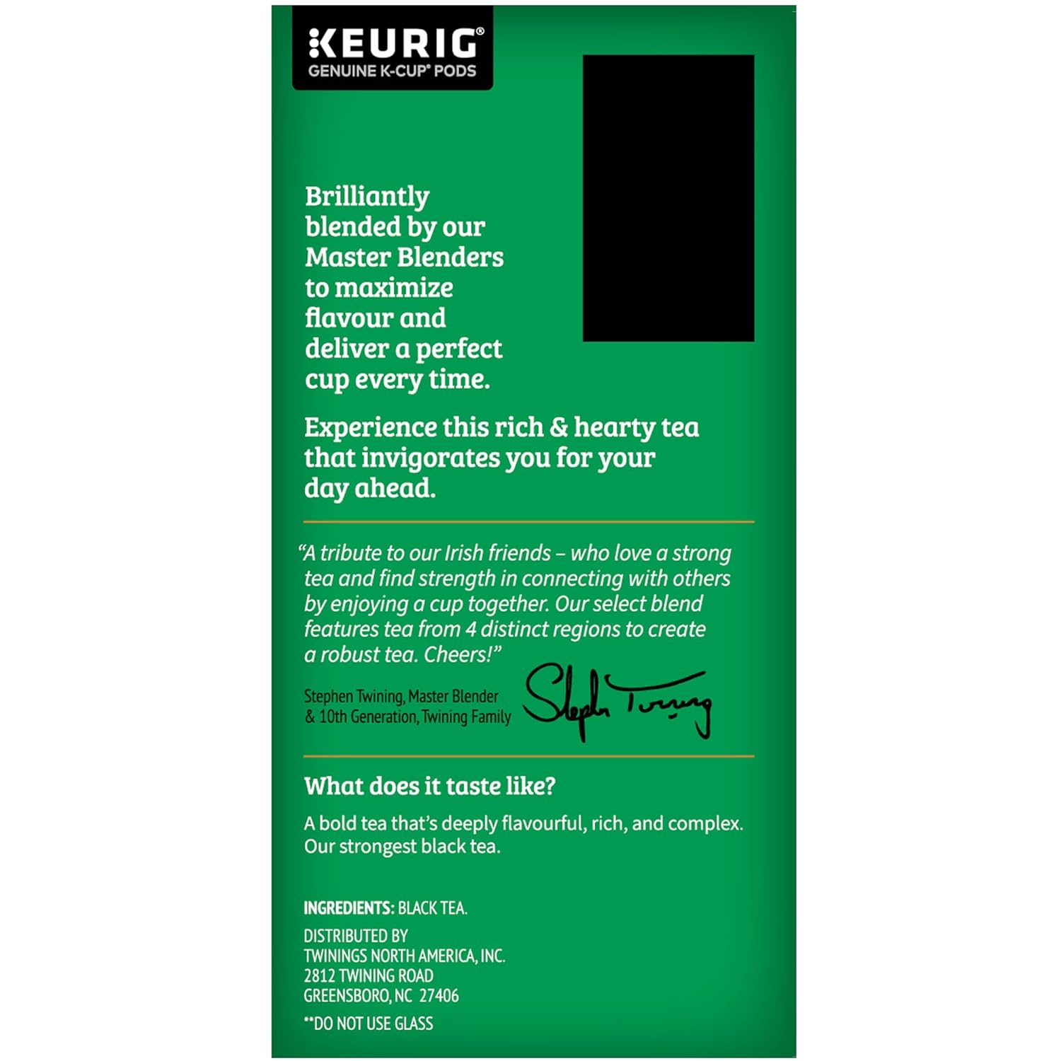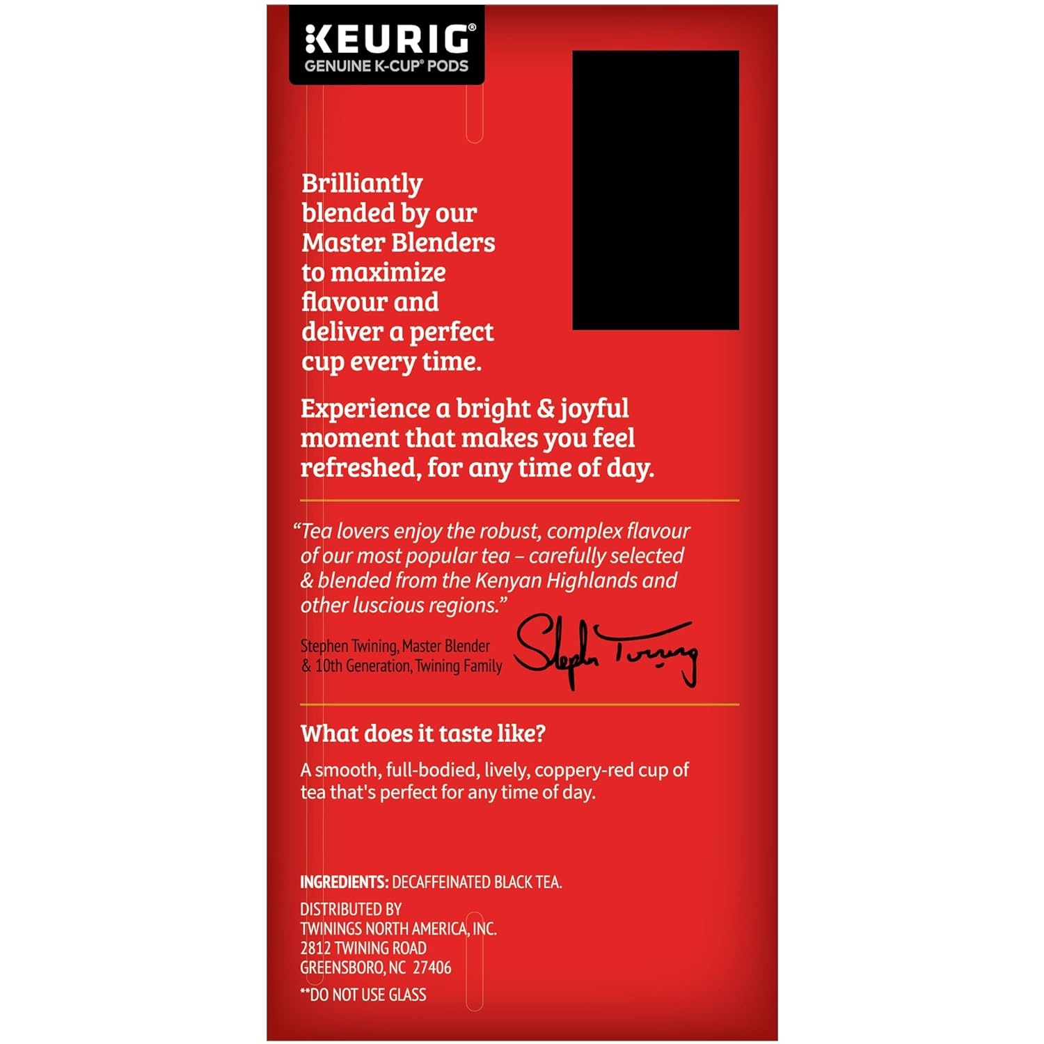 - ENGLISH BREAKFAST TEA K-CUP PODS: One box of 24 Twinings English Breakfast Tea Pods; Our most popular black tea for a refreshing recharge any time of day; Caffeinated