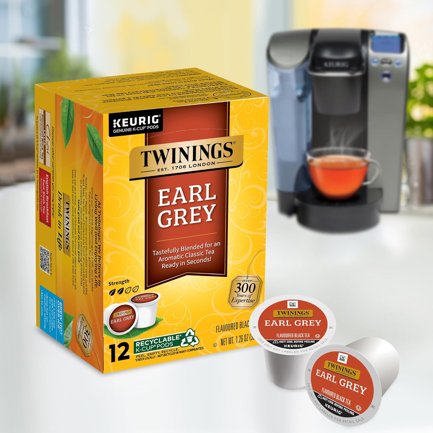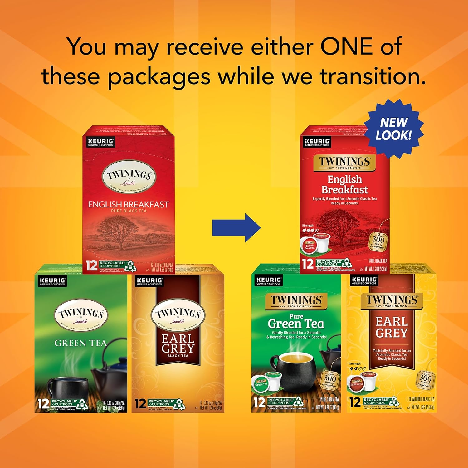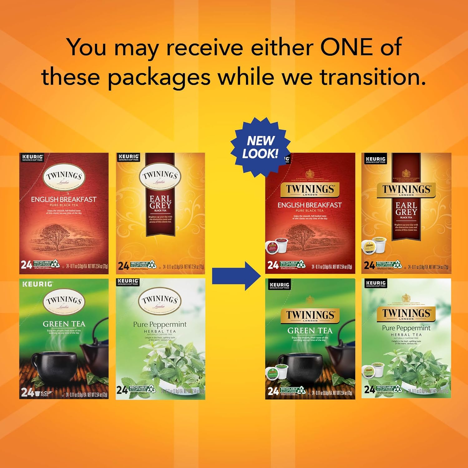 - ENGLISH BREAKFAST TEA K-CUP PODS: One box of 24 Twinings English Breakfast Tea Pods; Our most popular black tea for a refreshing recharge any time of day; Caffeinated