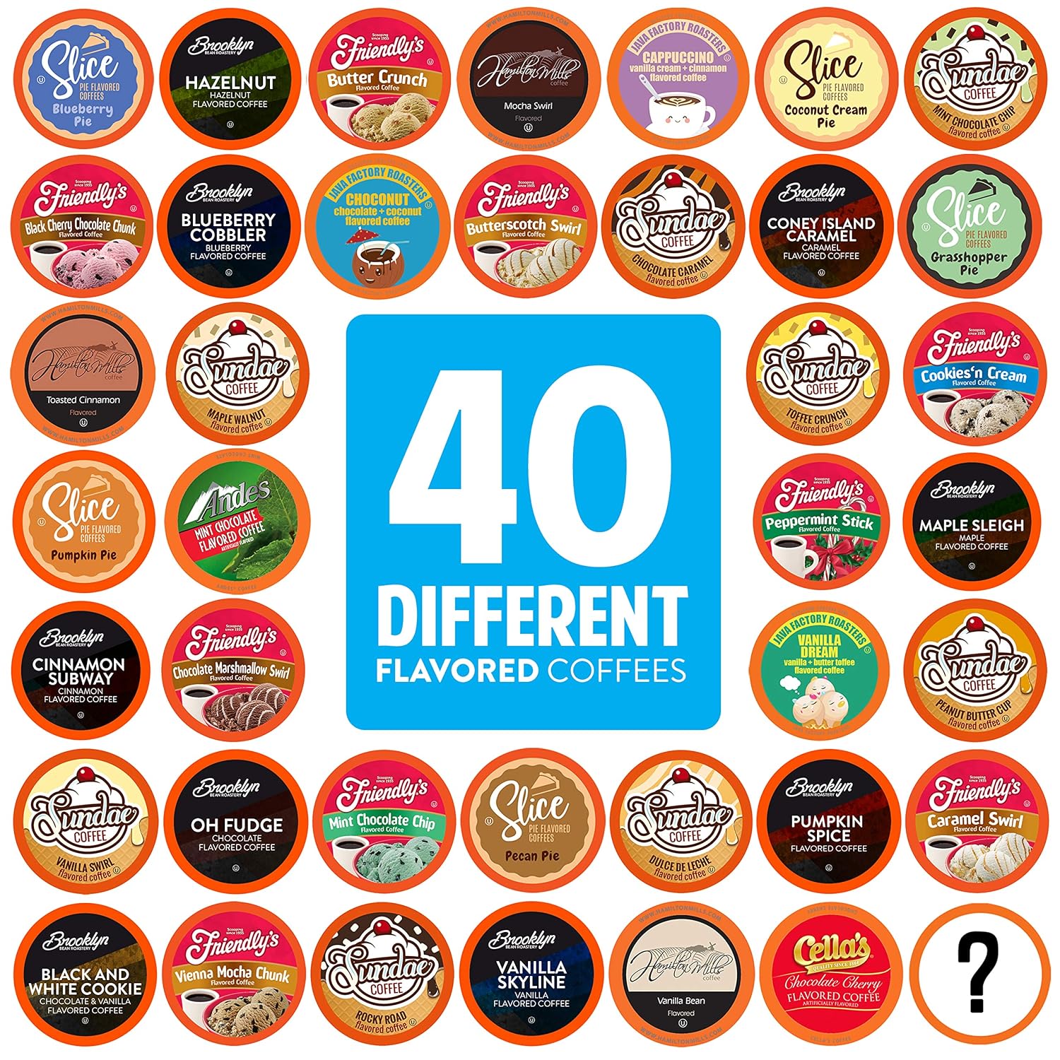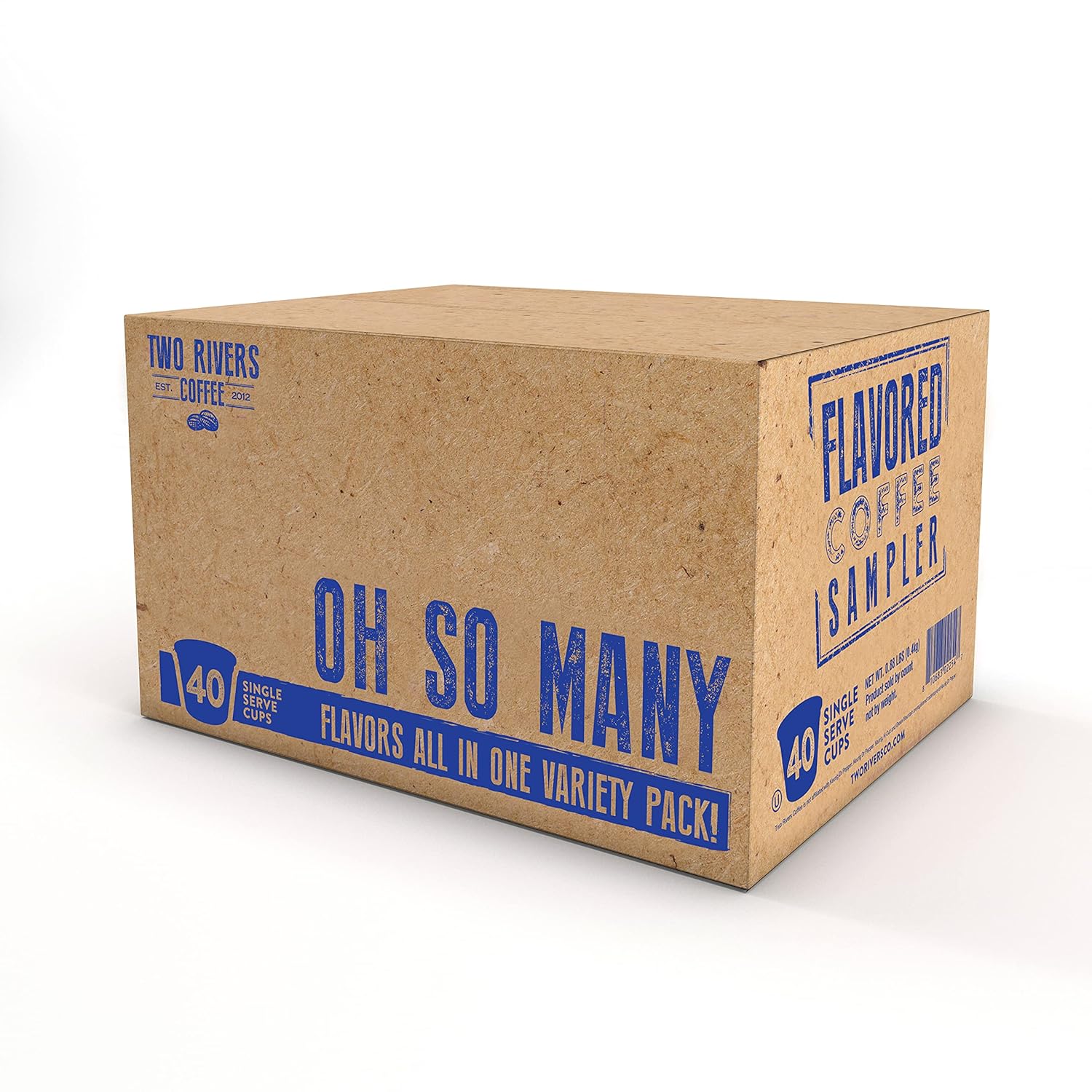 - This Two Rivers Coffee box is the #1 Selling Flavored Coffee sampler pack! No need for 40 different boxes just to have variety in your flavored coffees. Just one box, 40 delicious flavored coffees. Choice tastes better.