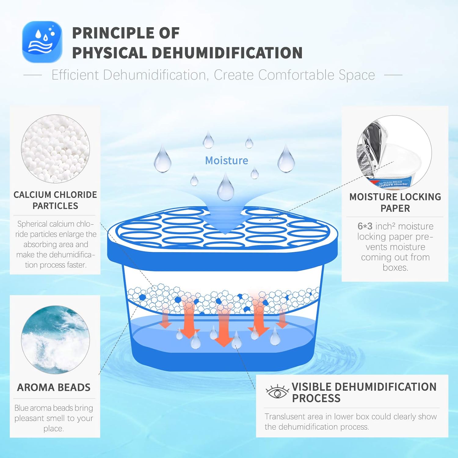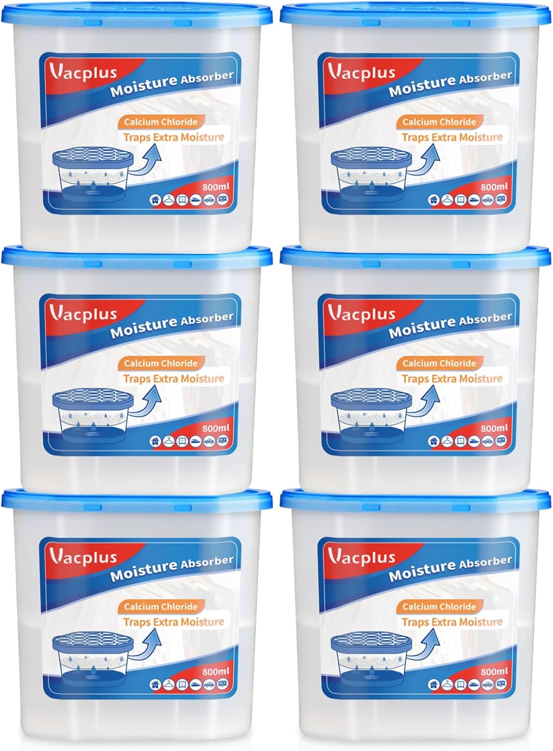 - Efficient Dehumidification: Traps excess moisture quickly. Vacplus moisture absorbers use spherical calcium chloride to enlarge the absorbing area. The large collecting capacity of this moisture remover keeps a long time dry.