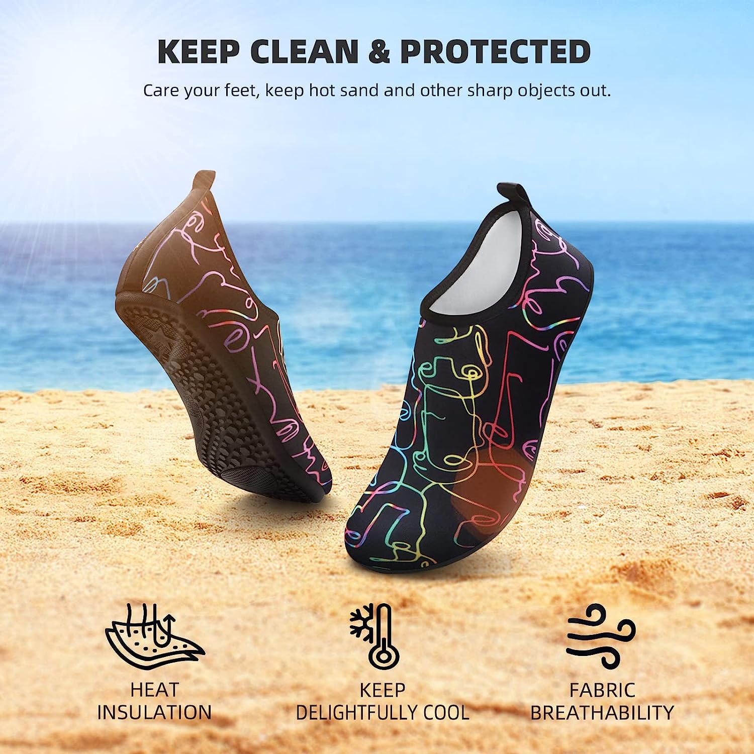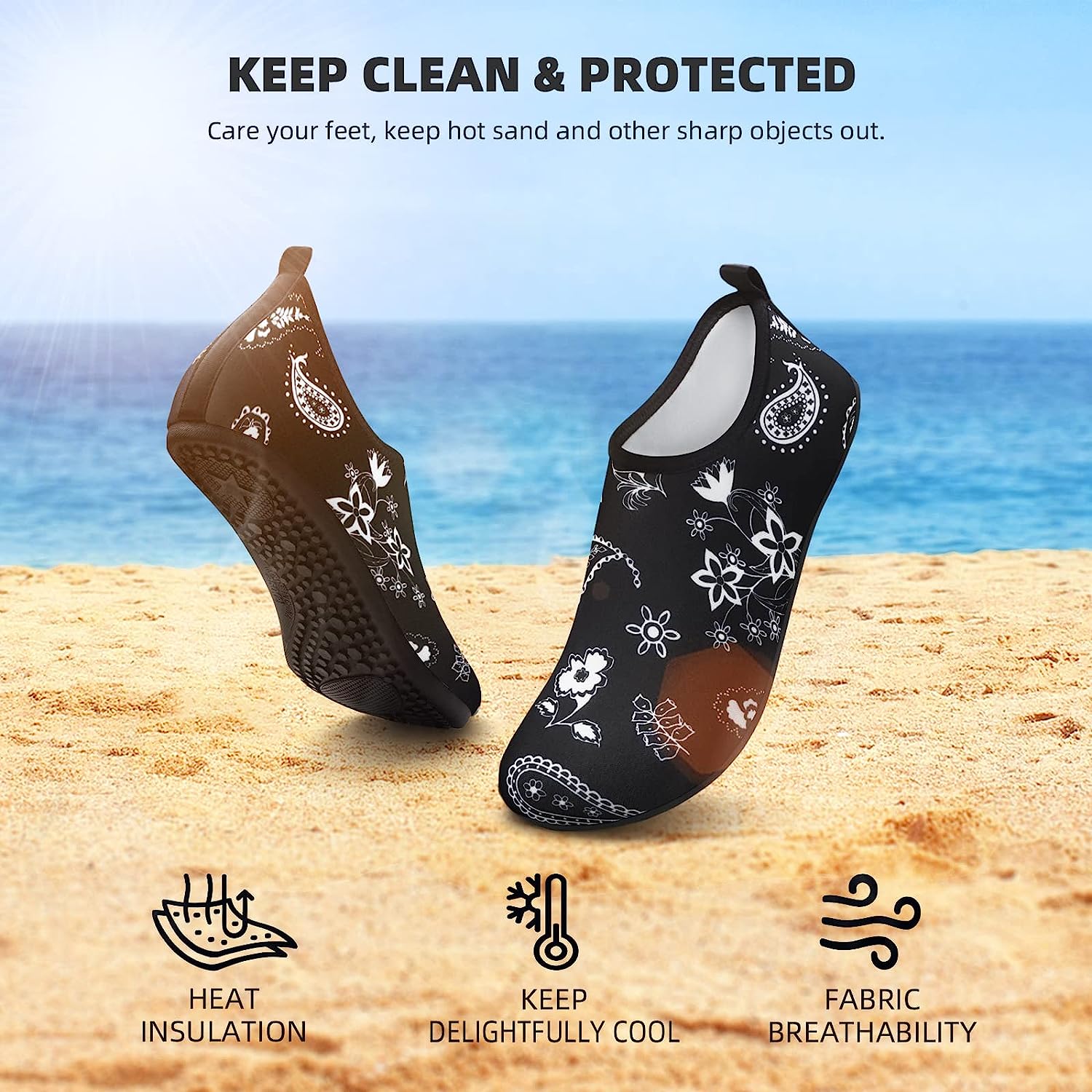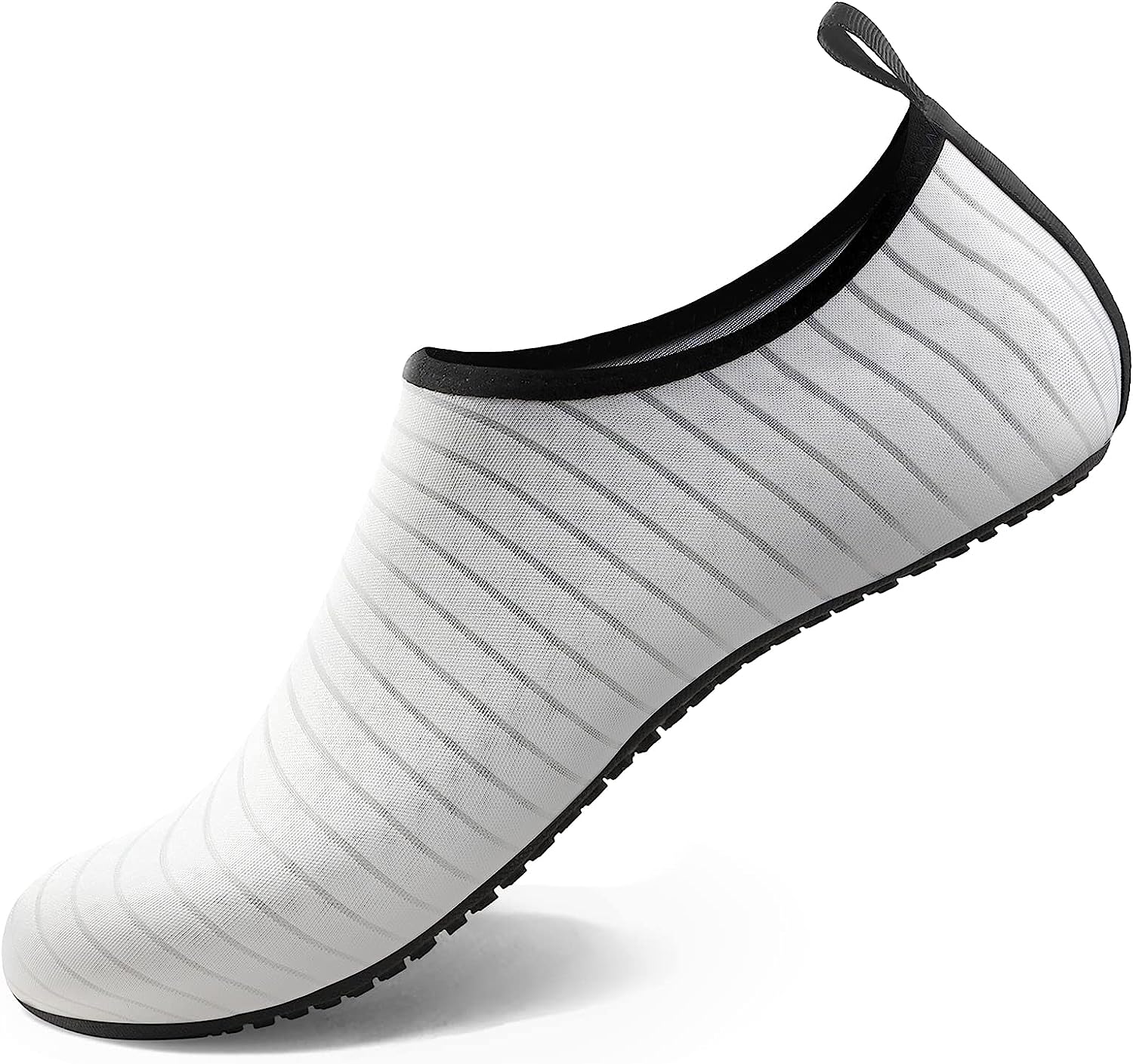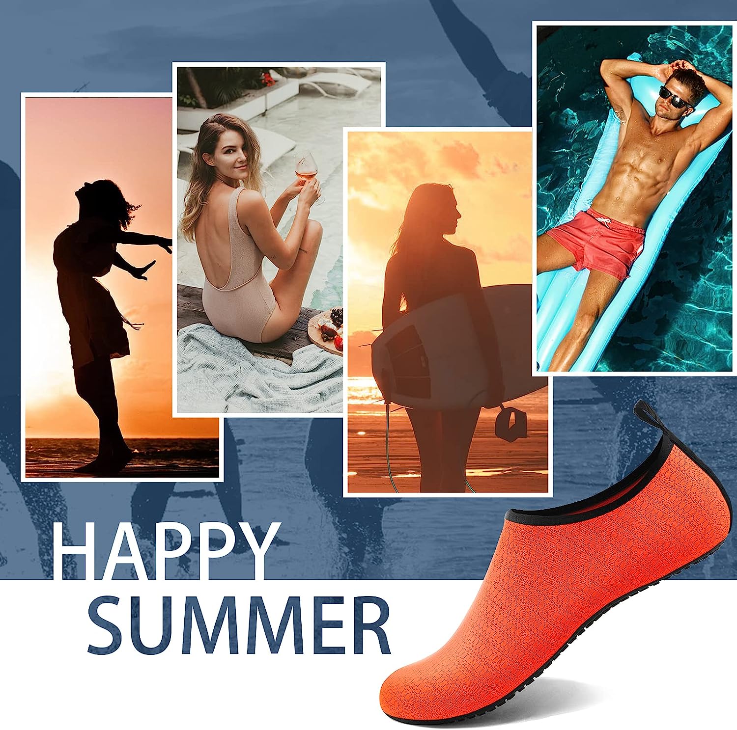 - 𝗣𝗥𝗢𝗧𝗘𝗖𝗧𝗜𝗩𝗘 - Water shoes for men women are made available for both water use and dry land.The special anti-slip sole can not only protect your feet from sharp things like rocks,shells and gravel,but also prevent burns from hot sand in beach or water park.And beach shoes' smooth neck design would take care of your ankles.