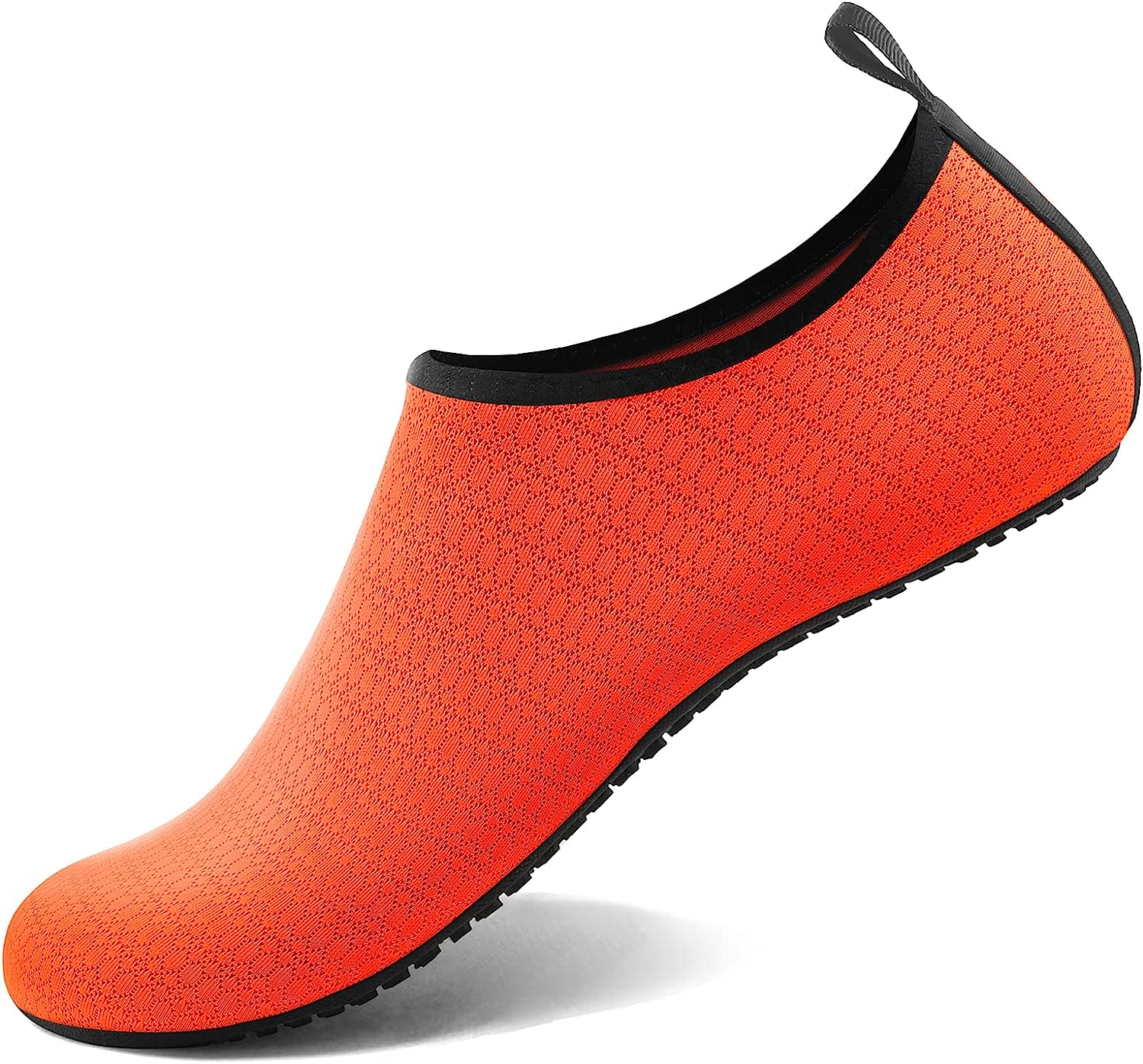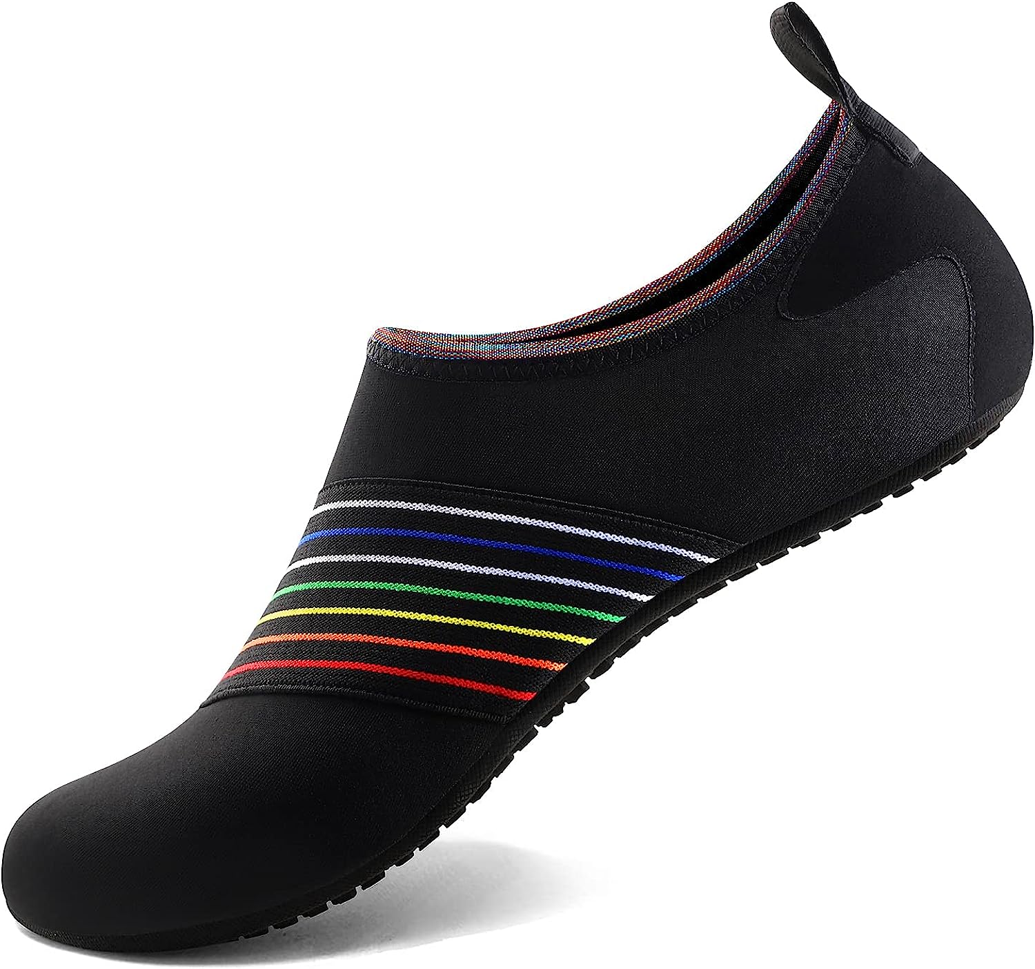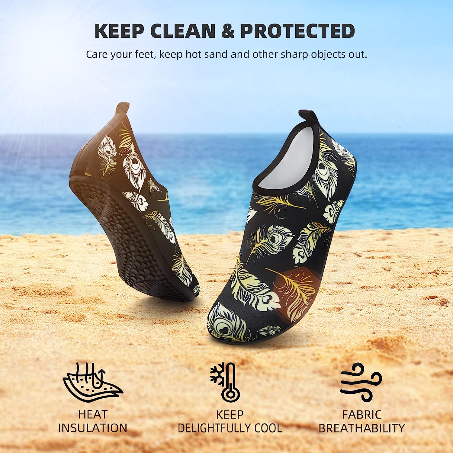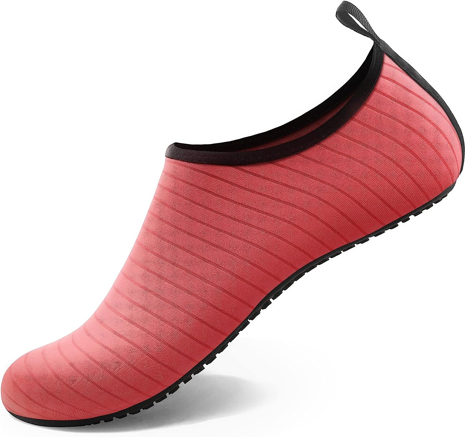 - 𝗣𝗥𝗢𝗧𝗘𝗖𝗧𝗜𝗩𝗘 - Water shoes for men women are made available for both water use and dry land.The special anti-slip sole can not only protect your feet from sharp things like rocks,shells and gravel,but also prevent burns from hot sand in beach or water park.And beach shoes' smooth neck design would take care of your ankles.
