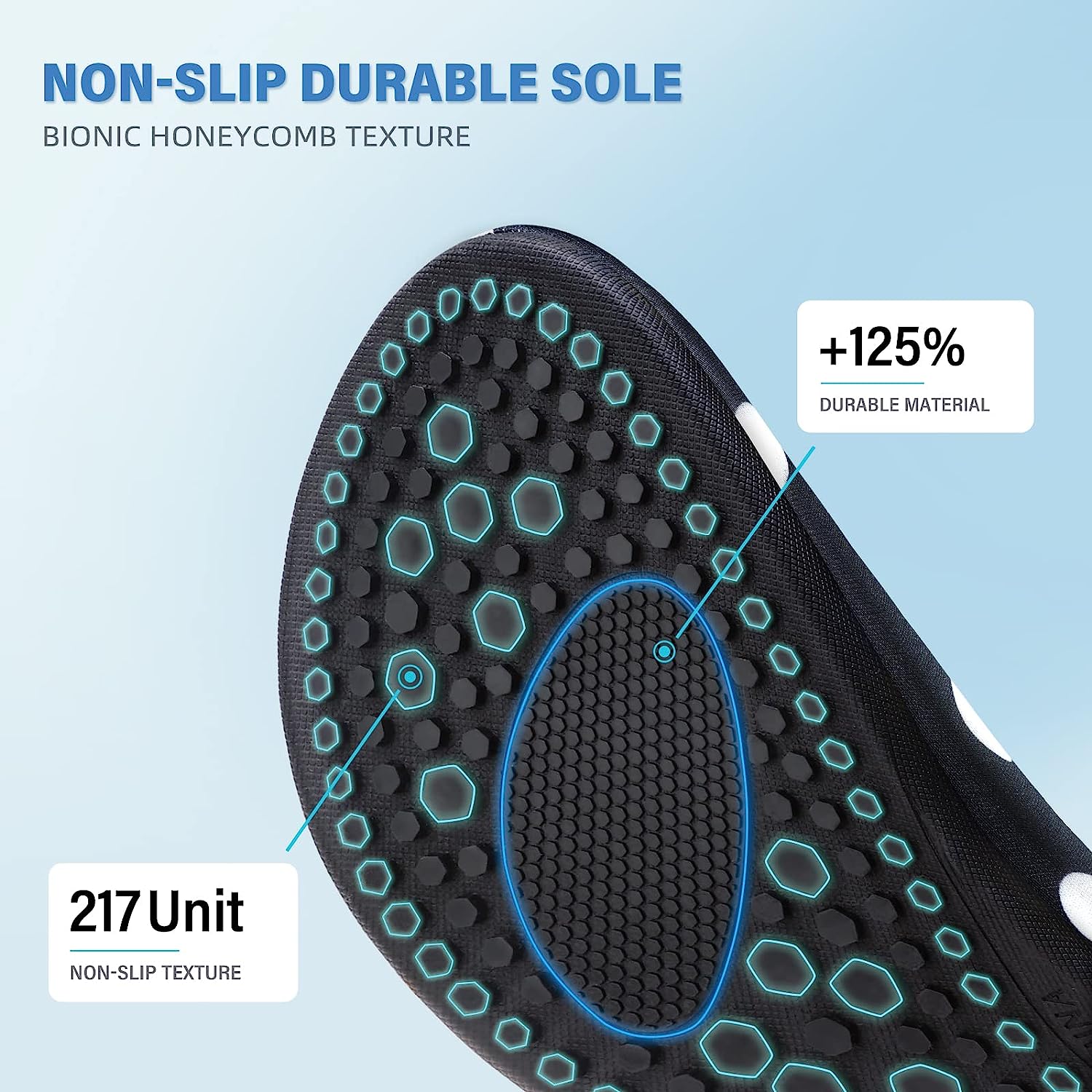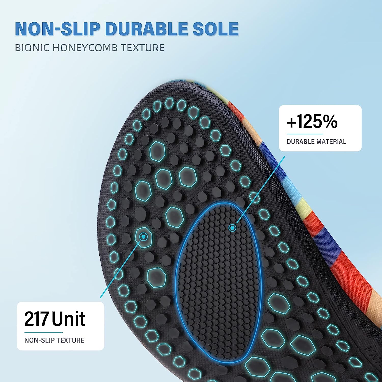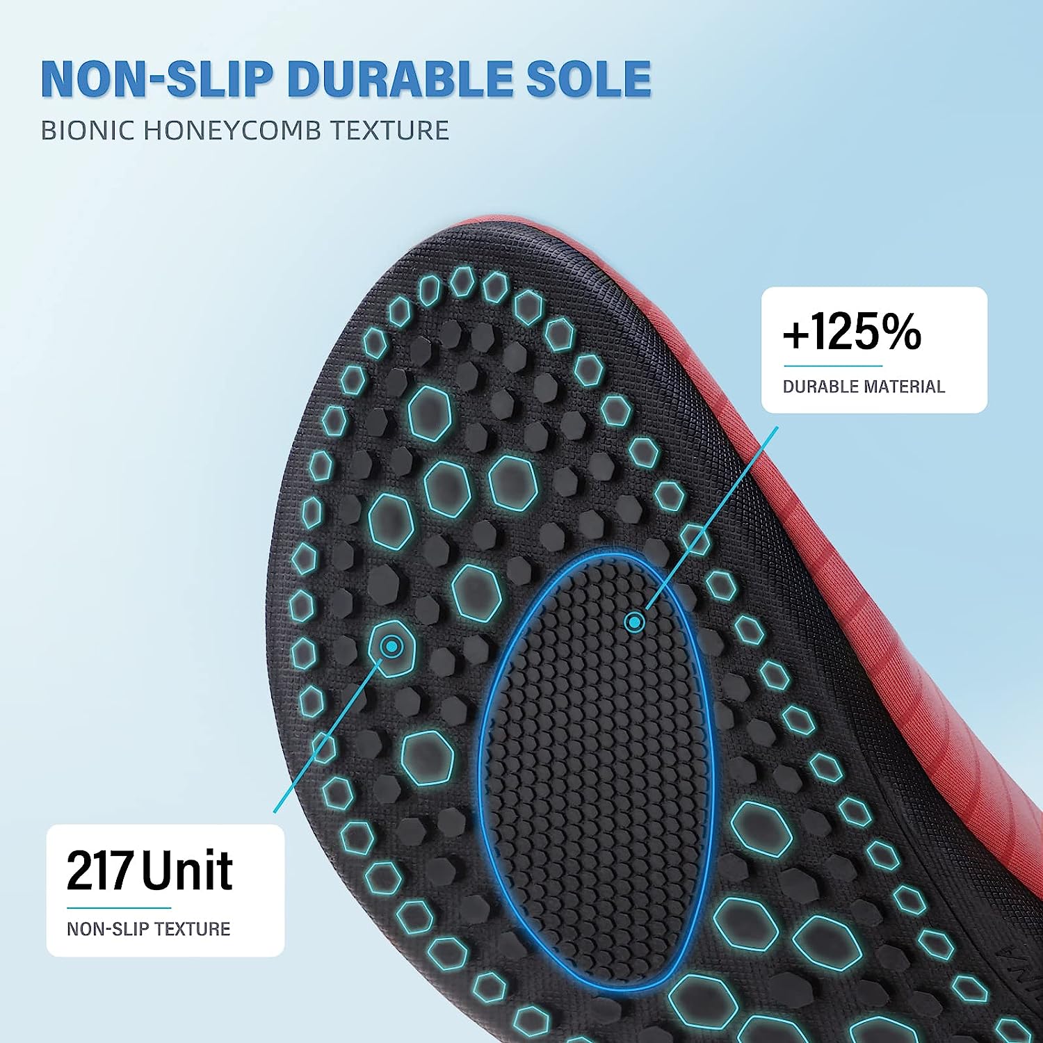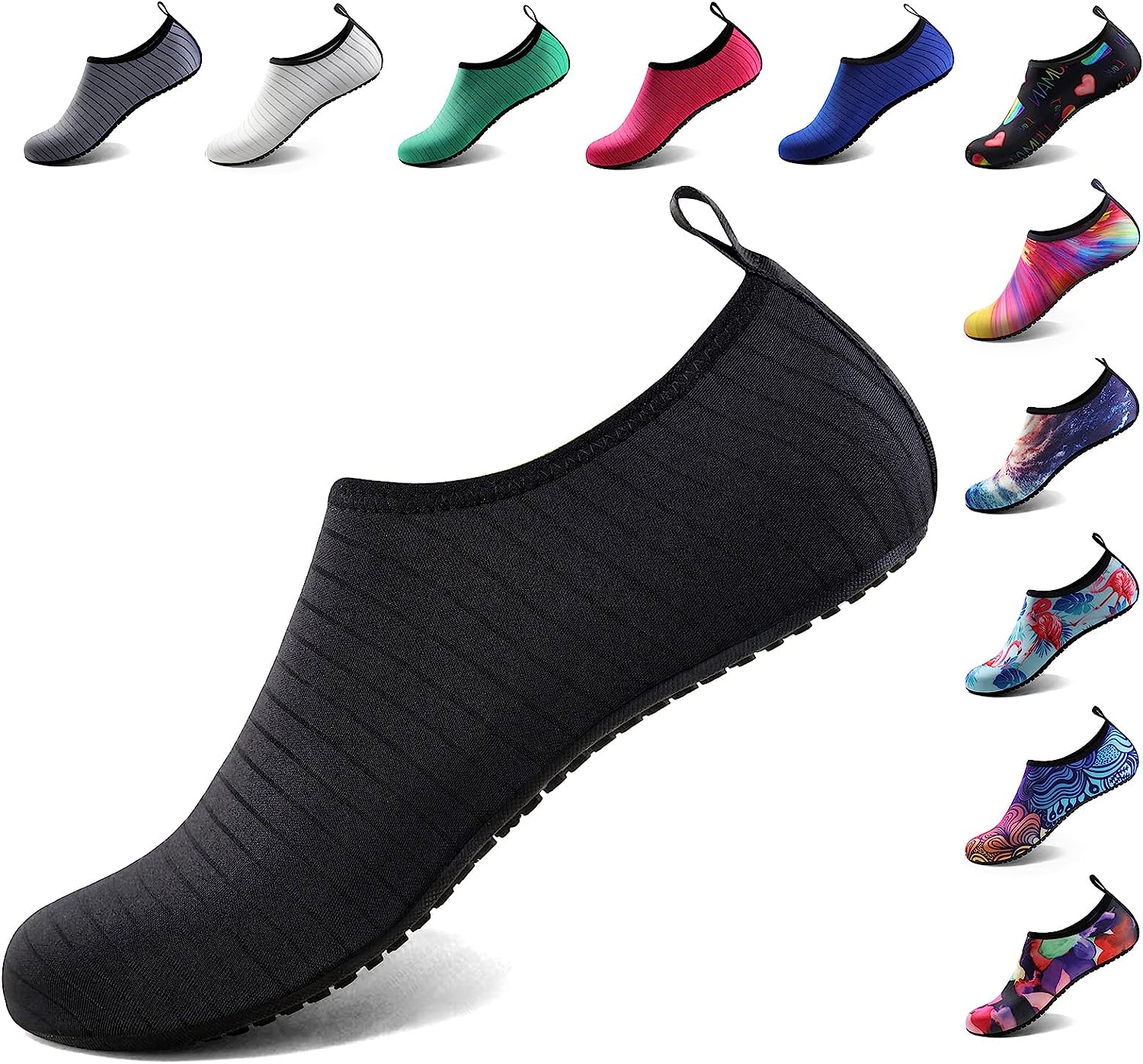 - 𝗣𝗥𝗢𝗧𝗘𝗖𝗧𝗜𝗩𝗘 - Water shoes for men women are made available for both water use and dry land.The special anti-slip sole can not only protect your feet from sharp things like rocks,shells and gravel,but also prevent burns from hot sand in beach or water park.And beach shoes' smooth neck design would take care of your ankles.