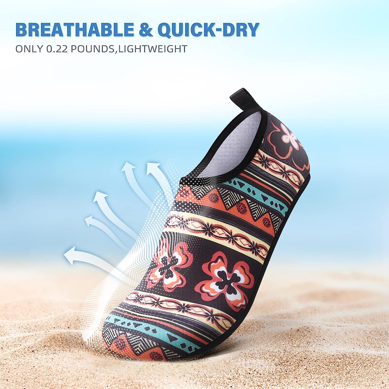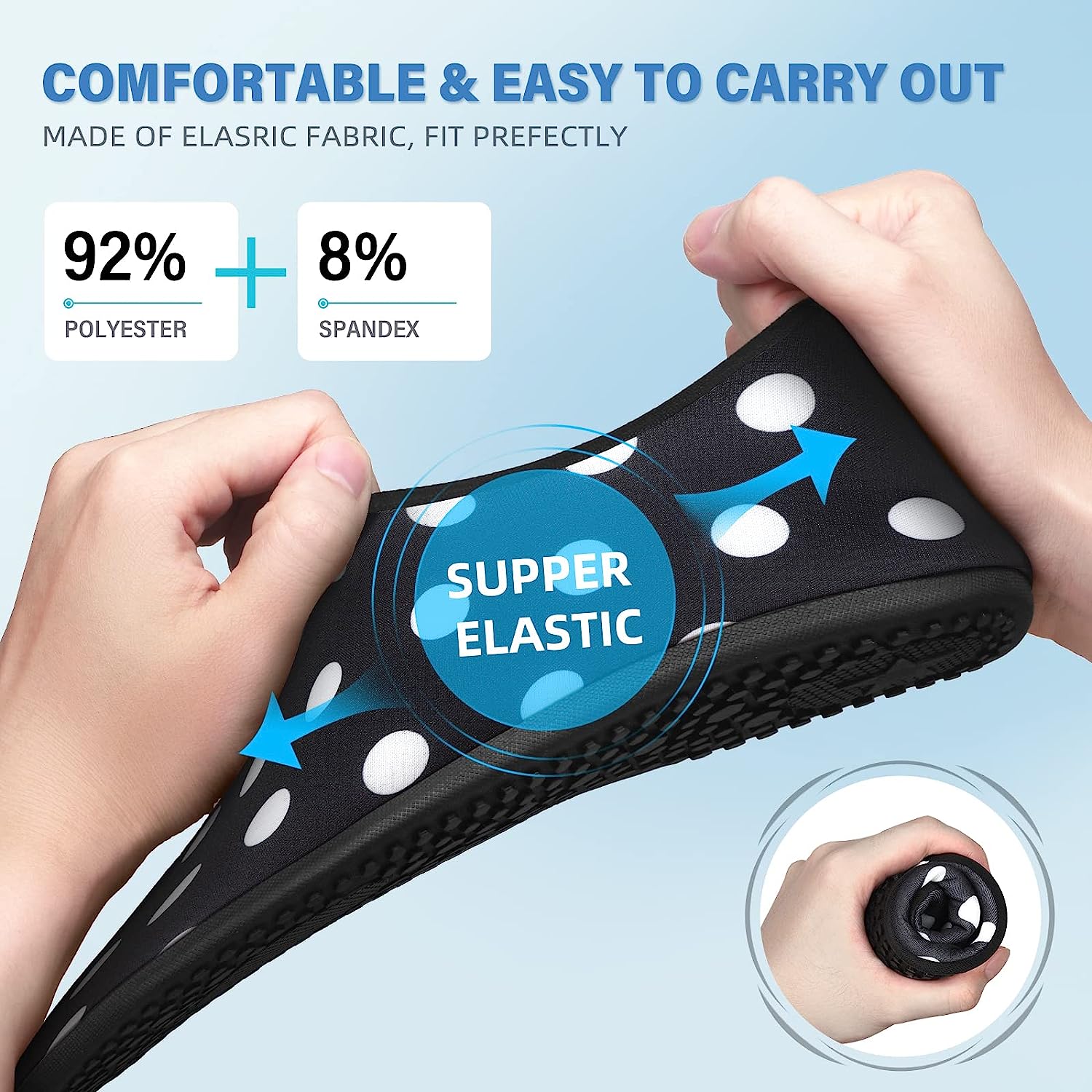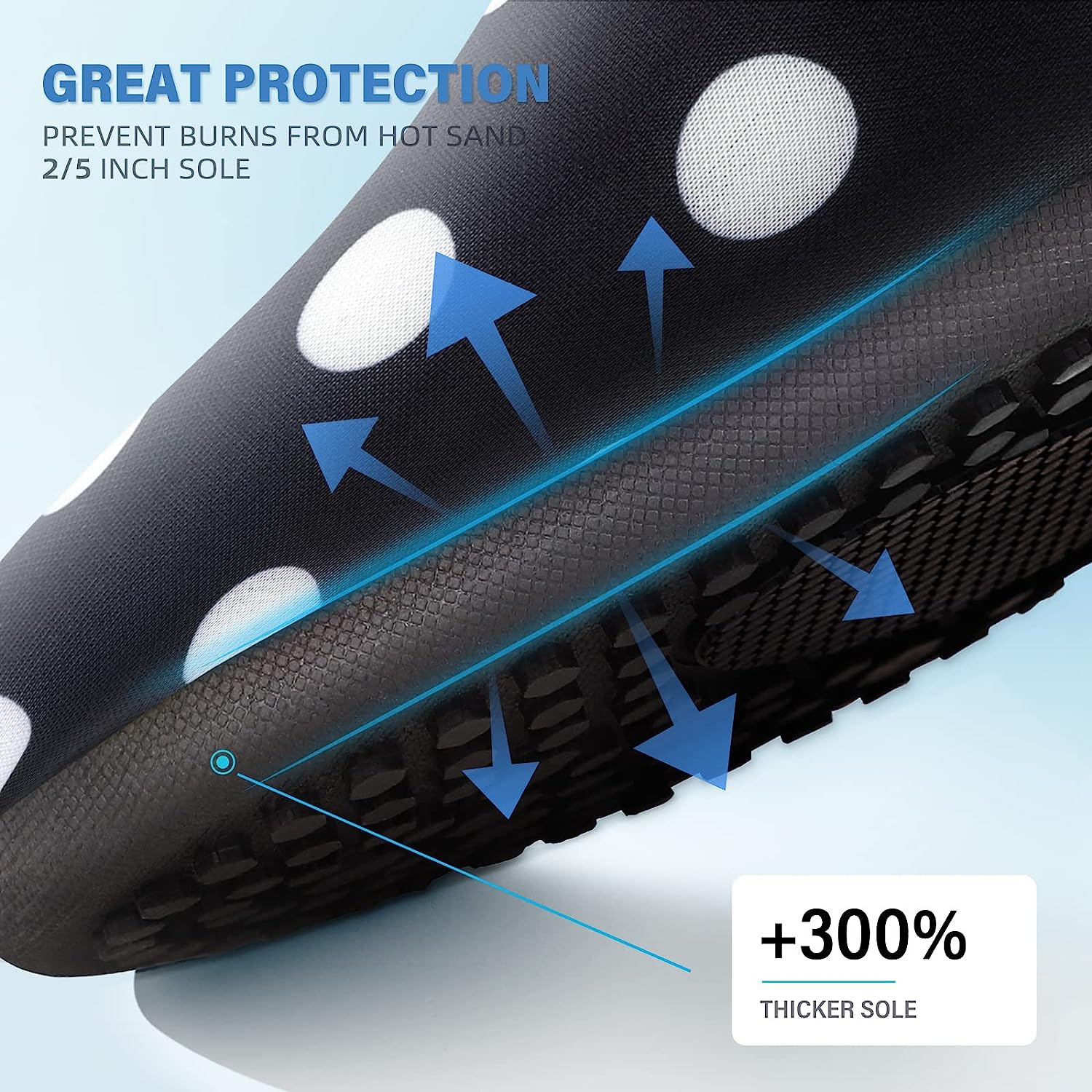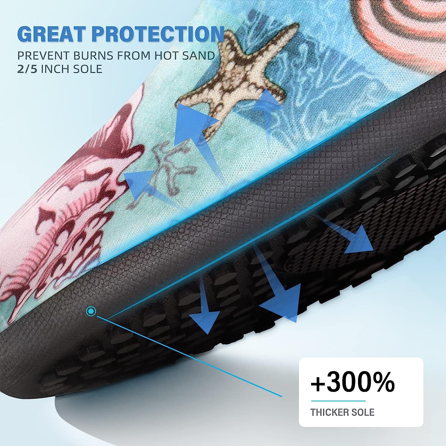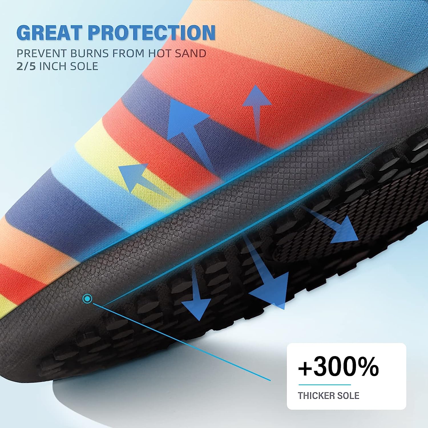 - 𝗖𝗢𝗡𝗩𝗘𝗡𝗜𝗘𝗡𝗖𝗘 & 𝗗𝗨𝗥𝗔𝗕𝗜𝗟𝗜𝗧𝗬 - Our swim shoes are lightweight, flexible and foldable,really easy to put on and carry out.Compared with ordinary beach aqua socks,the special thick sole design can effectively help the upper not easy to be damaged and more durable.
