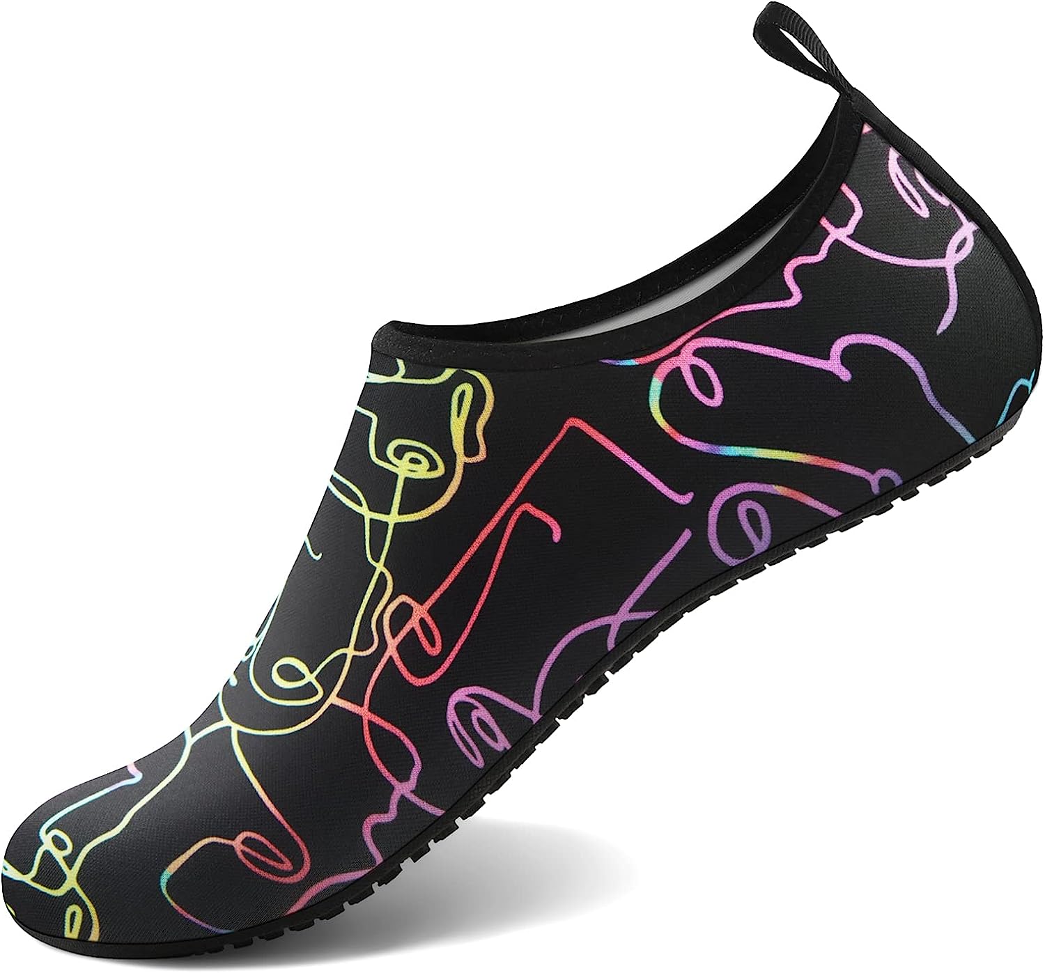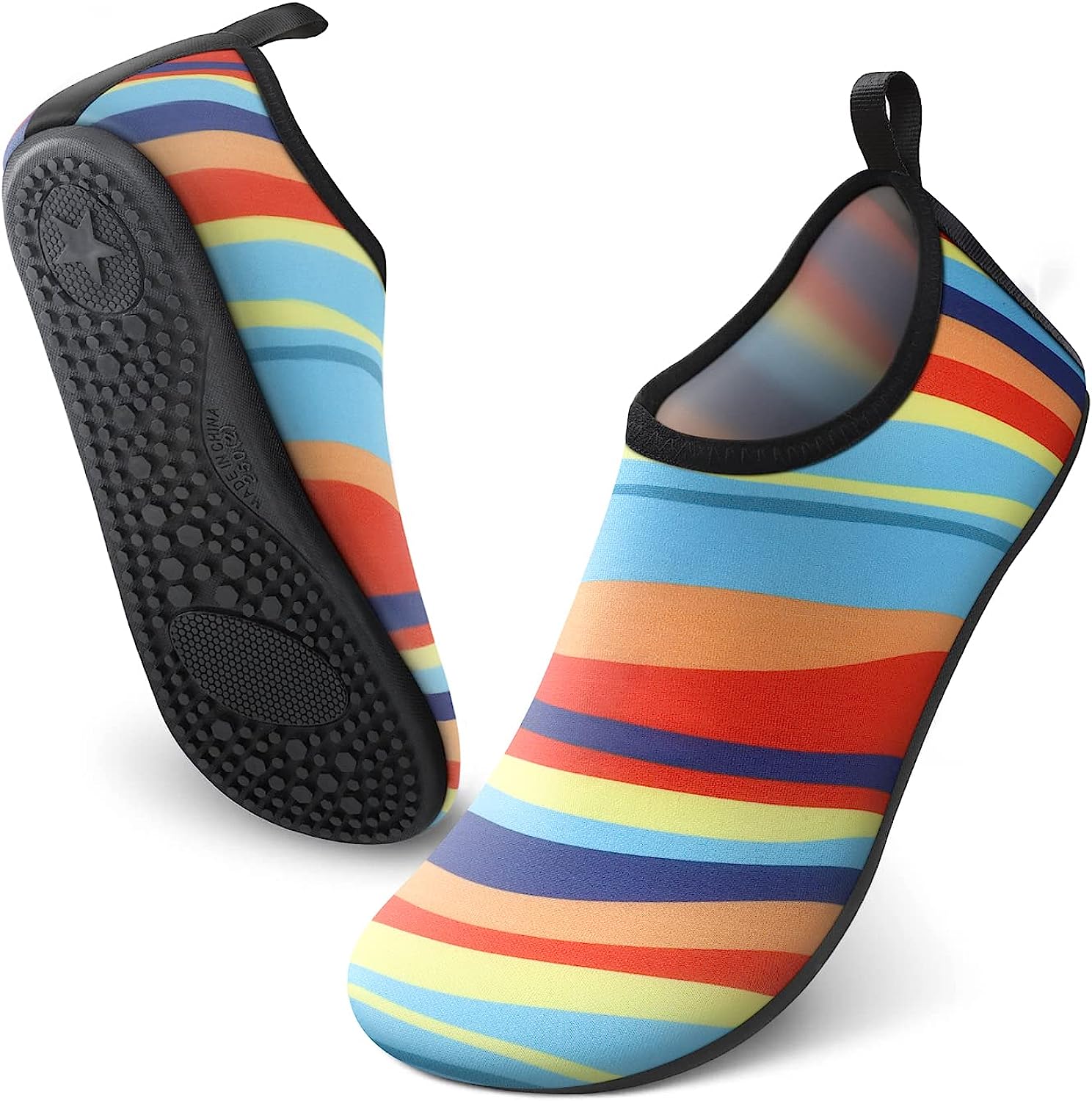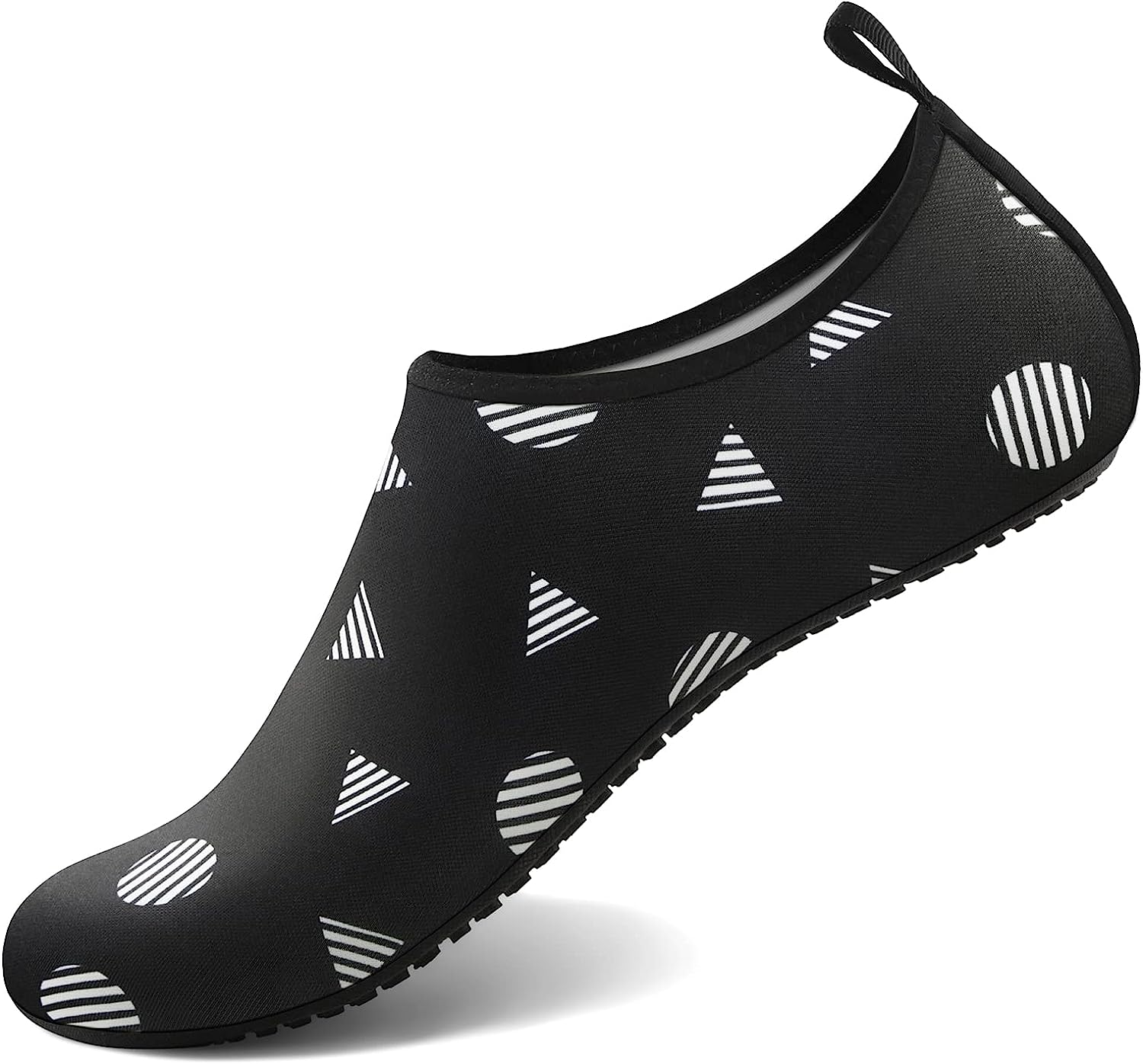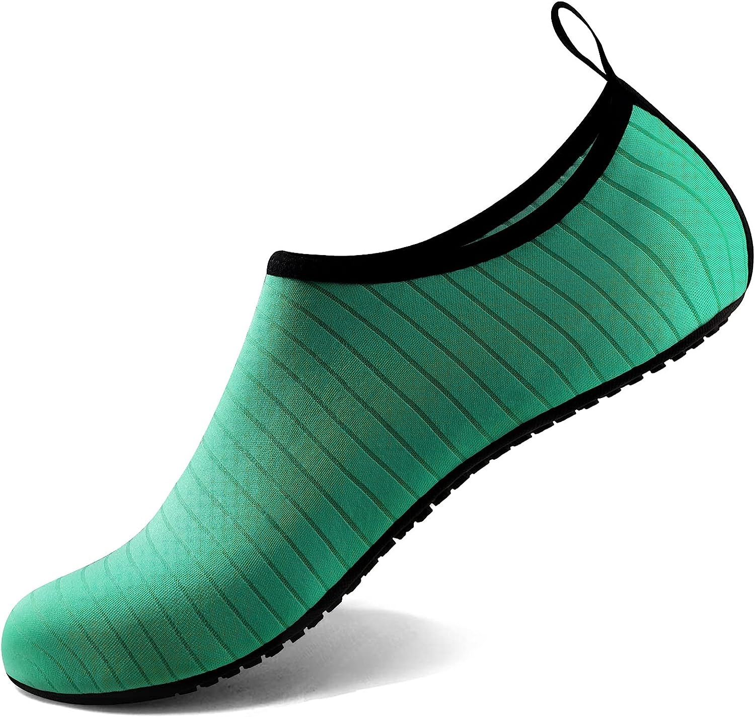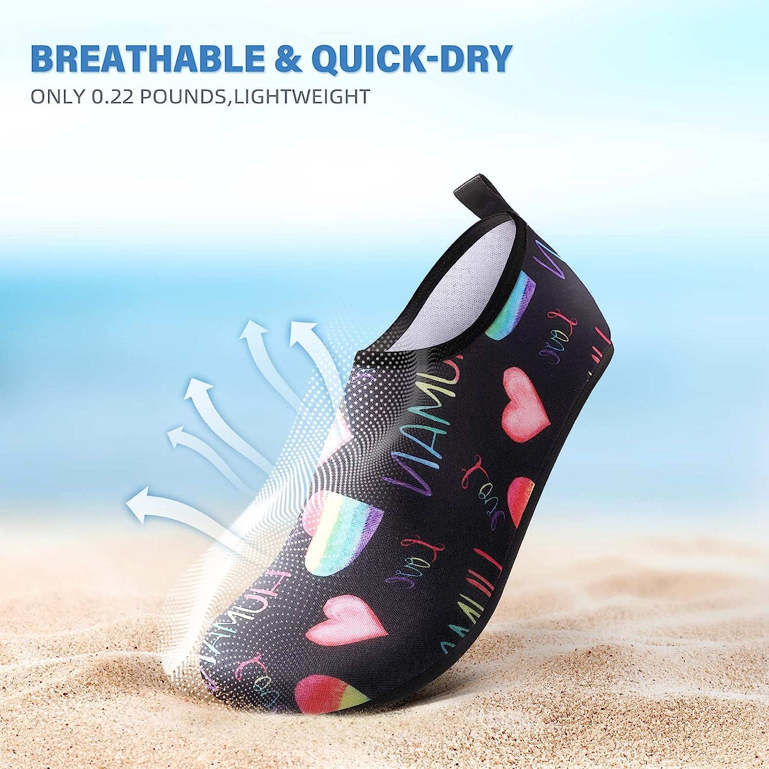 - 𝗖𝗢𝗡𝗩𝗘𝗡𝗜𝗘𝗡𝗖𝗘 & 𝗗𝗨𝗥𝗔𝗕𝗜𝗟𝗜𝗧𝗬 - Our swim shoes are lightweight, flexible and foldable,really easy to put on and carry out.Compared with ordinary beach aqua socks,the special thick sole design can effectively help the upper not easy to be damaged and more durable.
