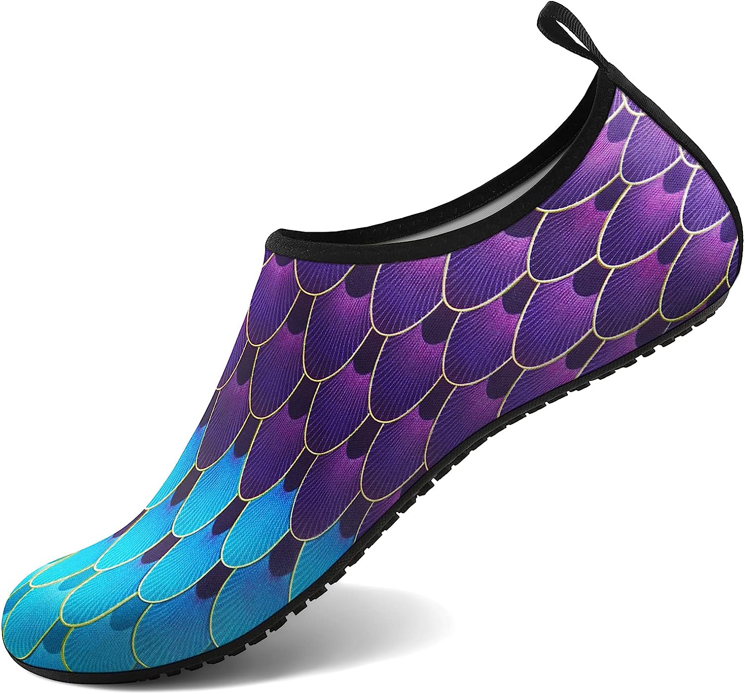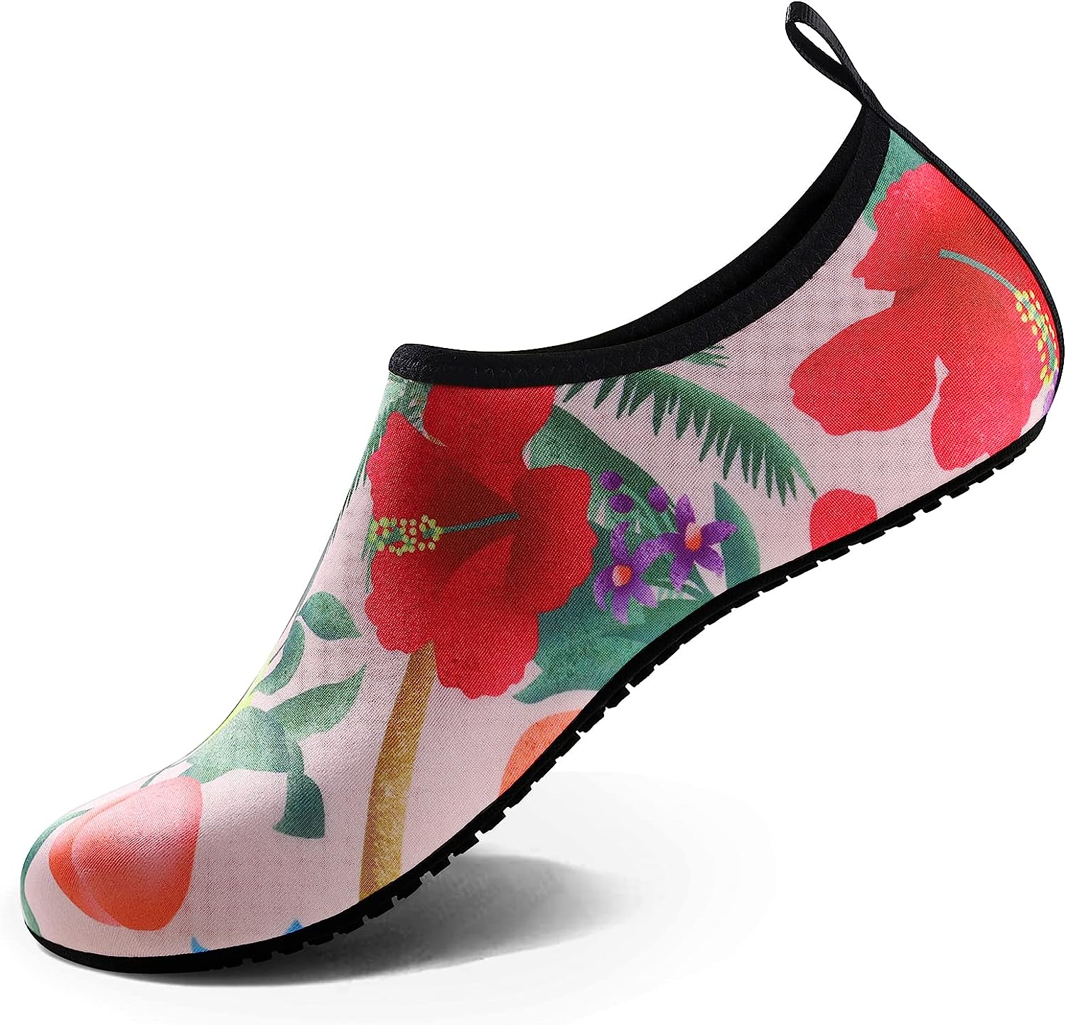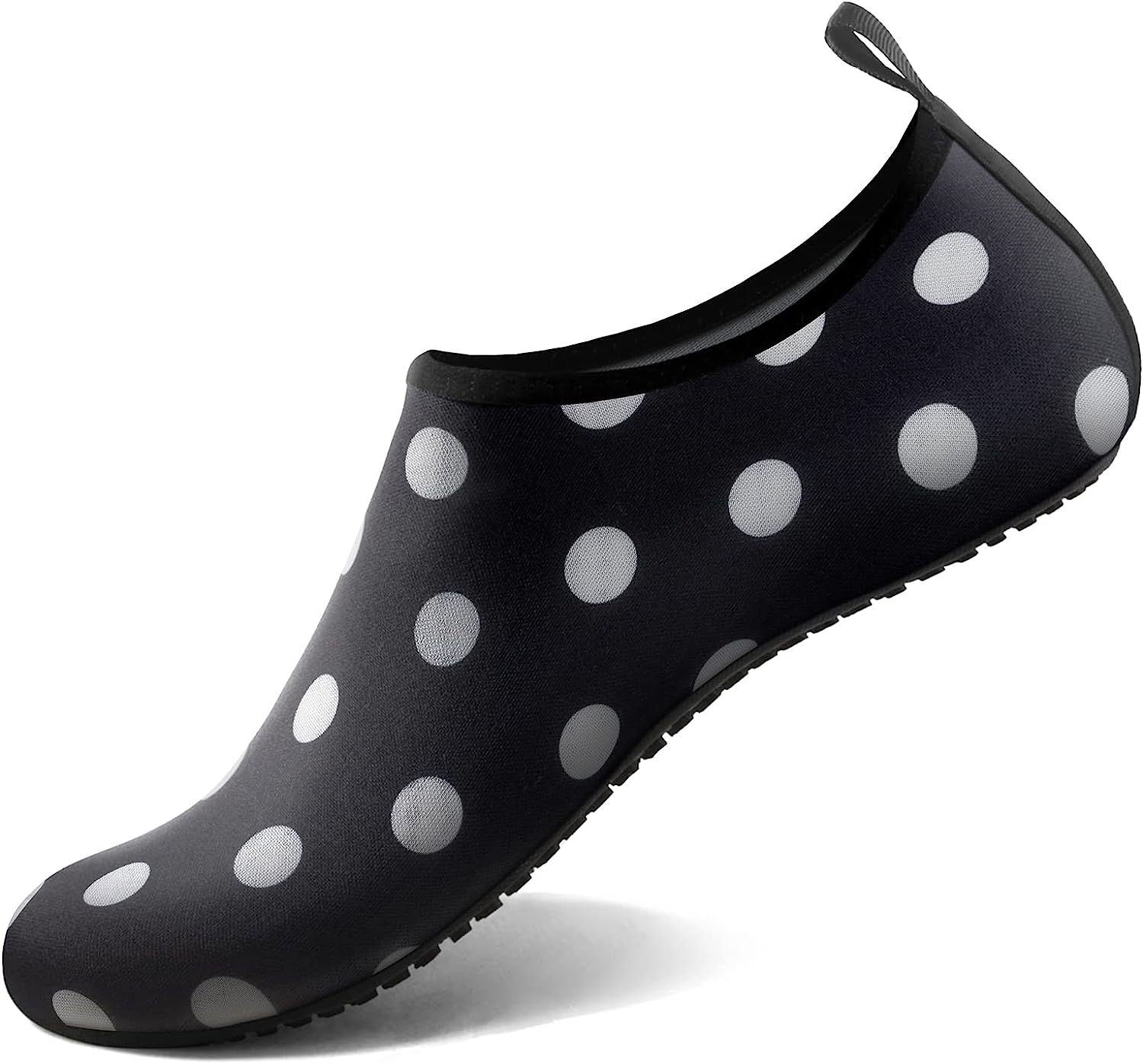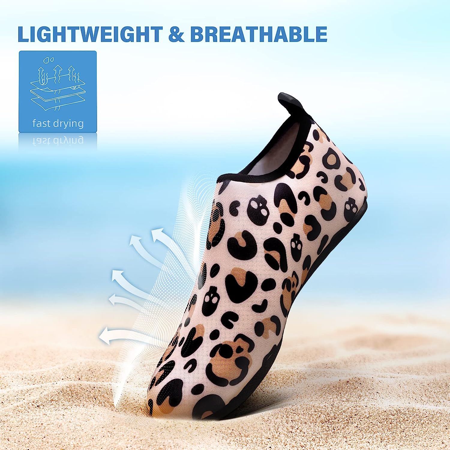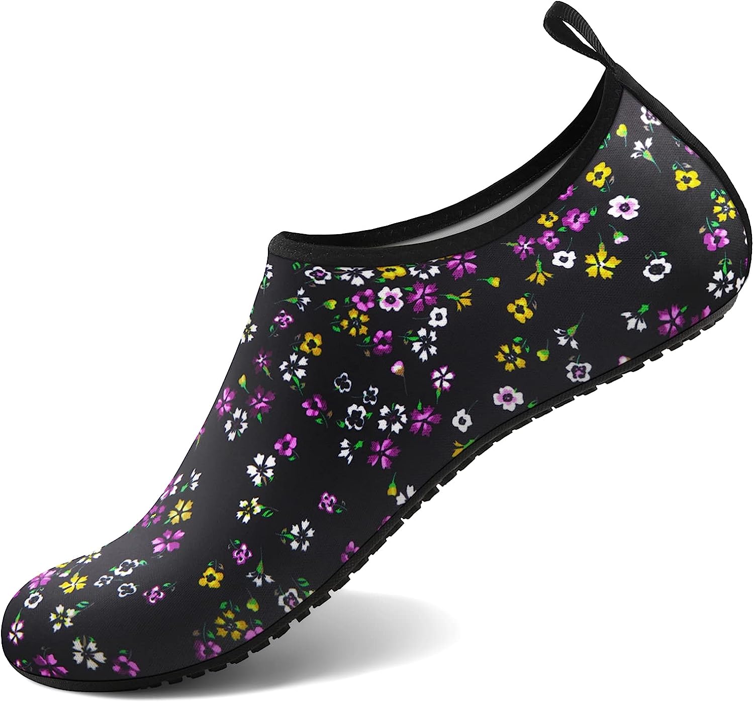 - 𝗖𝗢𝗡𝗩𝗘𝗡𝗜𝗘𝗡𝗖𝗘 & 𝗗𝗨𝗥𝗔𝗕𝗜𝗟𝗜𝗧𝗬 - Our swim shoes are lightweight, flexible and foldable,really easy to put on and carry out.Compared with ordinary beach aqua socks,the special thick sole design can effectively help the upper not easy to be damaged and more durable.