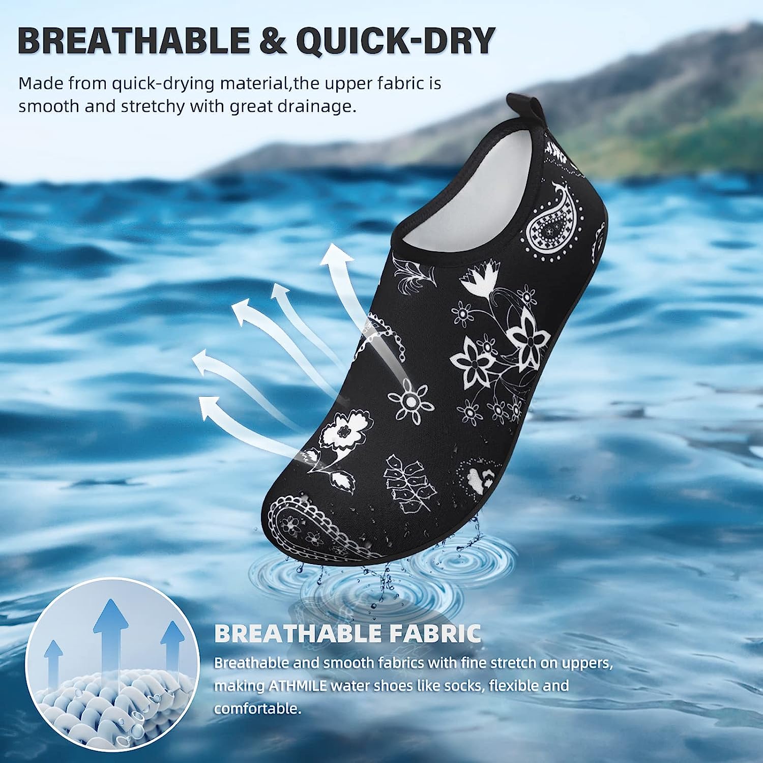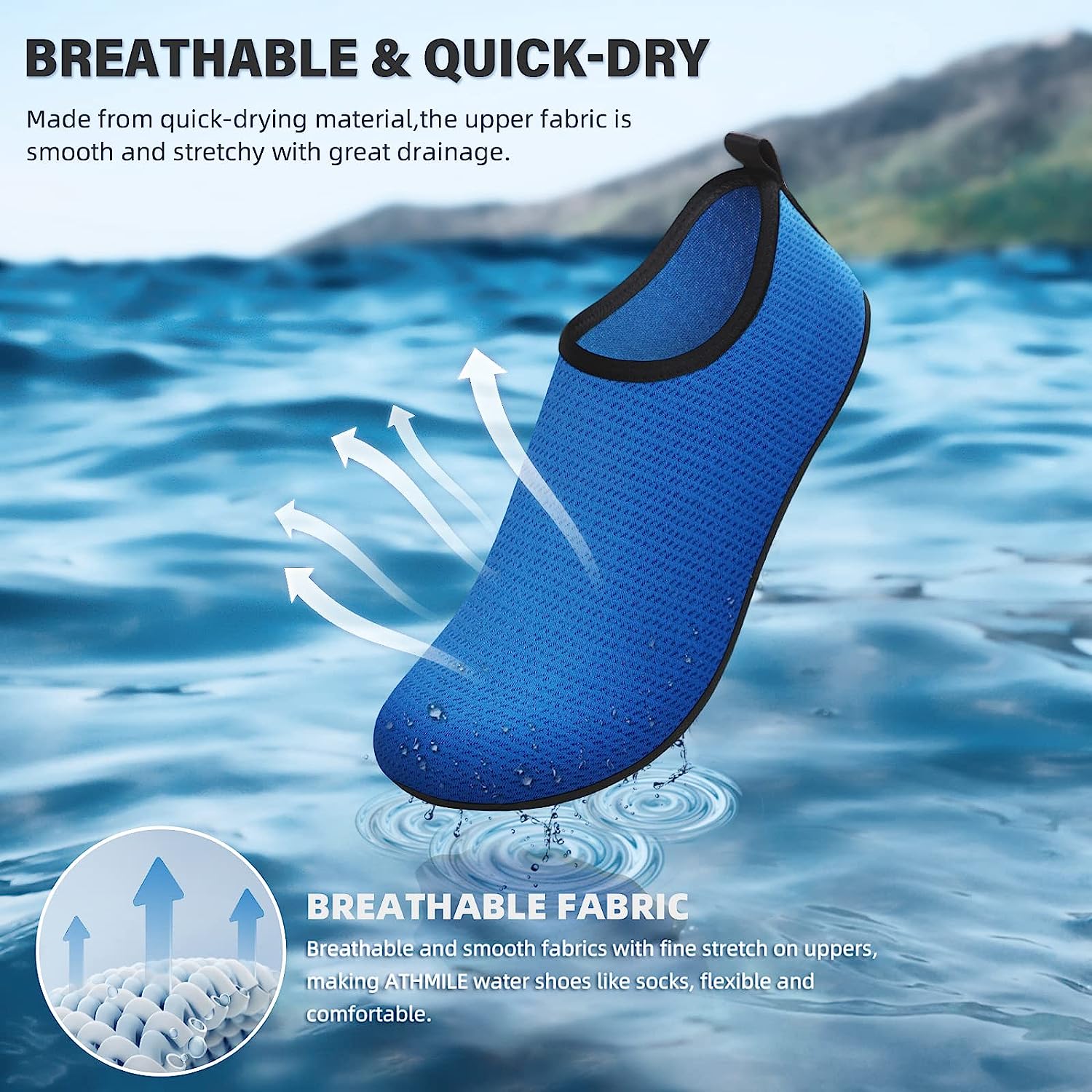 - 𝗖𝗢𝗠𝗙𝗢𝗥𝗧𝗔𝗕𝗟𝗘- Athmile water socks are made of breathable,quick-dry and elastic fabric.And its thick insole make you feel great soft when you are in a happy outdoor time.